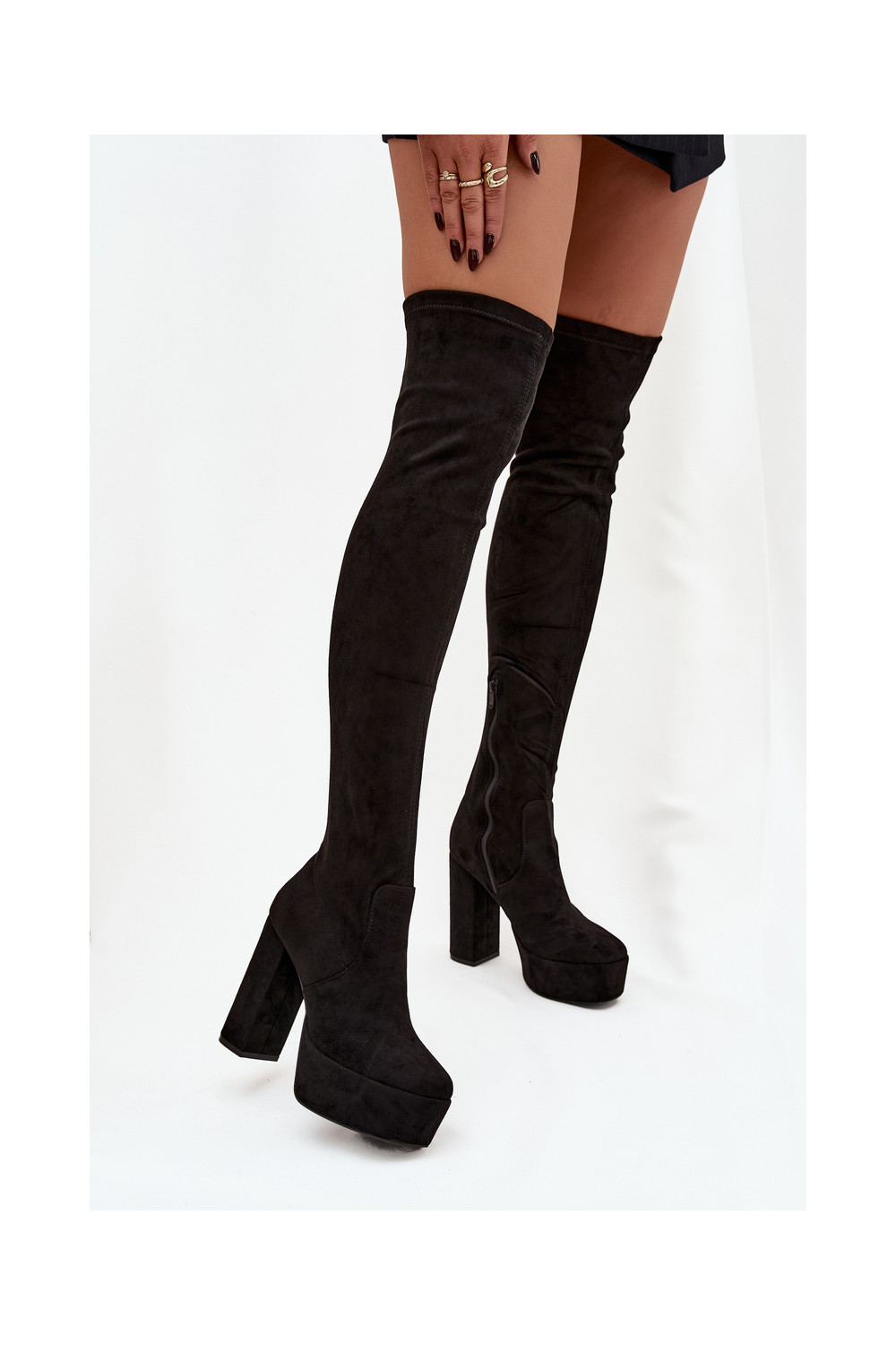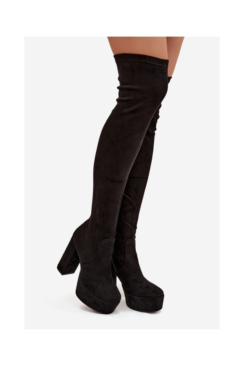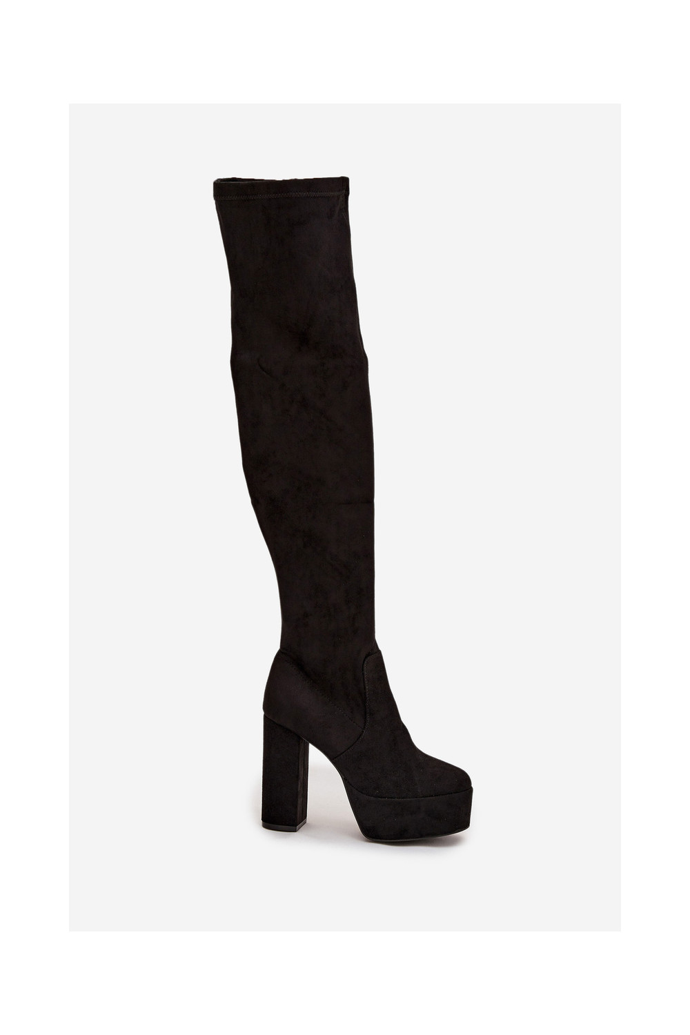 Mustad platvormsaapad üle põlve kunstnahast "Amareen"