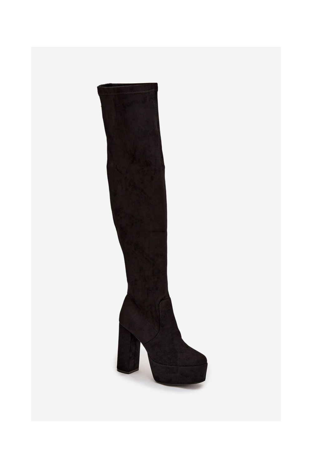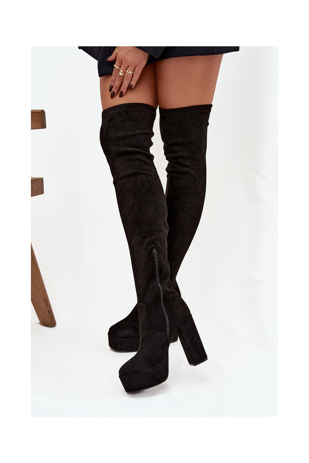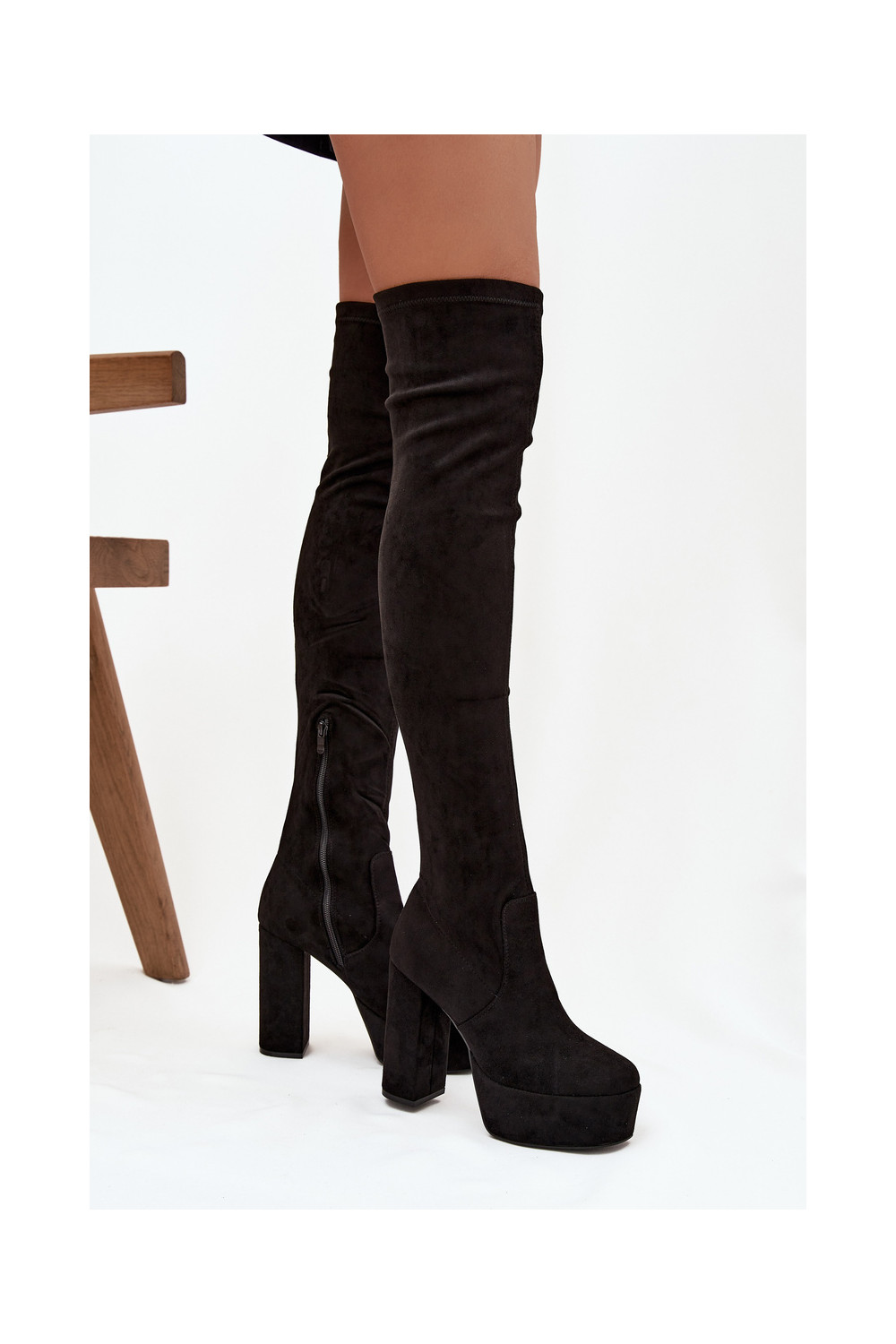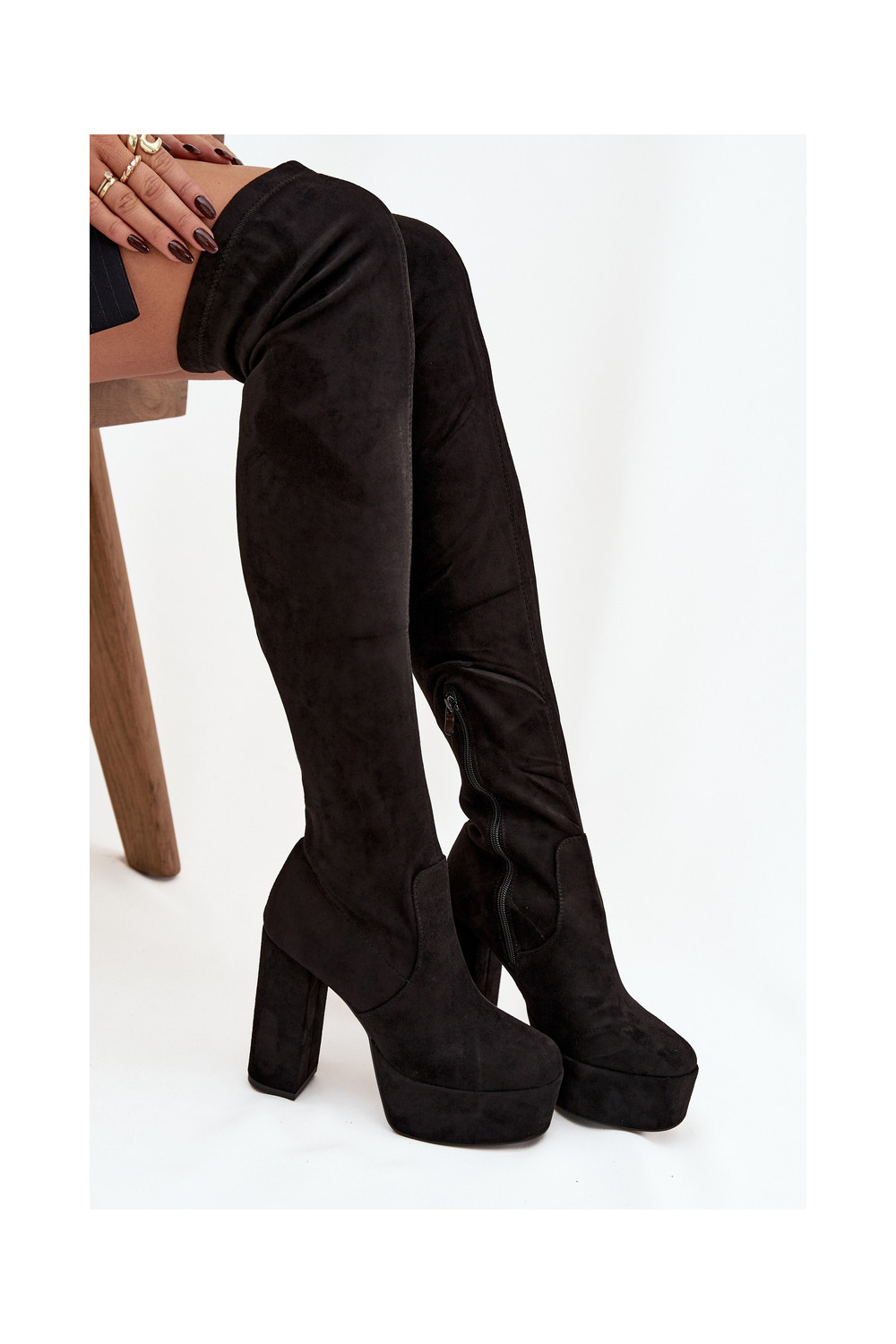 Mustad platvormsaapad üle põlve kunstnahast "Amareen"