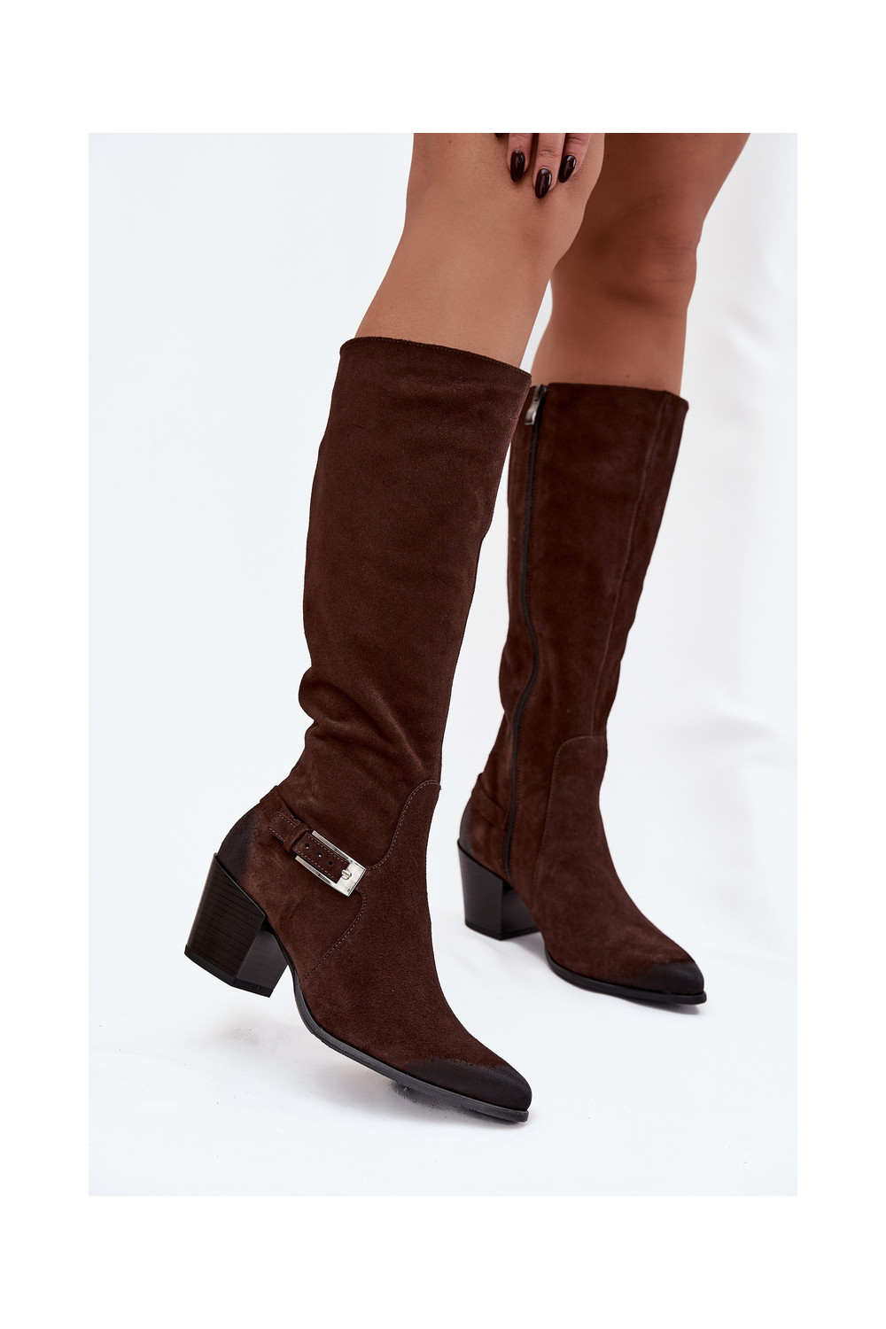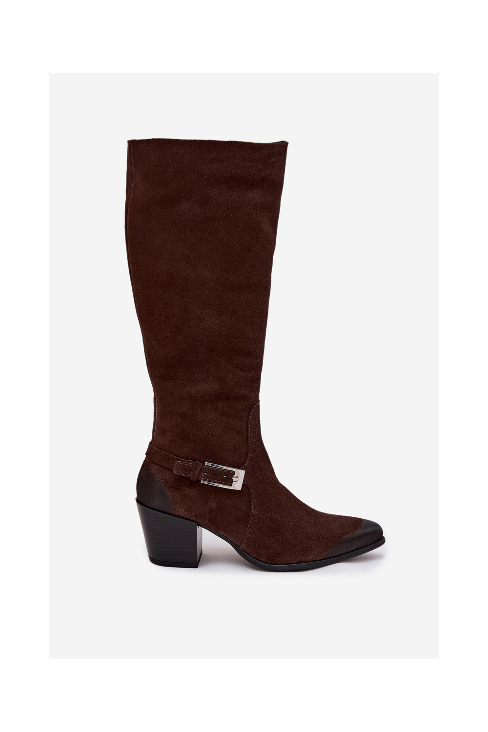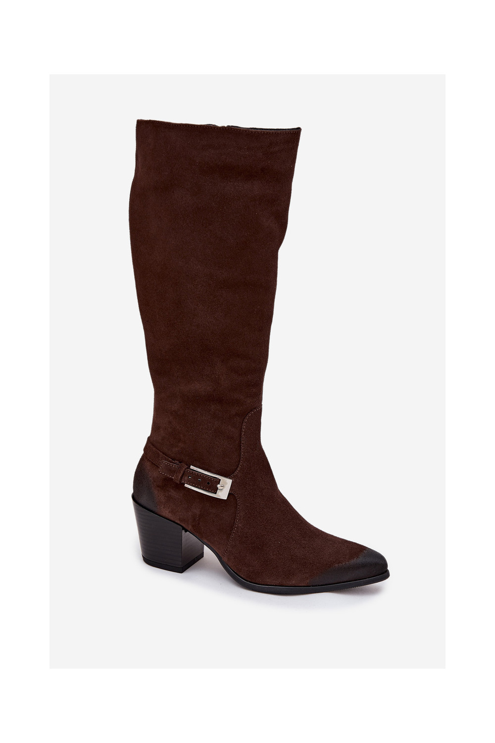 Leather Suede Boots on Heel with Buckle Heated Zazoo 70156 Chocolate