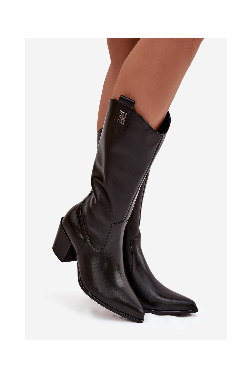 Nahast mustad soojad kauboistiilis üle põlve saapad "Zazoo 70155"