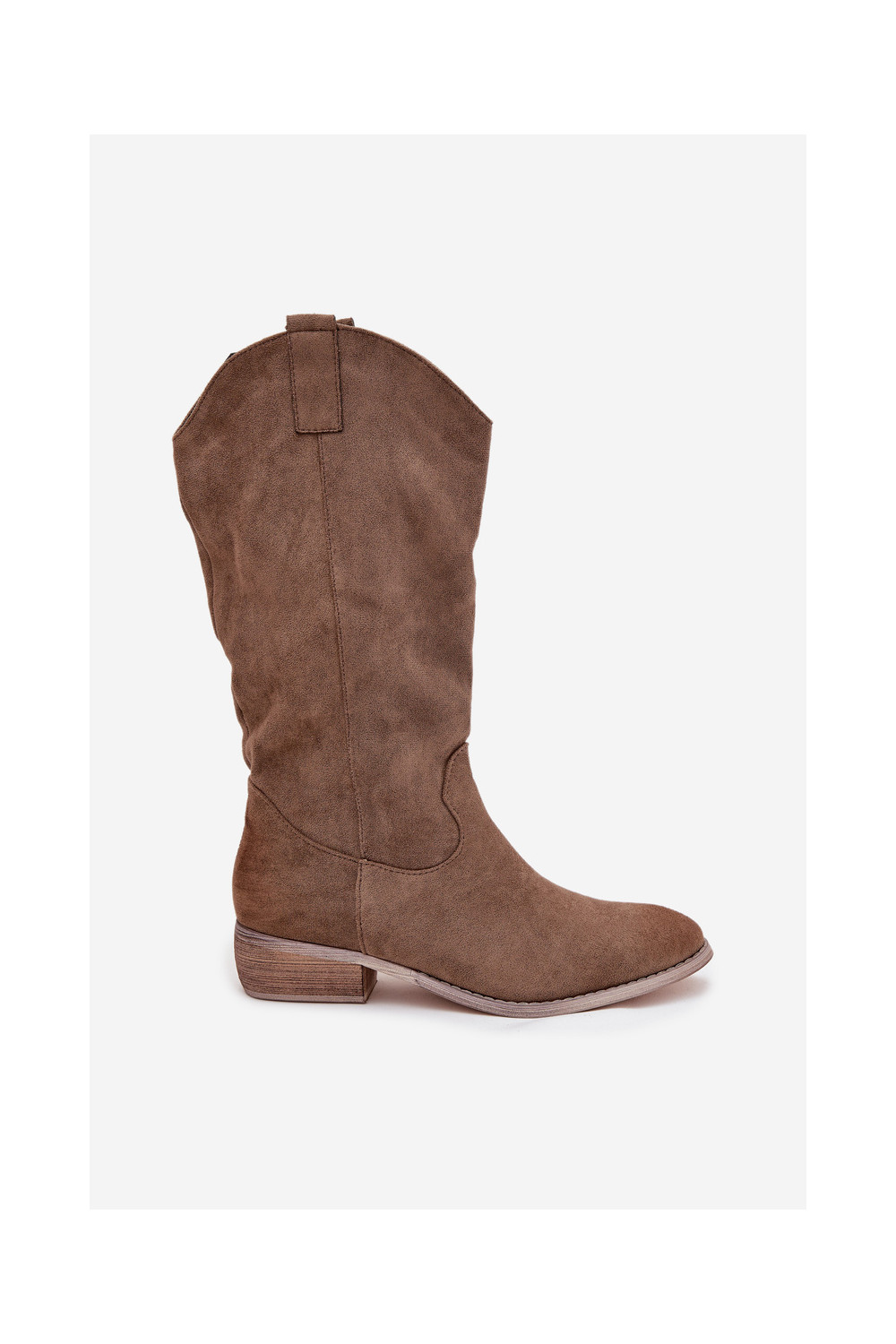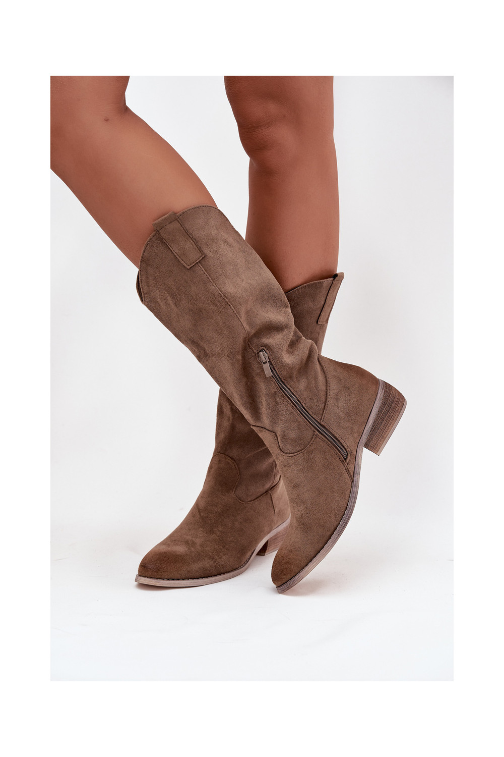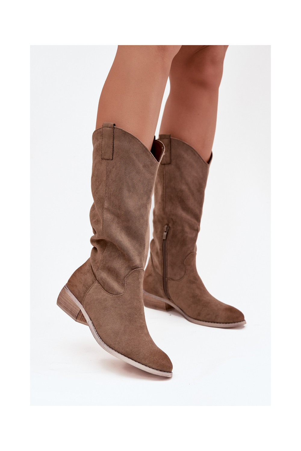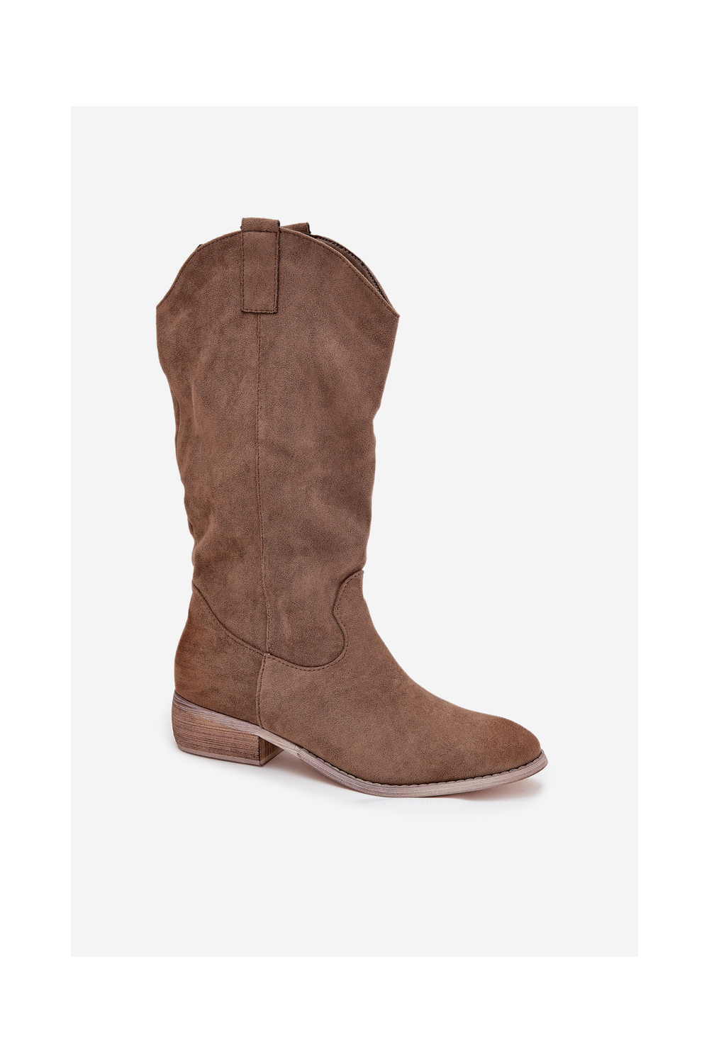 Pikkade kauboi stiilis saapad madala kontsaga kunstnahast beeži värvuses „Cherrie"