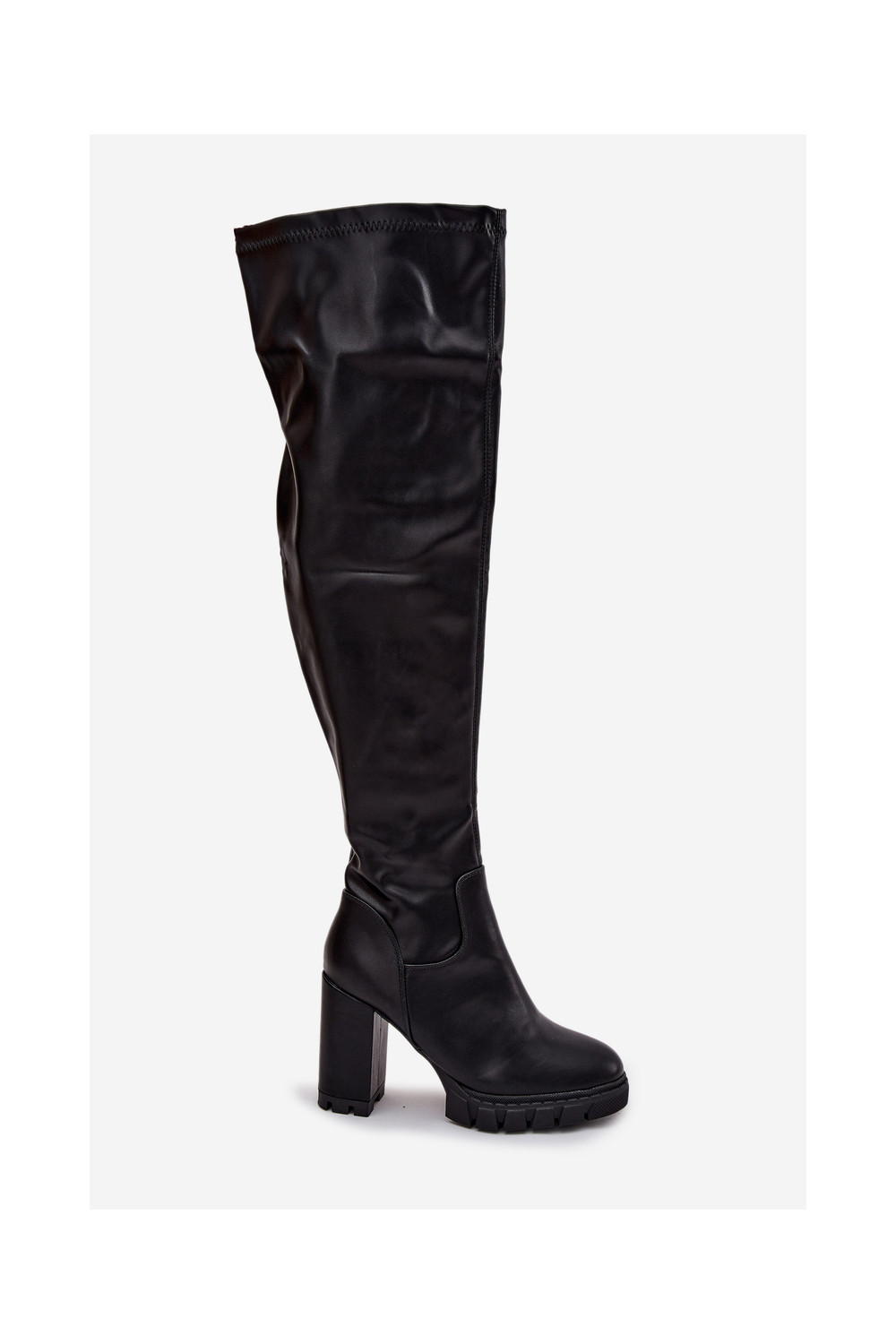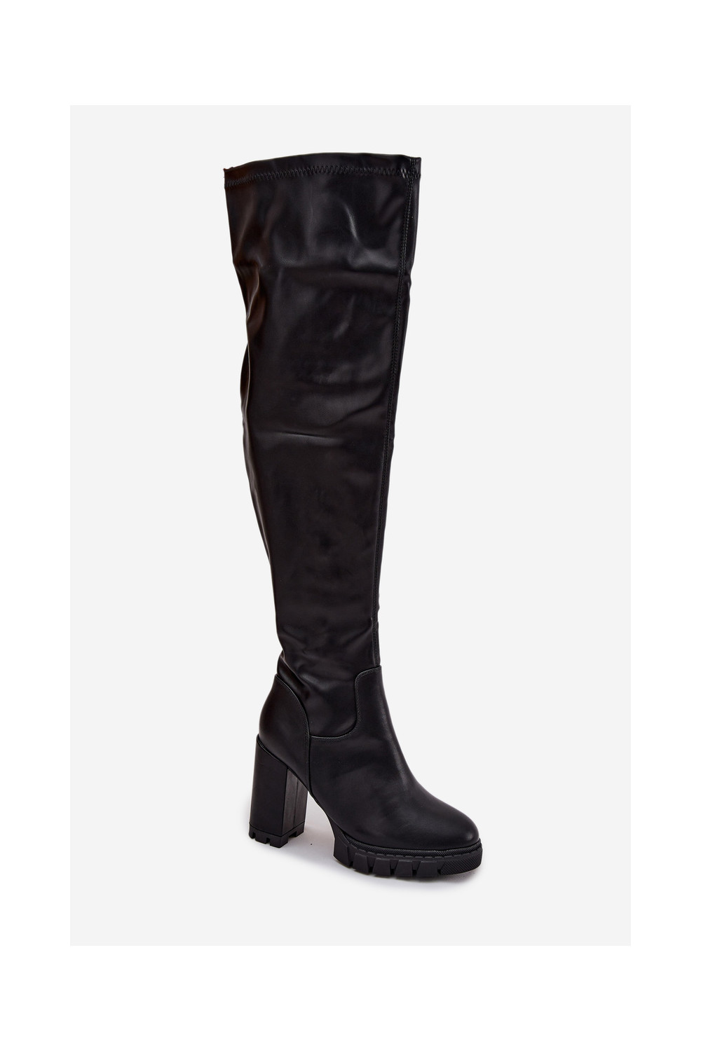 Naiste pikad saapad üle põlve kontsadega kunstnahast mustas värvuses „Tahlina"