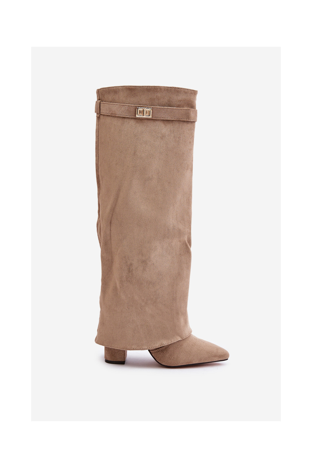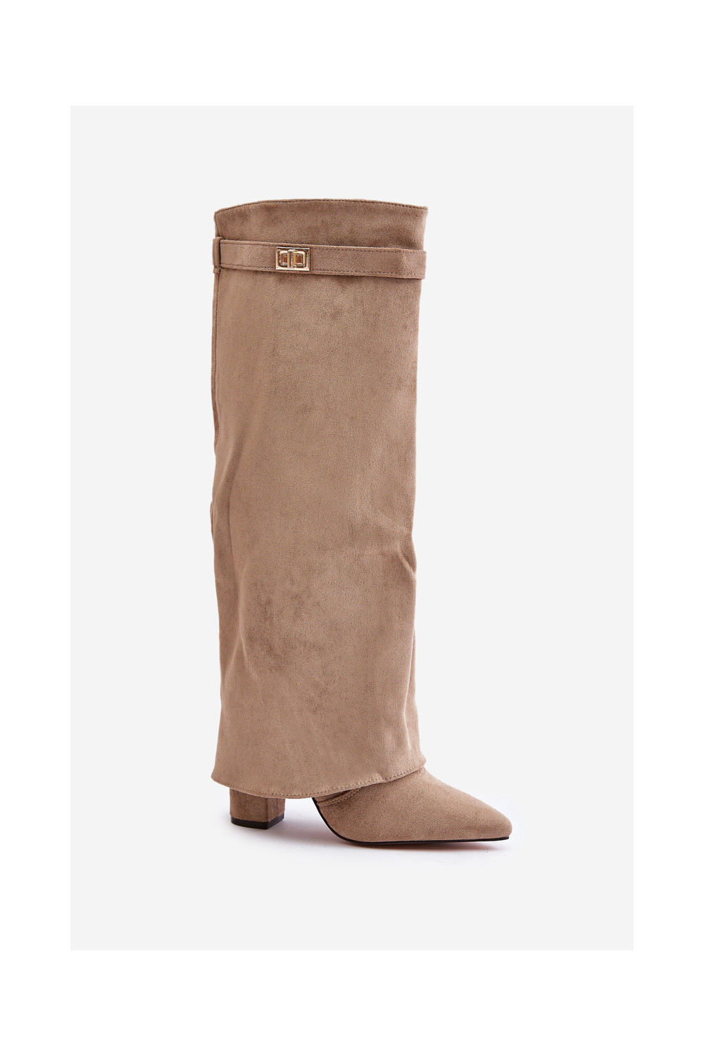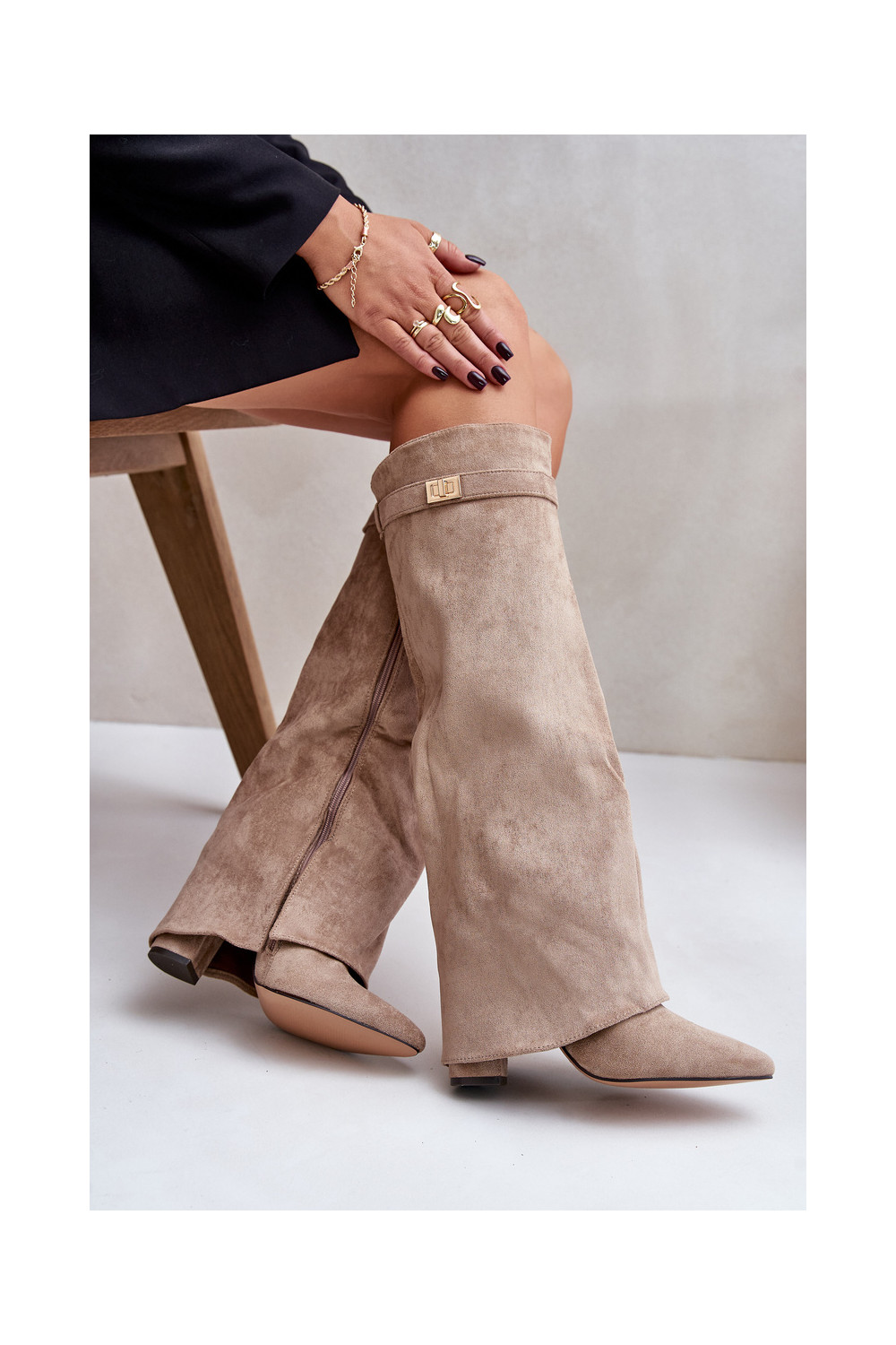pika säärega saapad kõrge jämeda kontsagaINysisseiniętą Cholesisseką voodriga beeži värvi Urelli