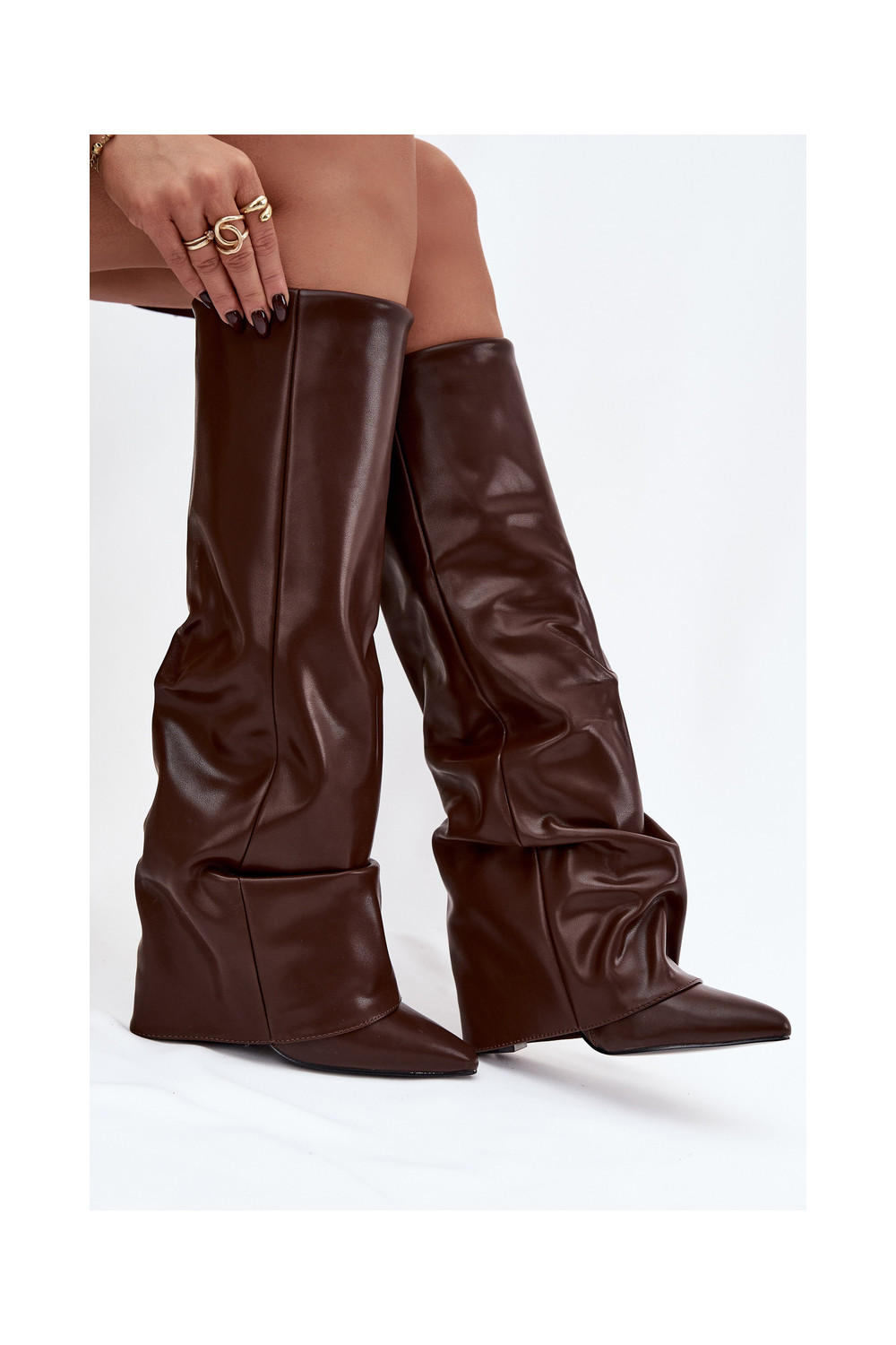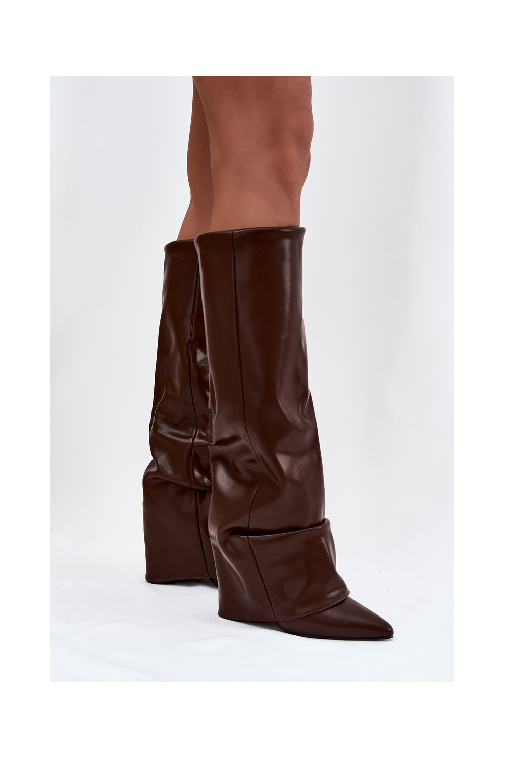 voodriga naiste pika säärega saapadINysisseiniętą Cholesisseką kõrge jämeda kontsaga Czekoladosissee Elivira