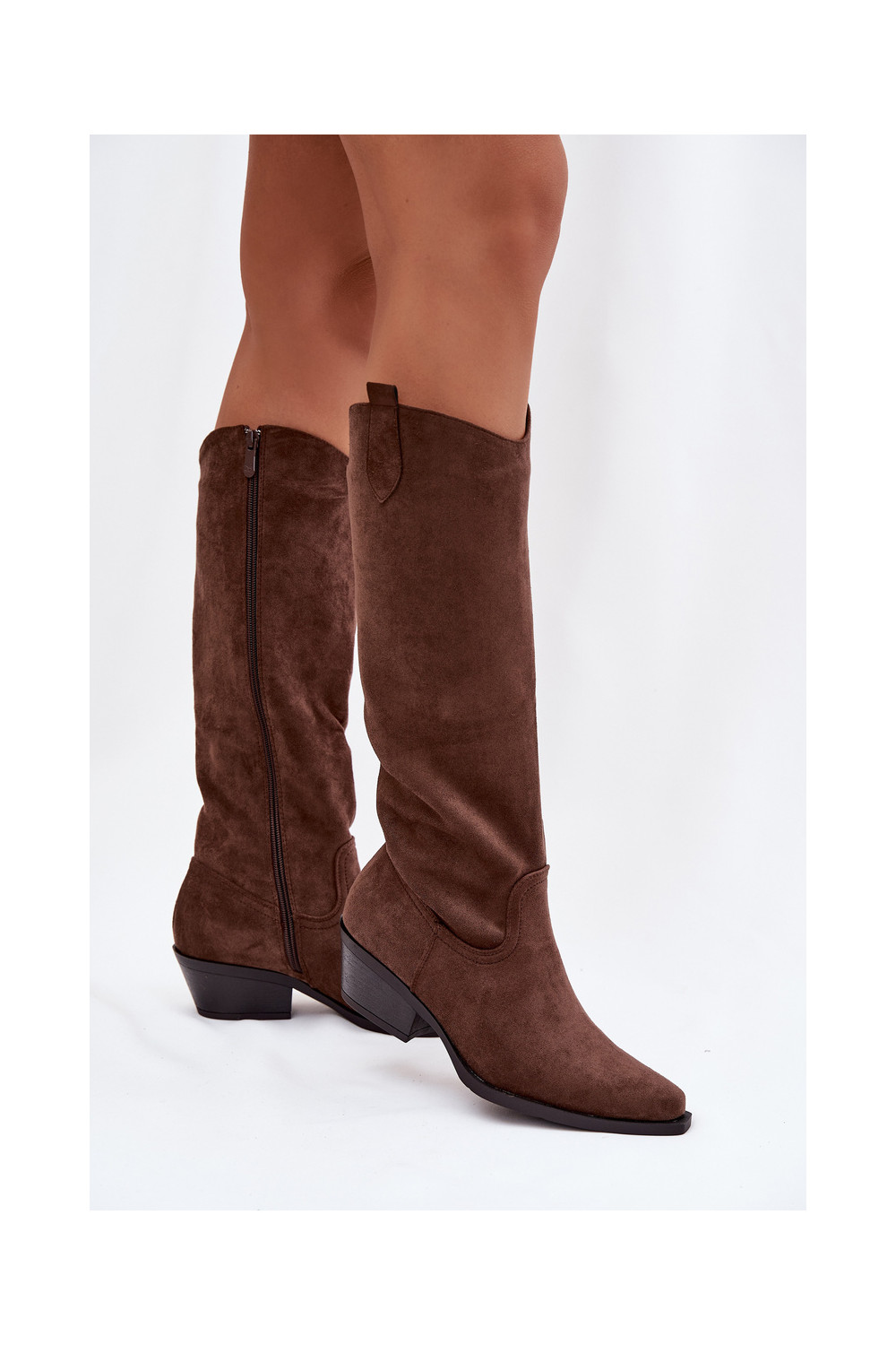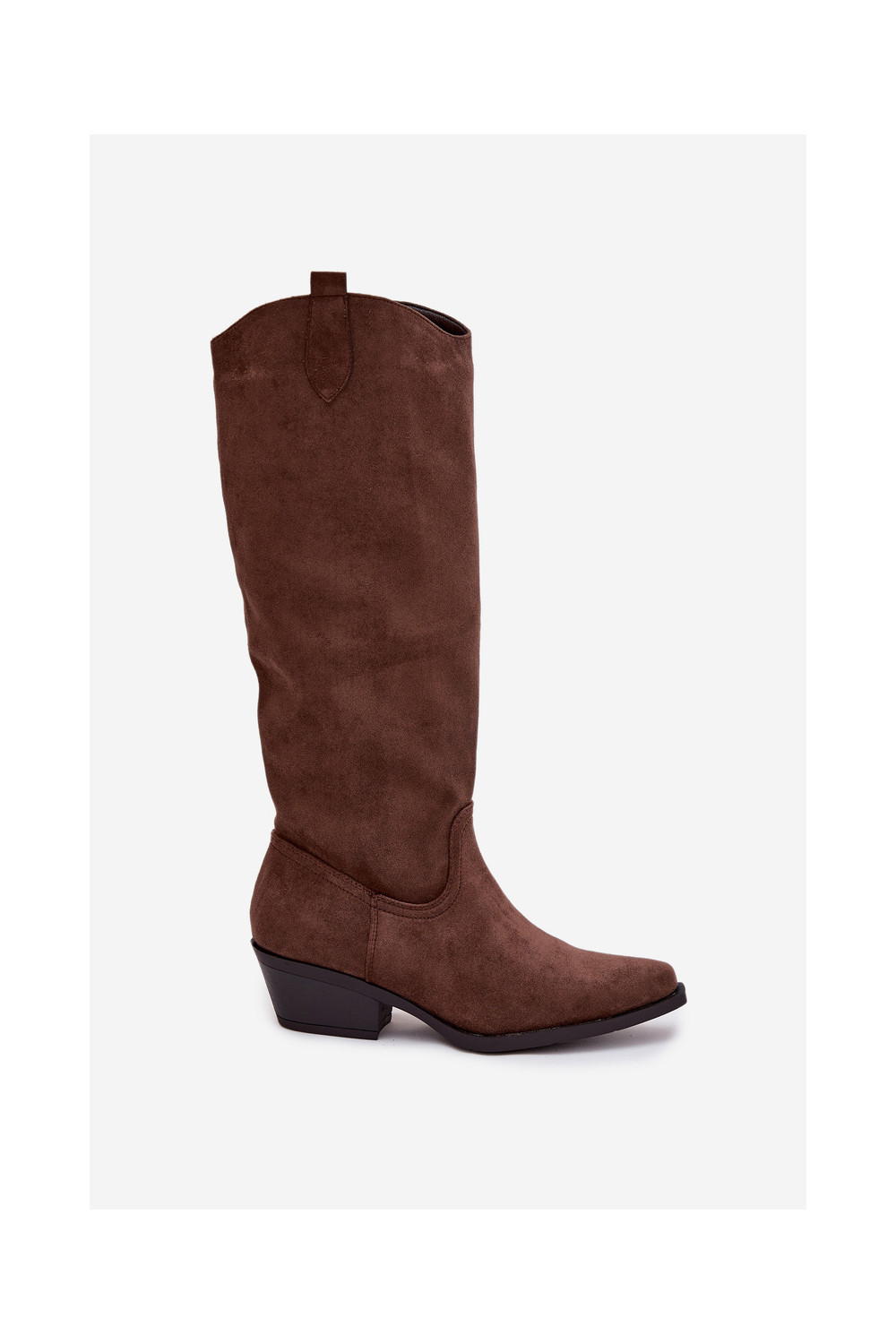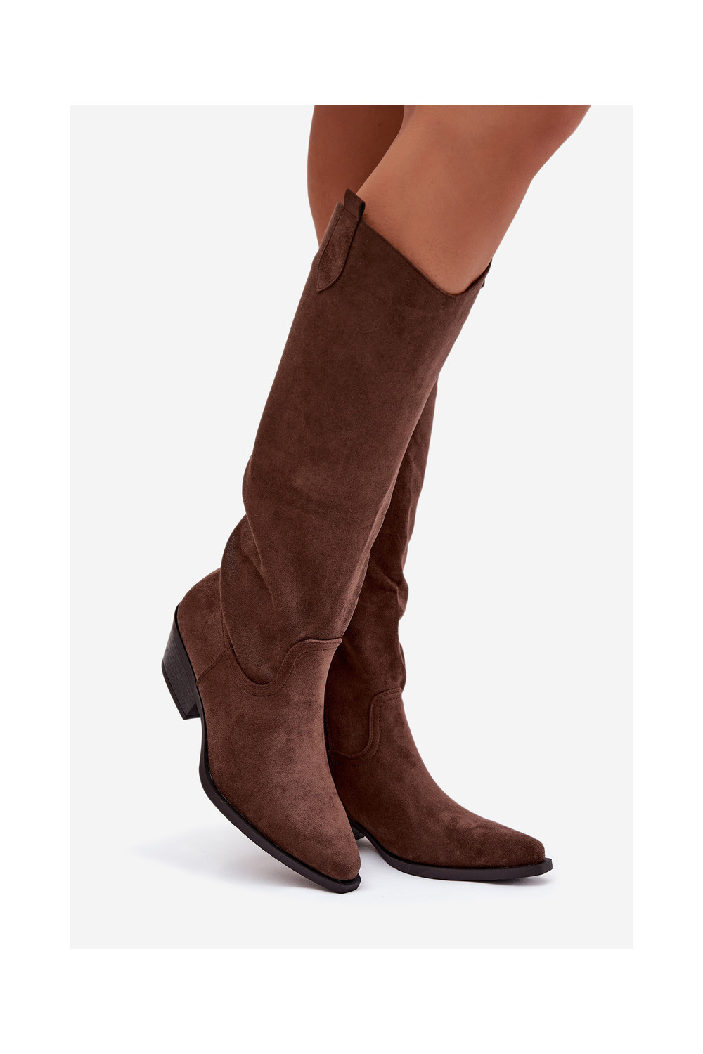 Esmira naiste cowboy-stiilis kõrgsaapad kunstnahast, pruuni värviga