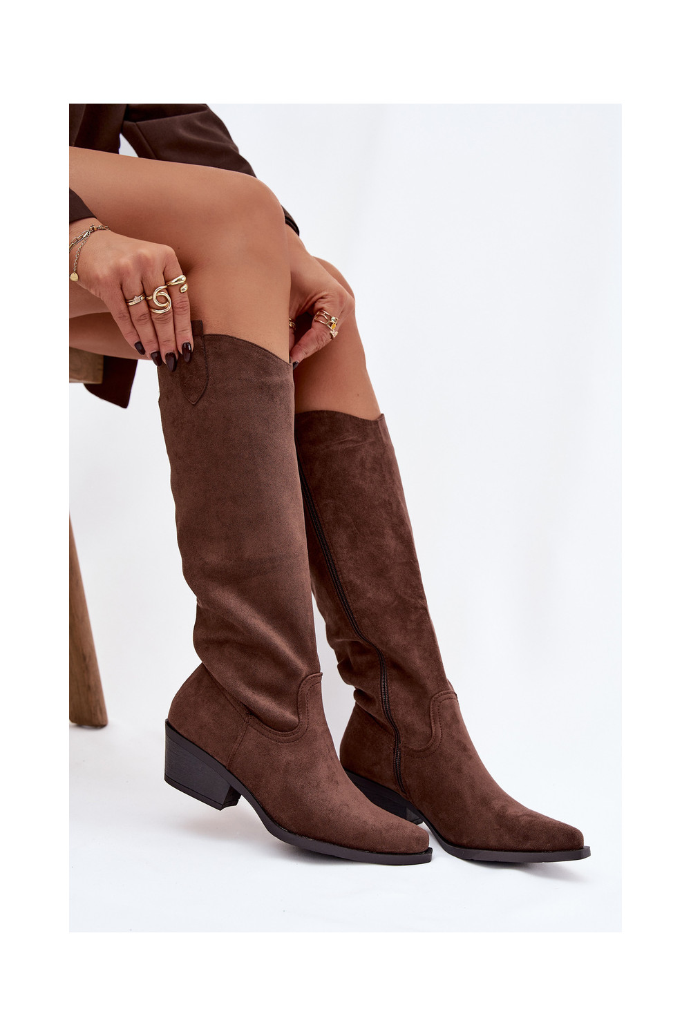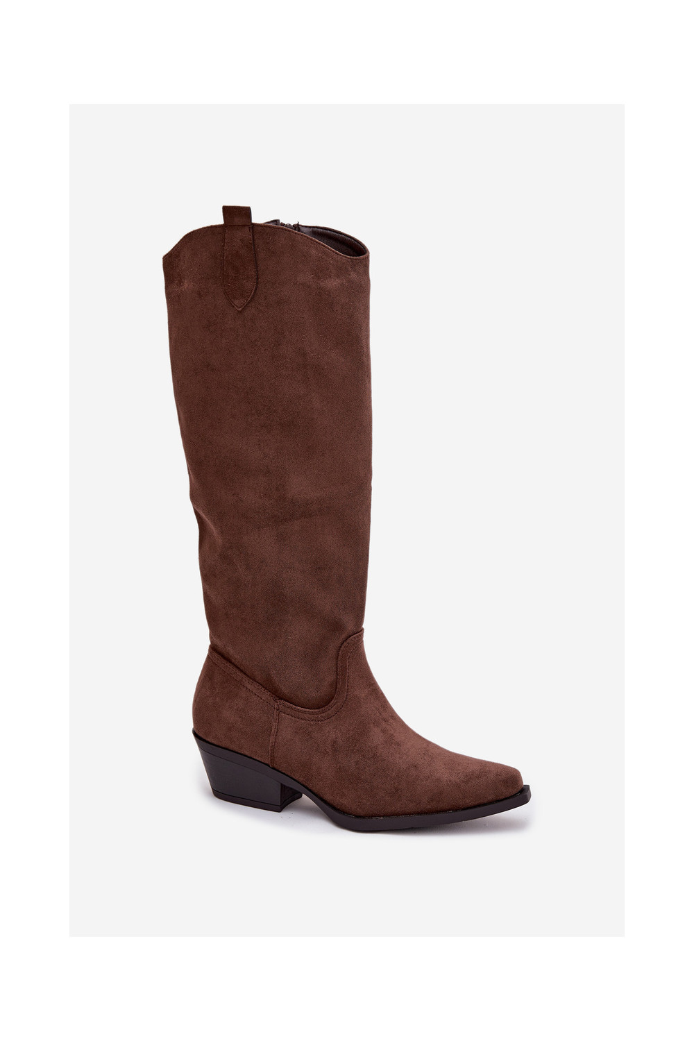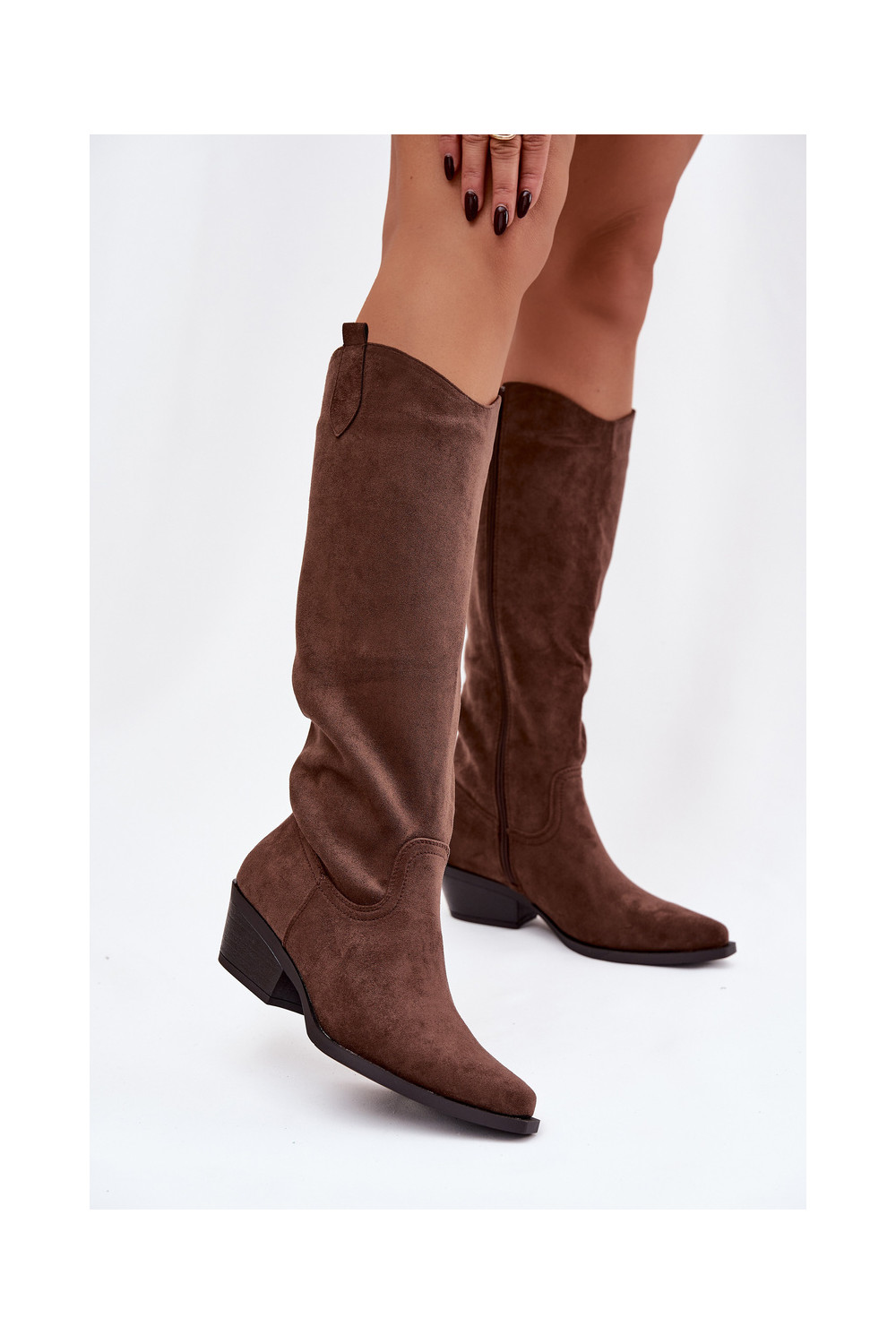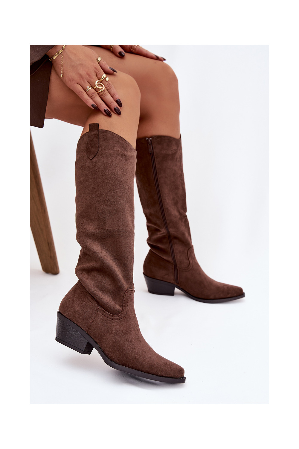 Esmira naiste cowboy-stiilis kõrgsaapad kunstnahast, pruuni värviga