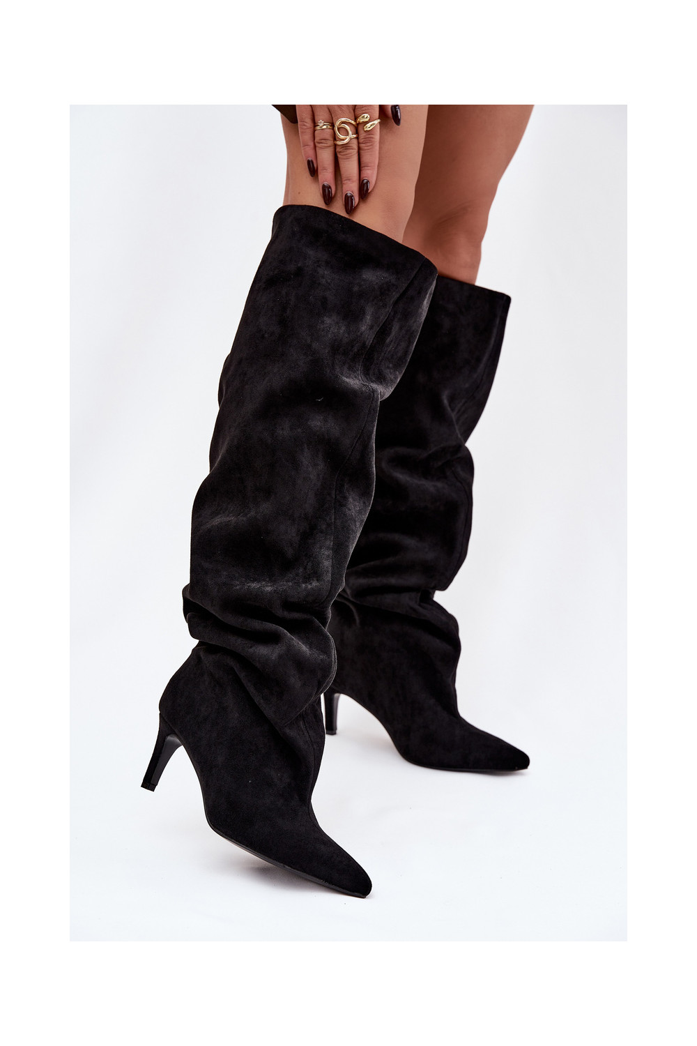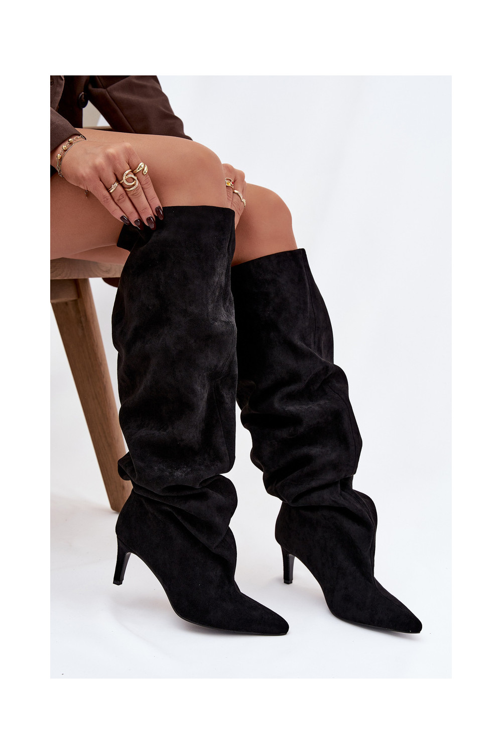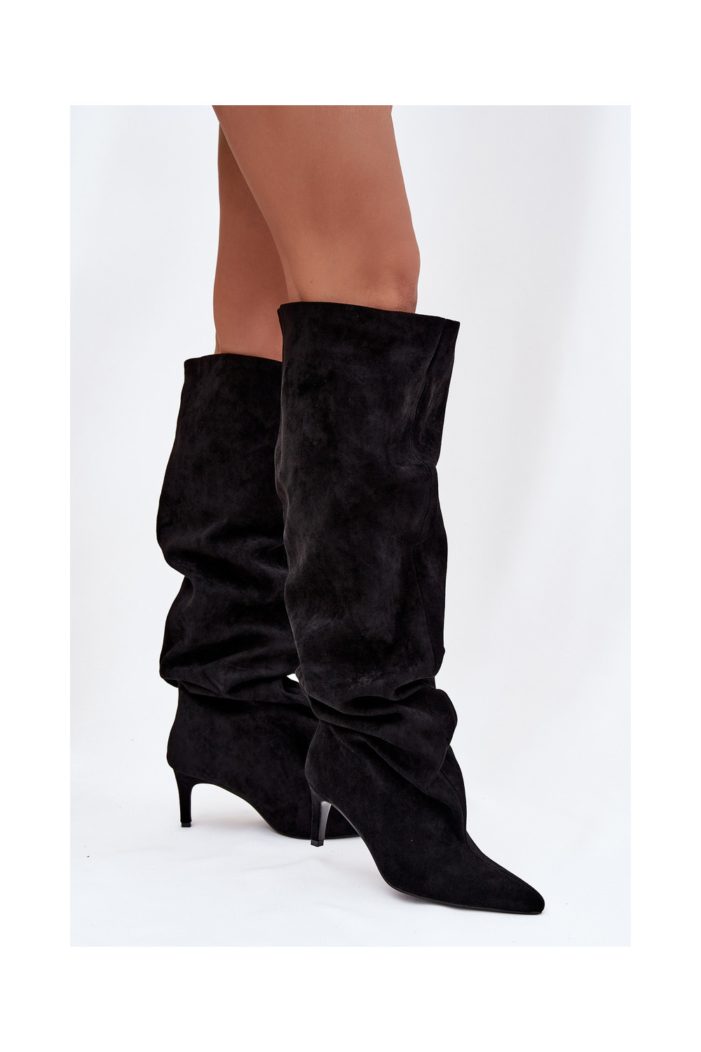 naiste pika säärega saapad kõrge jämeda kontsaga Slip-on msuud Sellel onvilla
