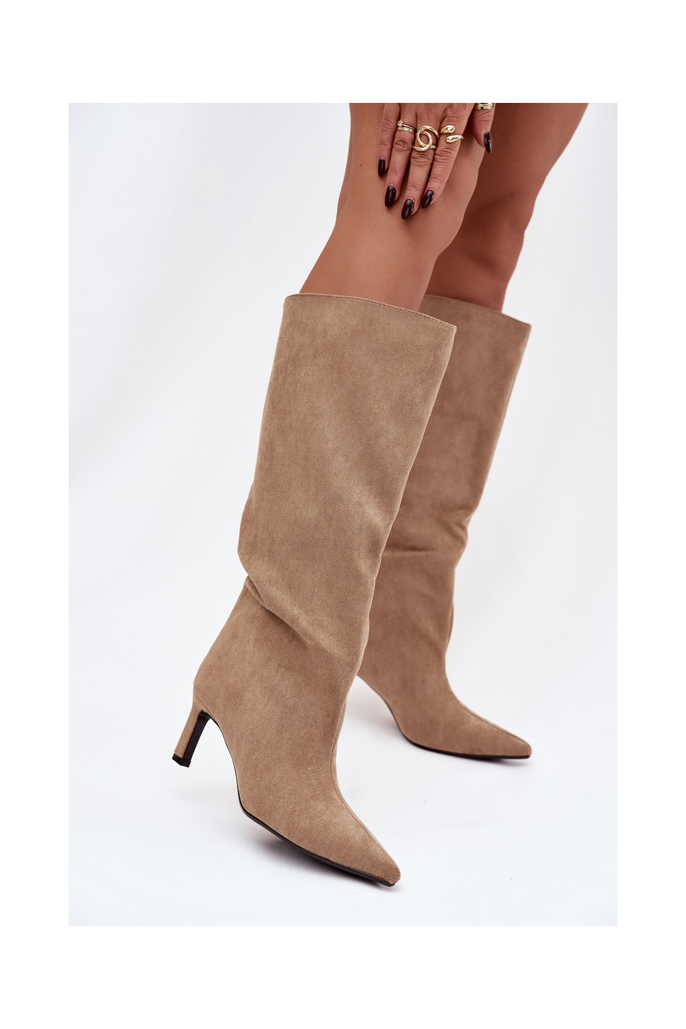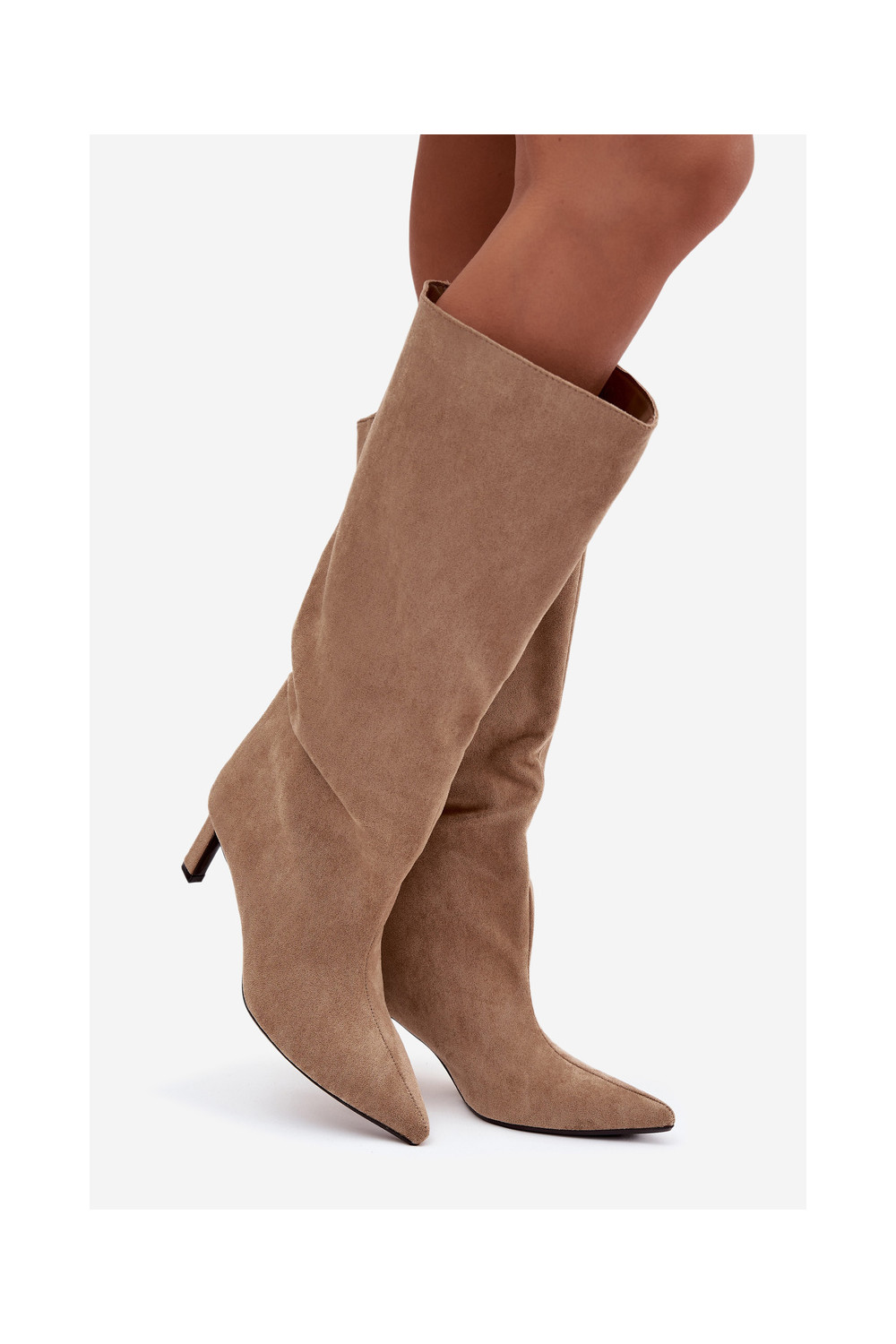 Phelin naiste kunstsuede kõrged saapad, sisetõmmatavad mudelid, õhukeste kontsadega, beež