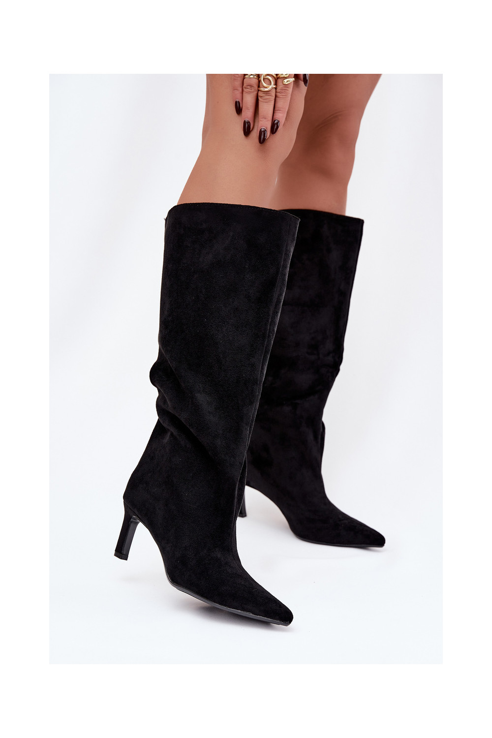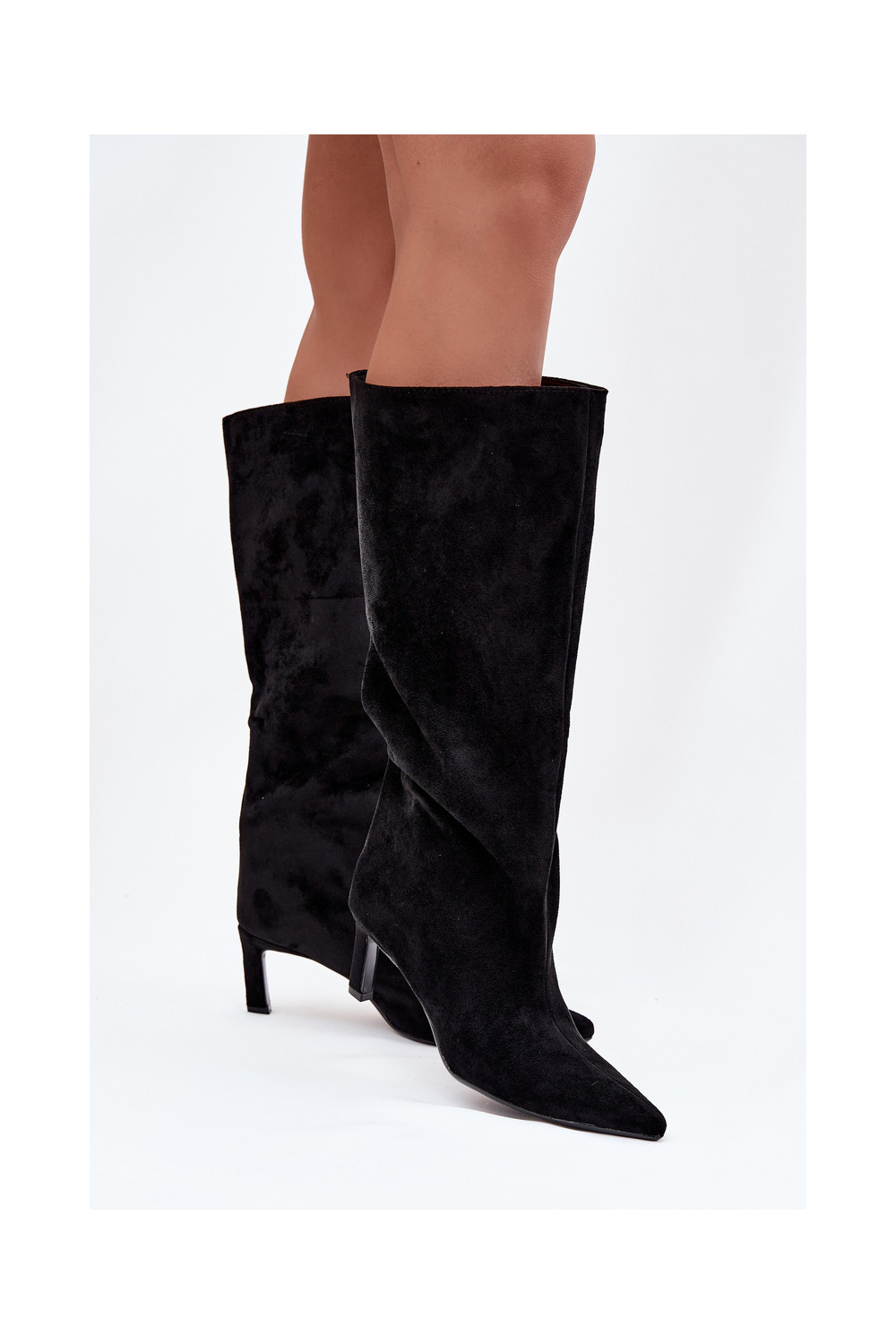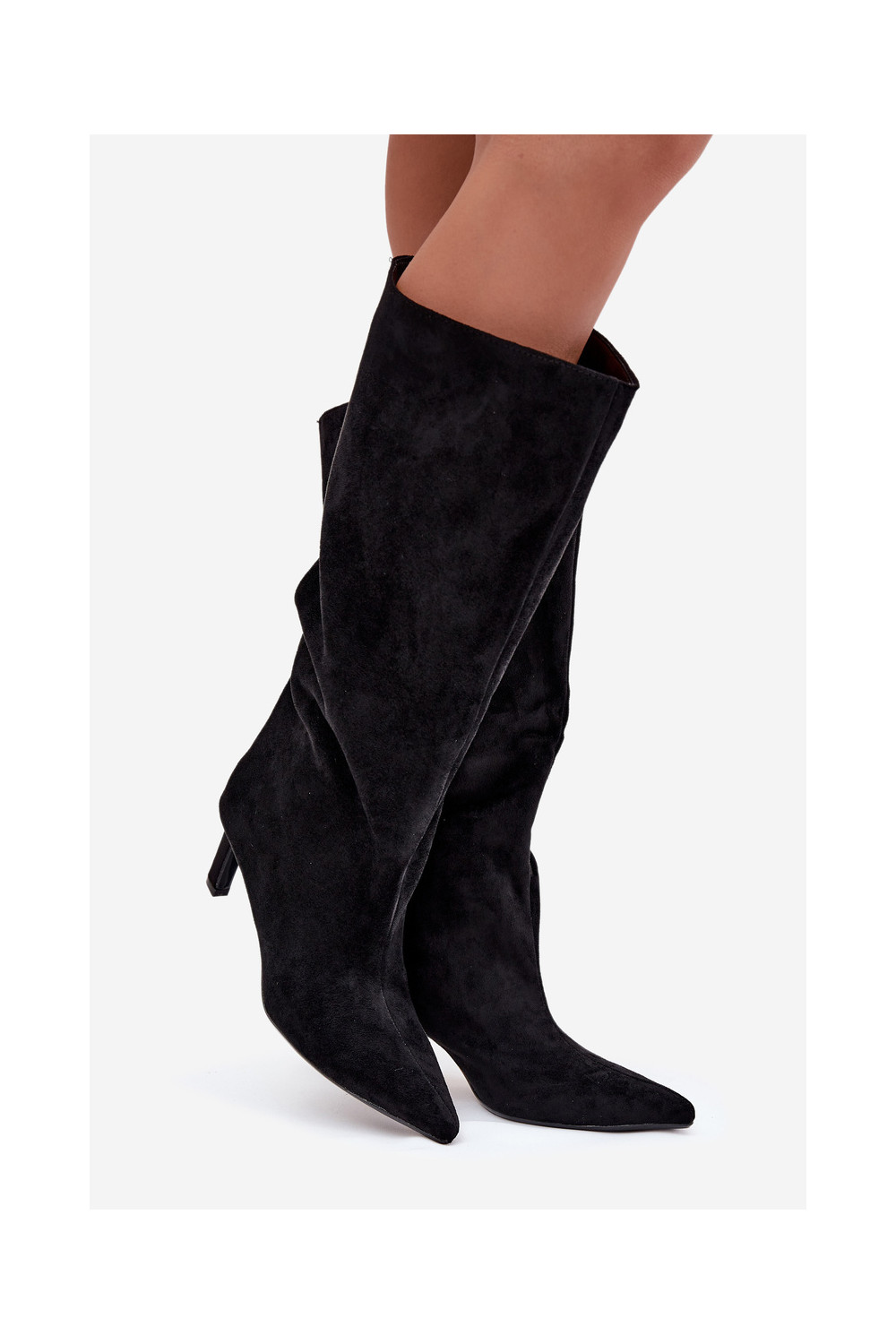 Phelin naiste kunstsuede kõrged saapad, sisetõmmatavad mudelid, õhukeste kontsadega, must