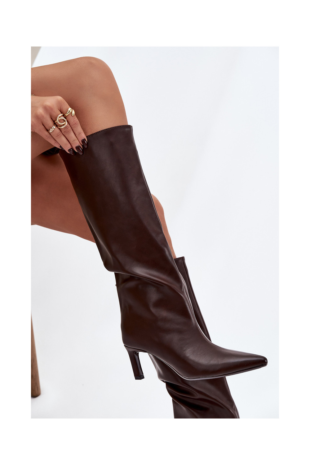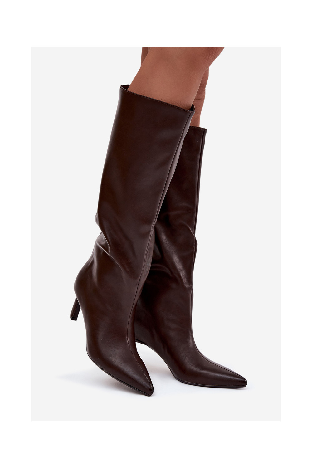 Olyvia naiste kõrged saapad, sisetõmmatavad mudelid, õhukeste kontsadega ja õmblustega, šokolaadi värvi