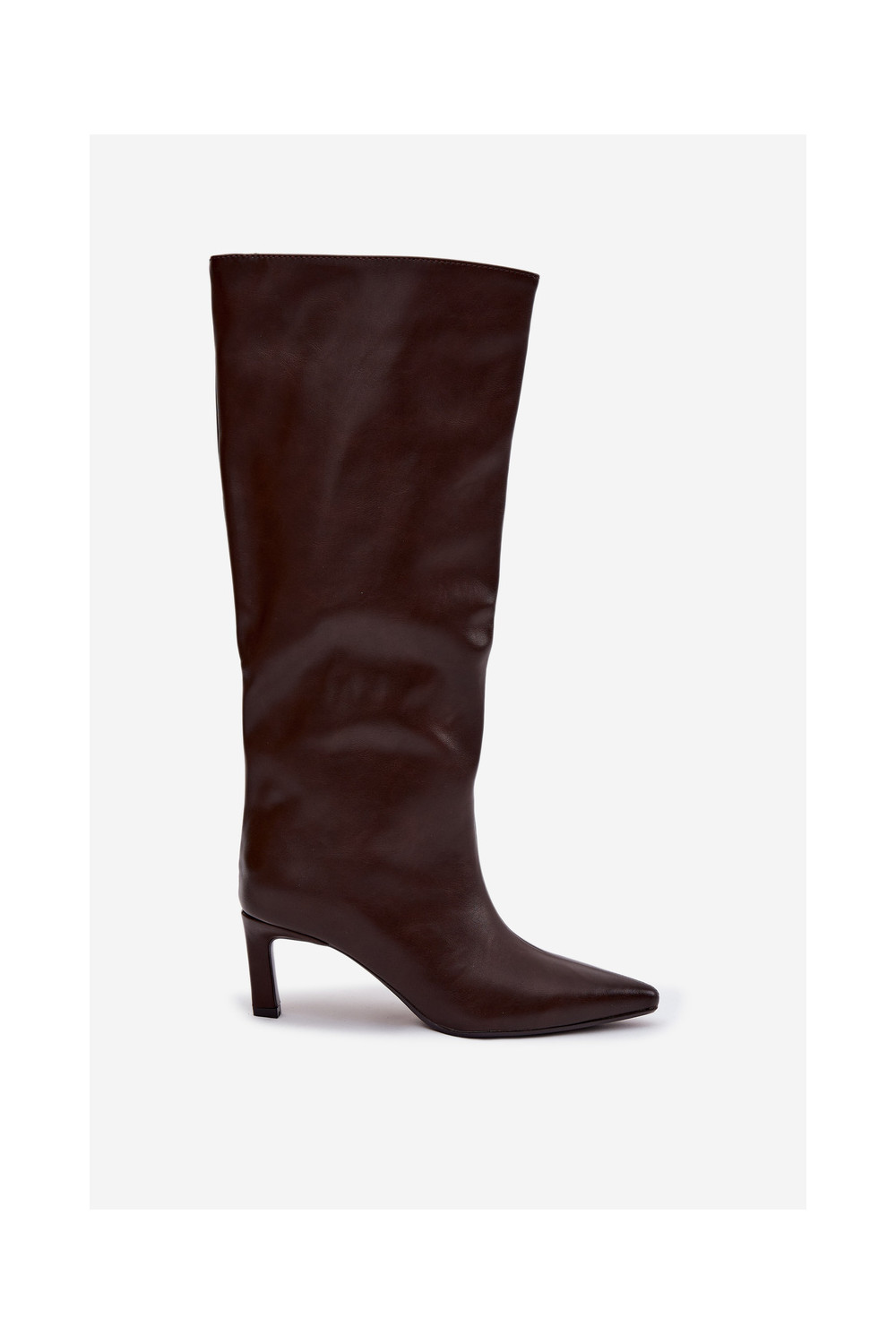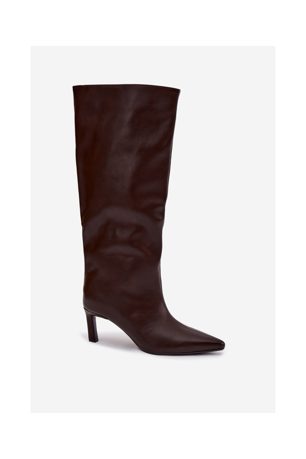Women's slip on heeled boots with stitching chocolate Olyvia