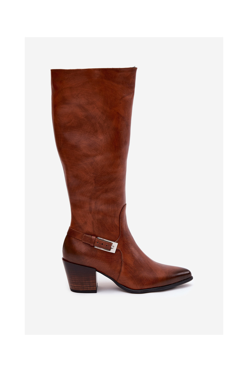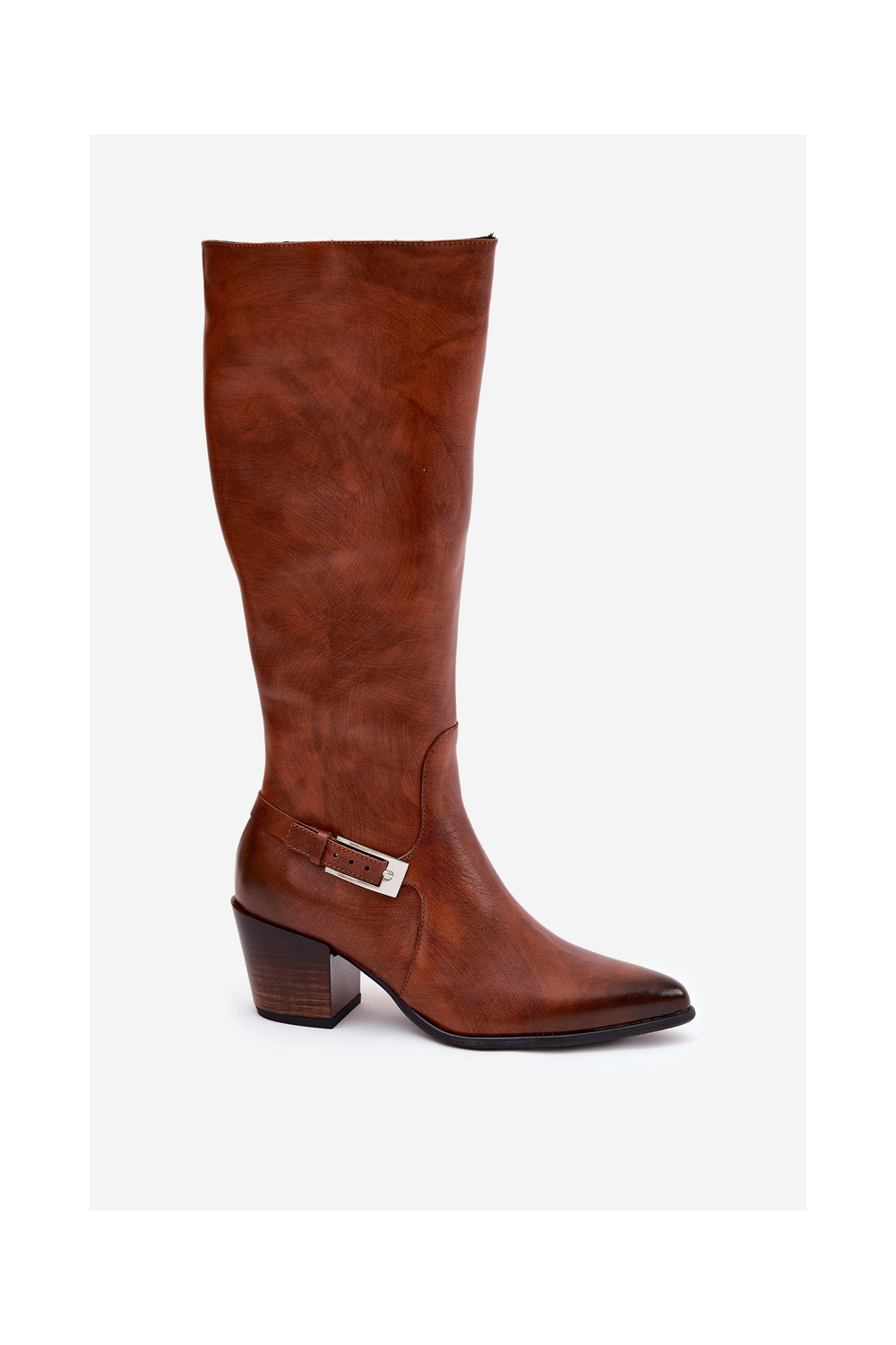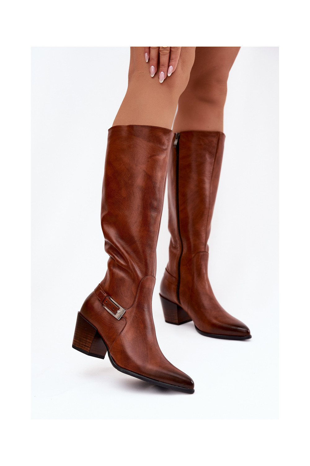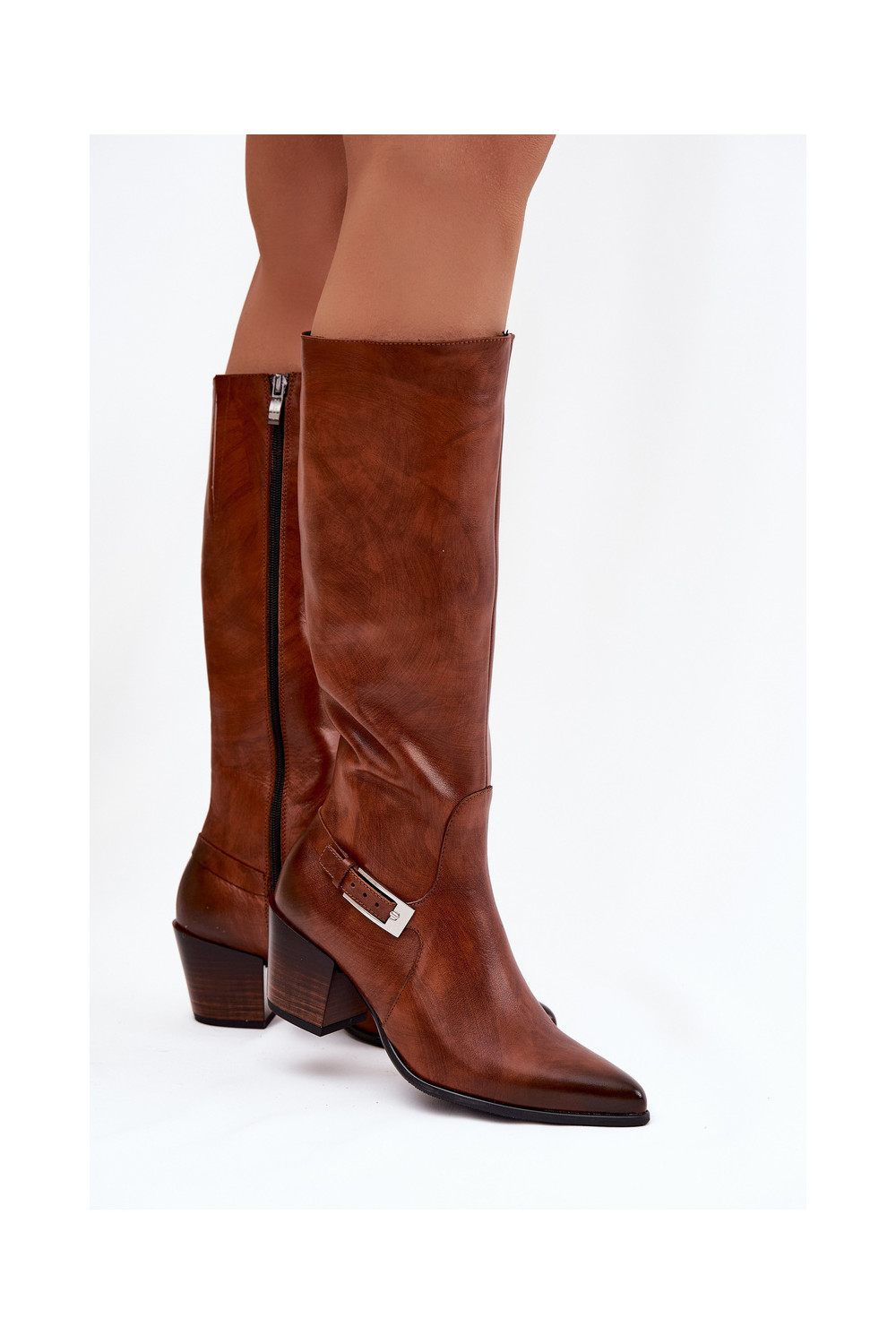 Pealhk pika säärega saapad kõrge jämeda kontsaga neetide ja pandlaga voodriga Zazoo 70156 pruunid värvi