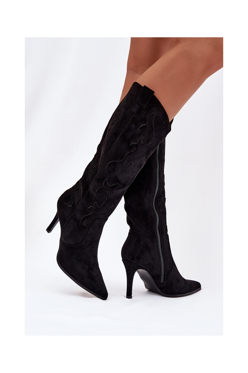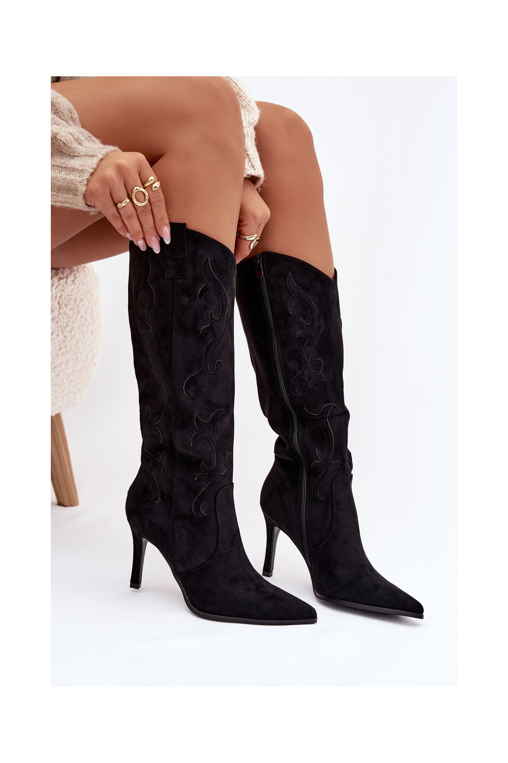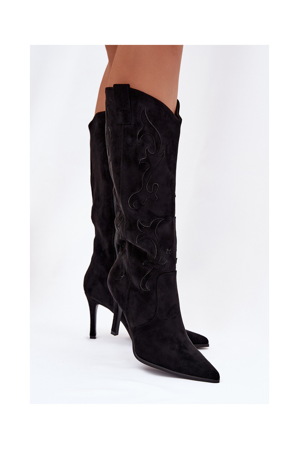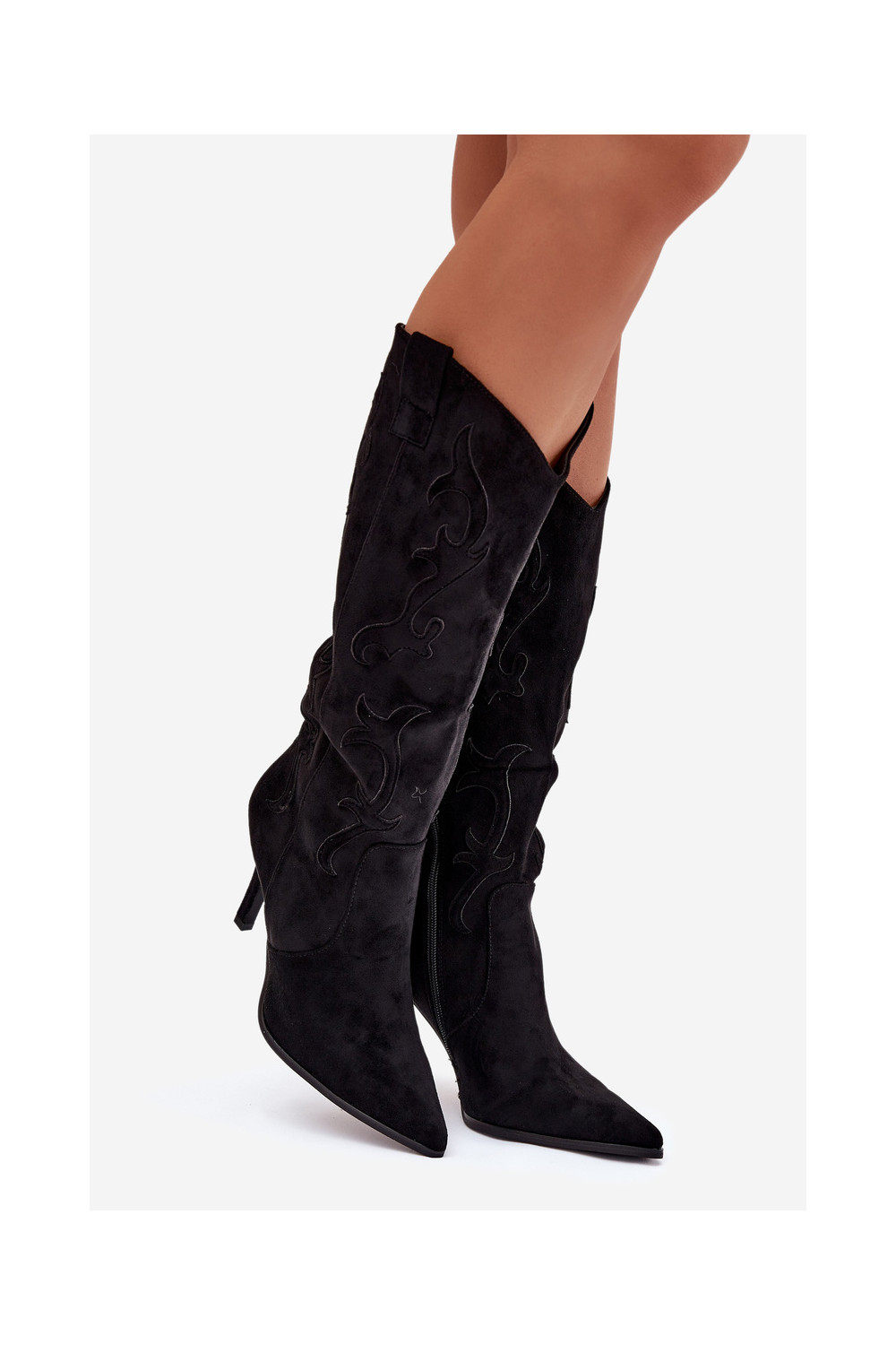 naiste pika säärega saapad kõrge jämeda kontsaga Kauboi saapadEco Suedeu msuud Belonia