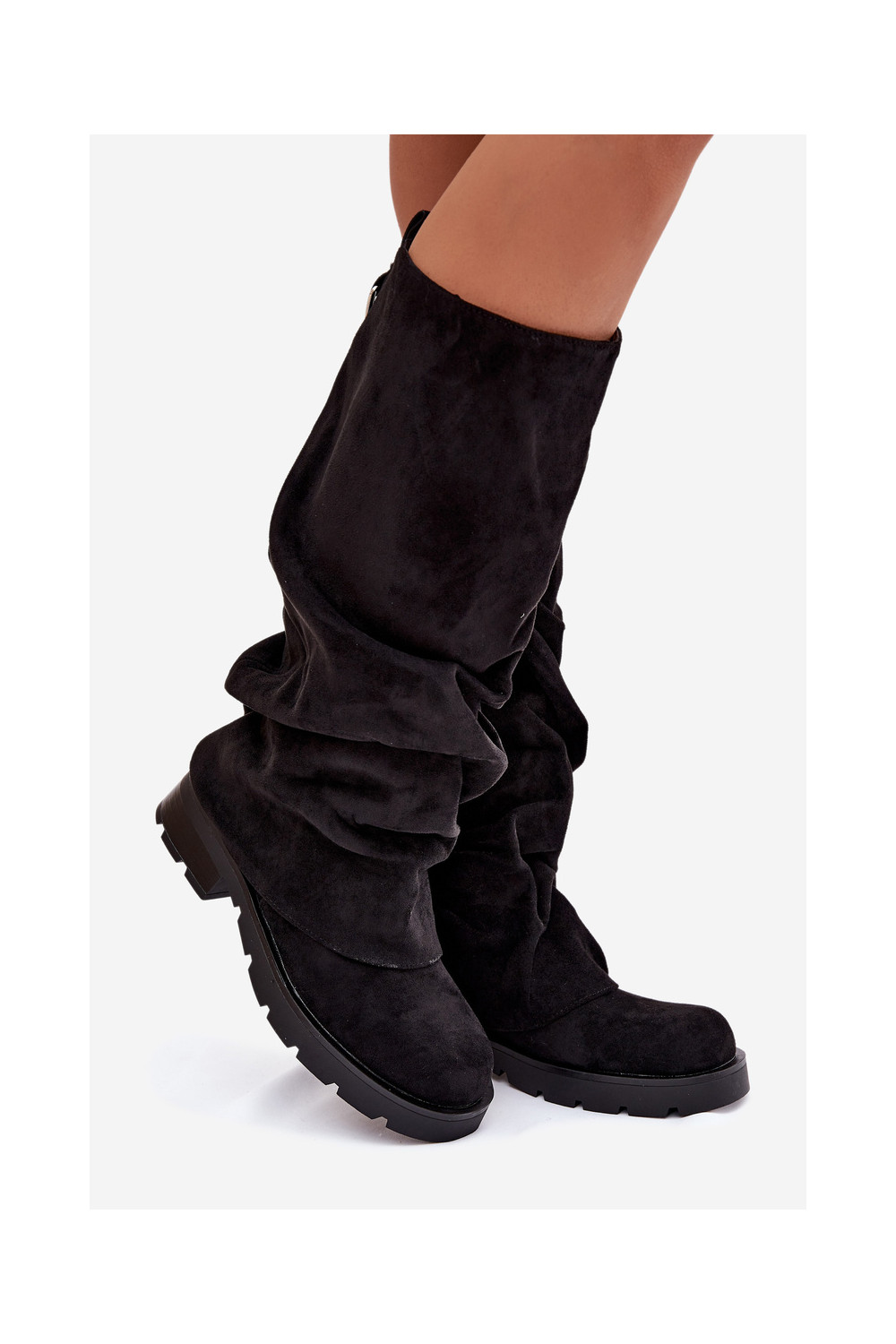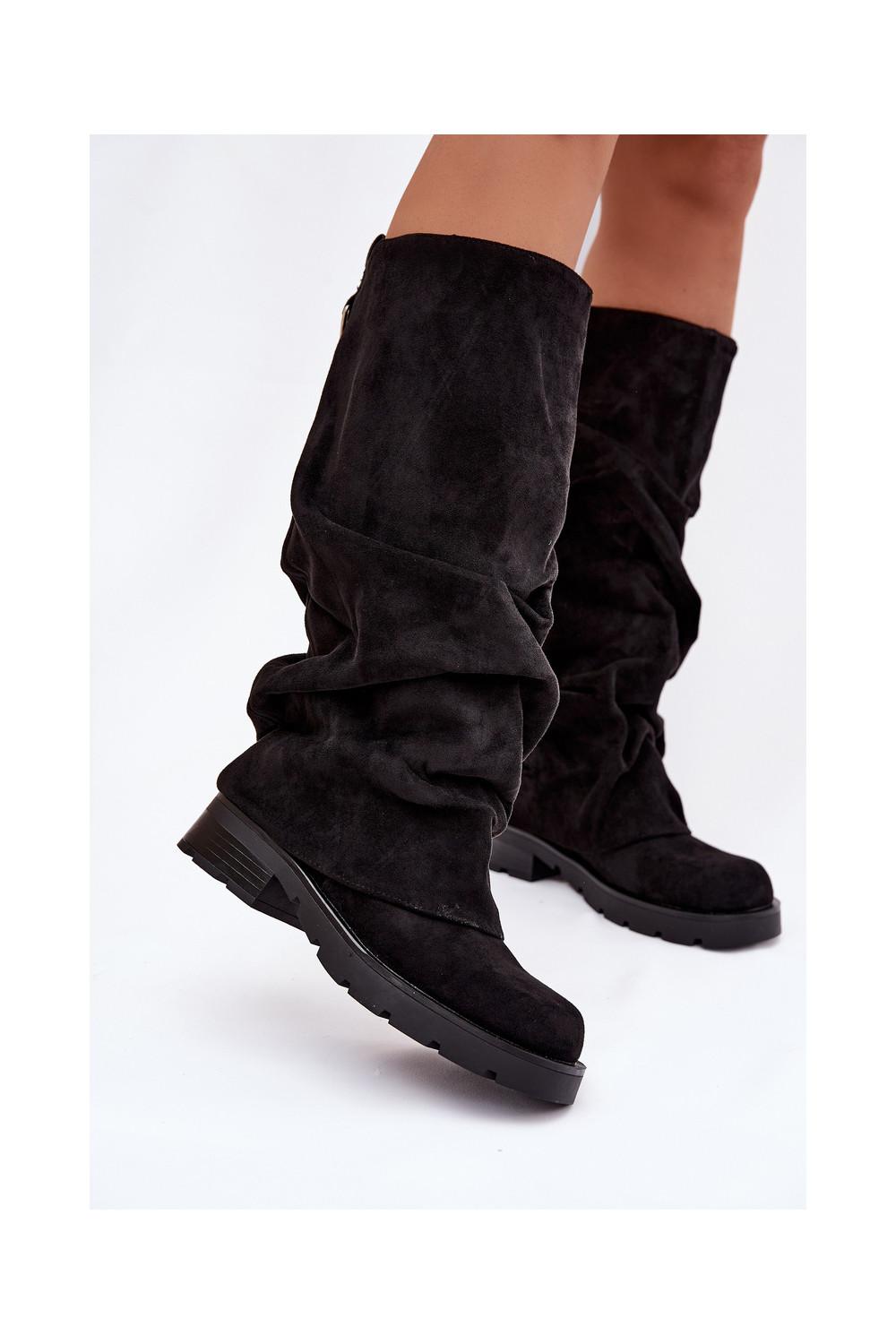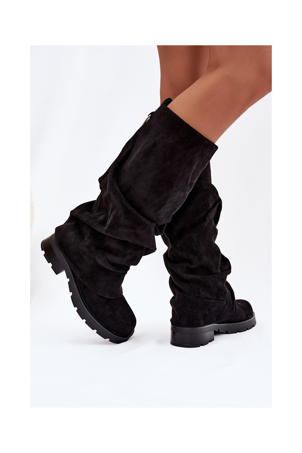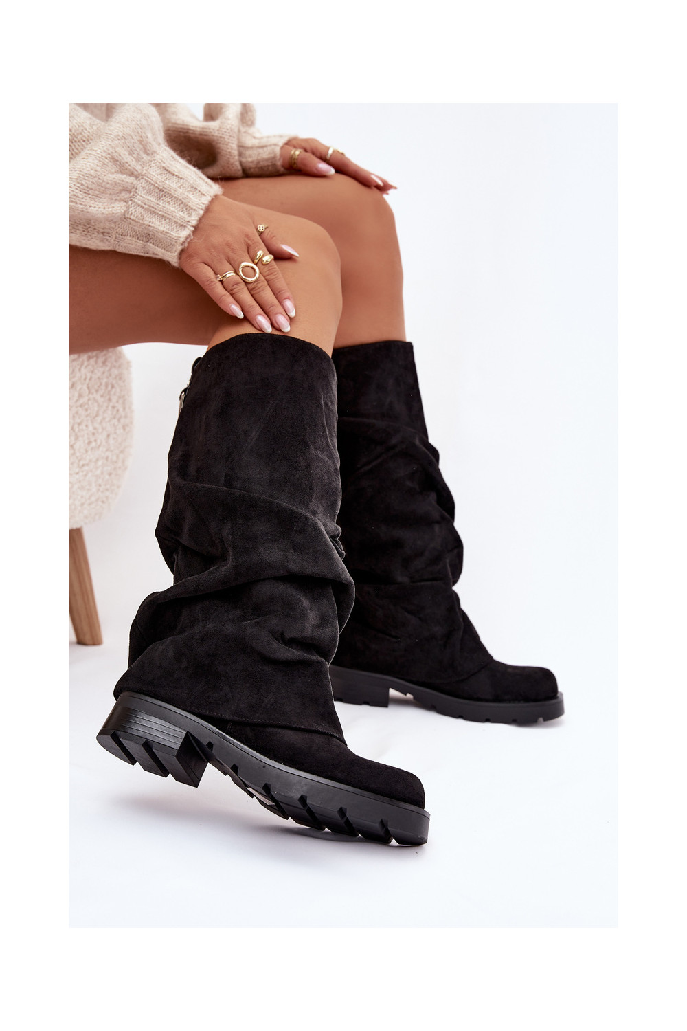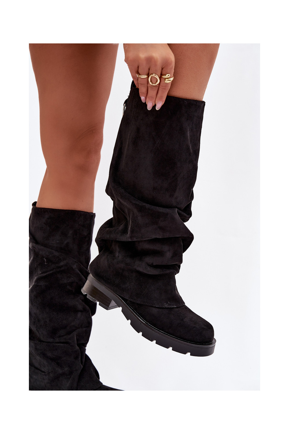 Naiste pika säärega saapad  kortsus tallaga Must Ilvessa