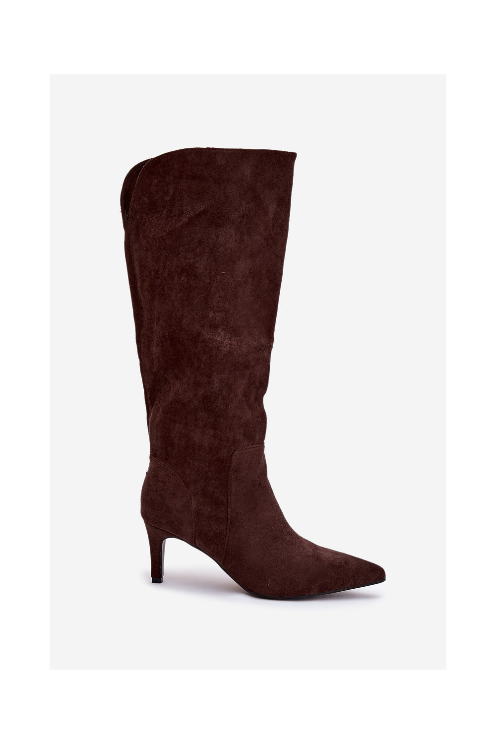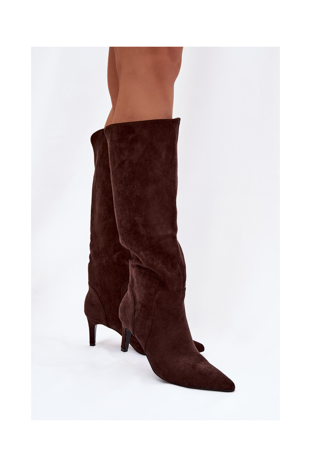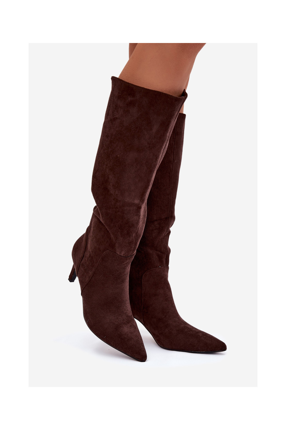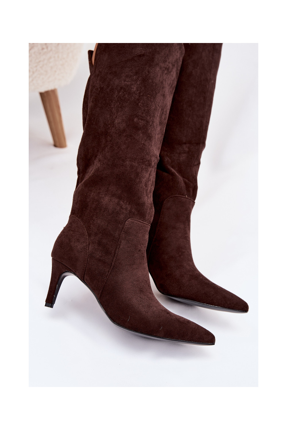 naiste pika säärega saapad kõrge jämeda kontsaga voodrigaEco Suedeu Czekoladosissee Arelisse