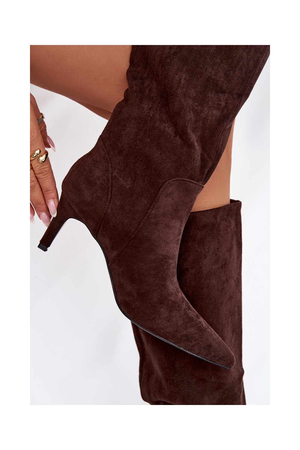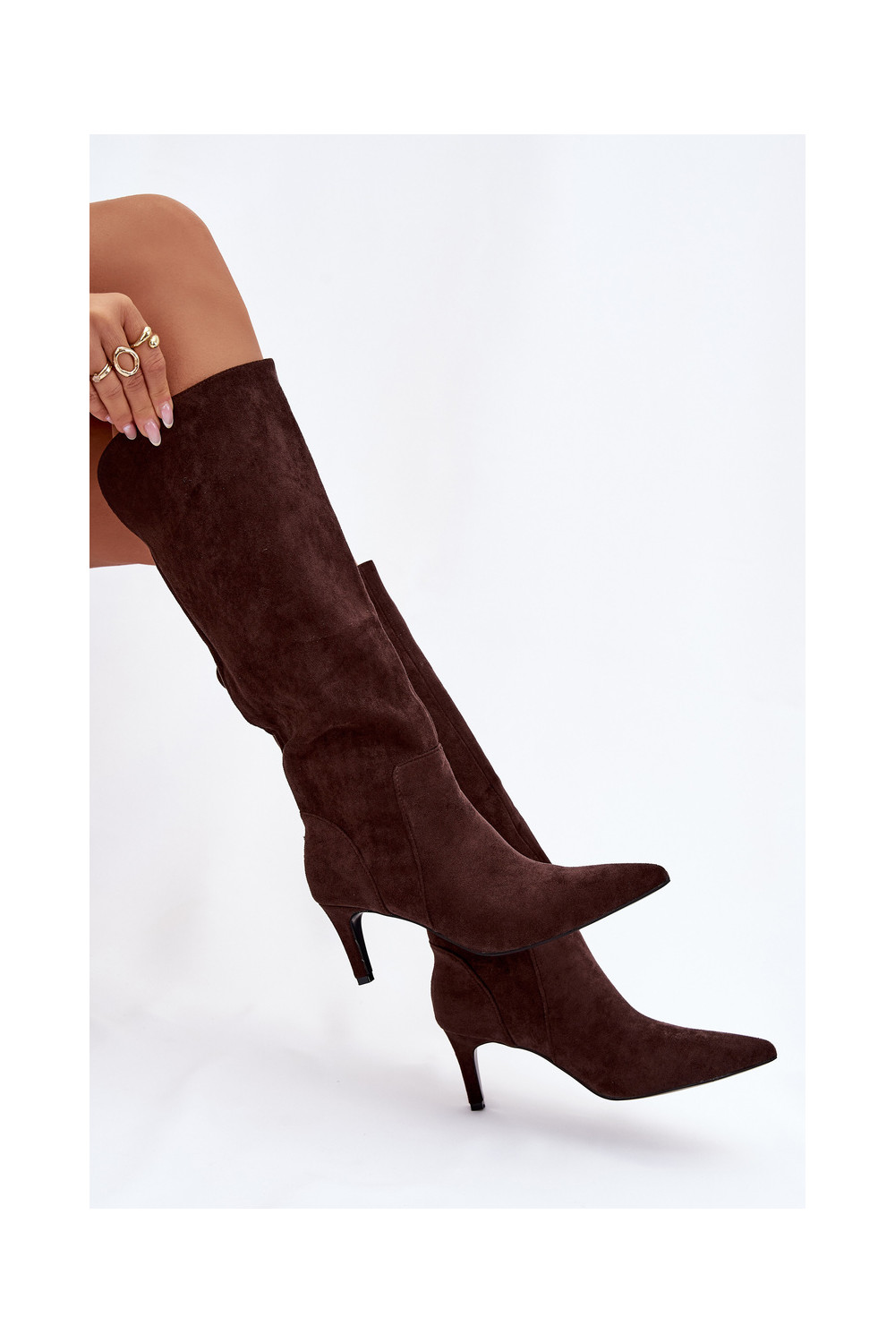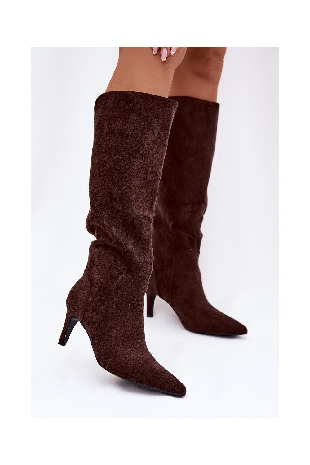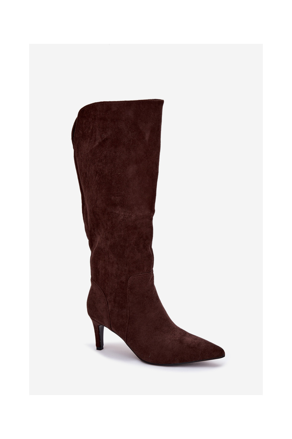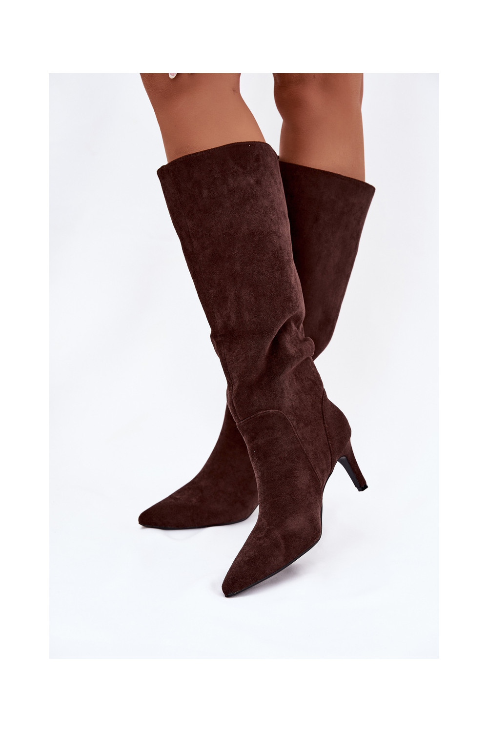 naiste pika säärega saapad kõrge jämeda kontsaga voodrigaEco Suedeu Czekoladosissee Arelisse