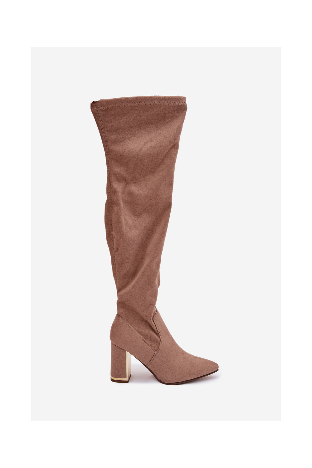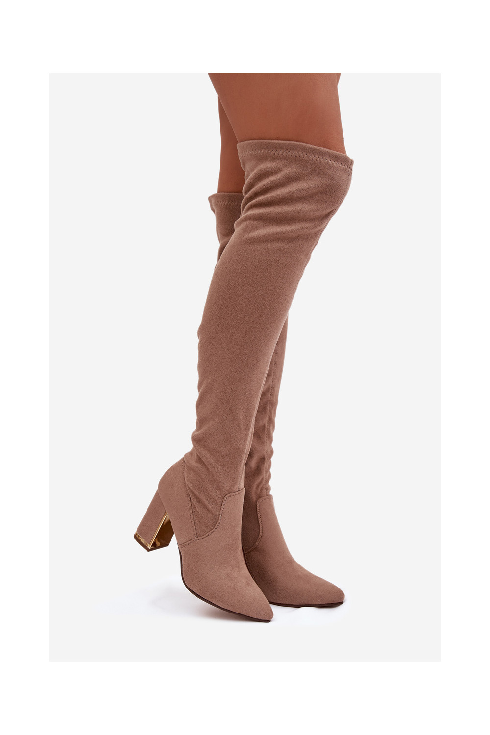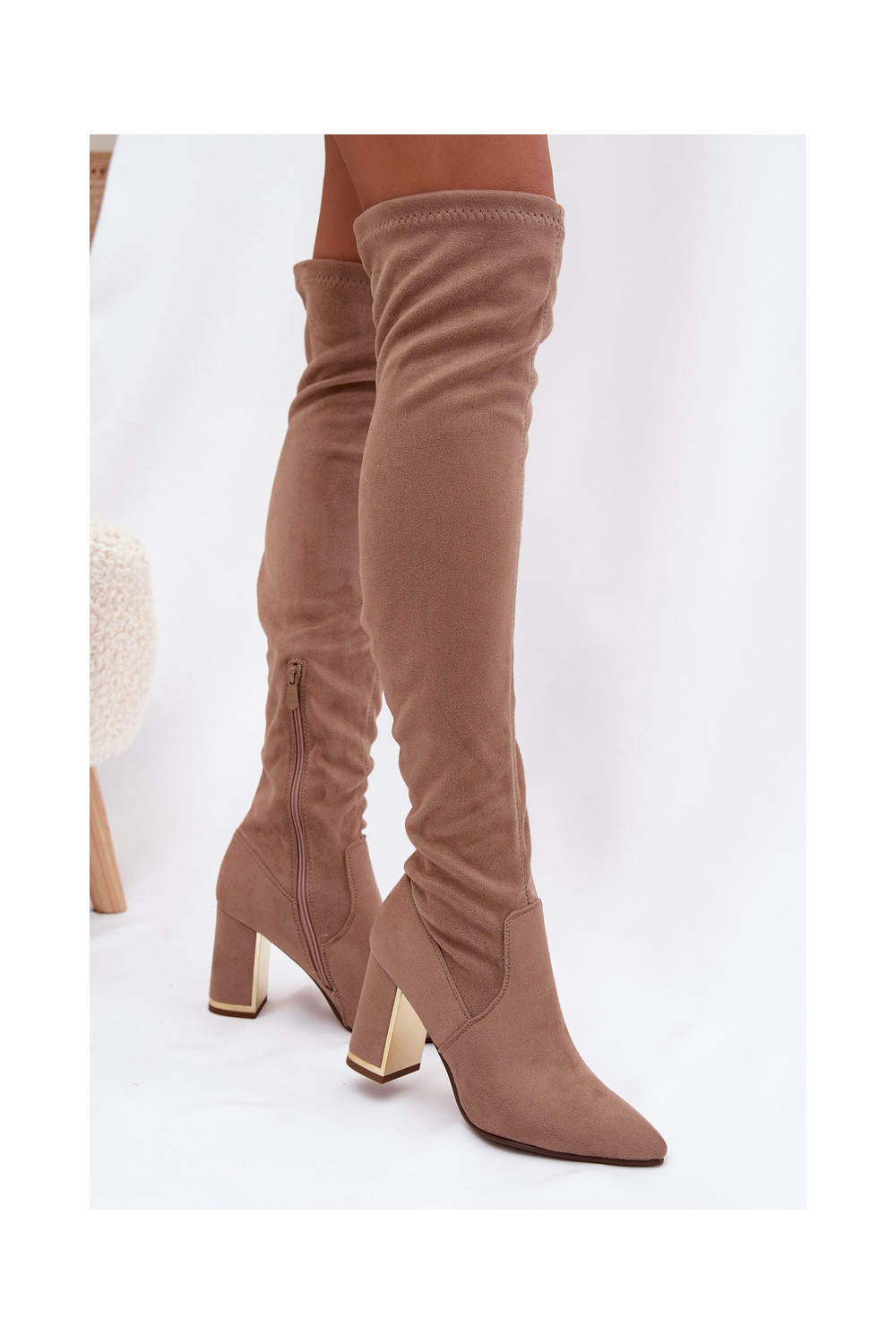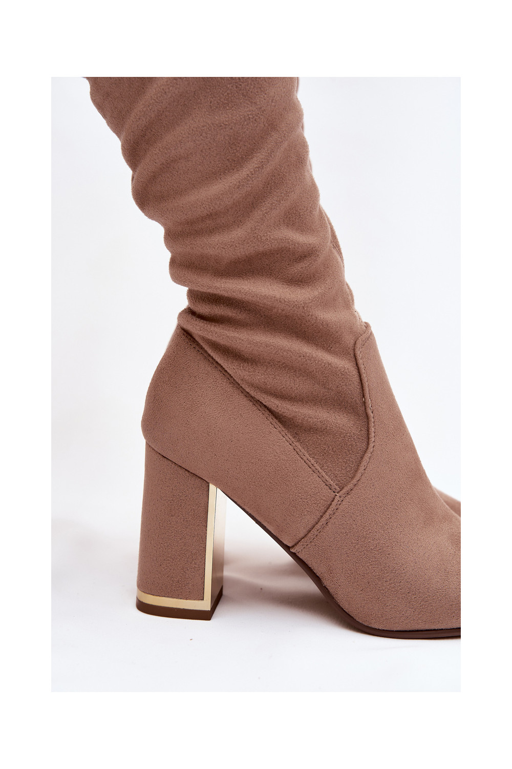 naiste pika säärega saapad Eco Suedeosissee Põlve jaoks kõrge jämeda kontsaga beeži värvi Thamine