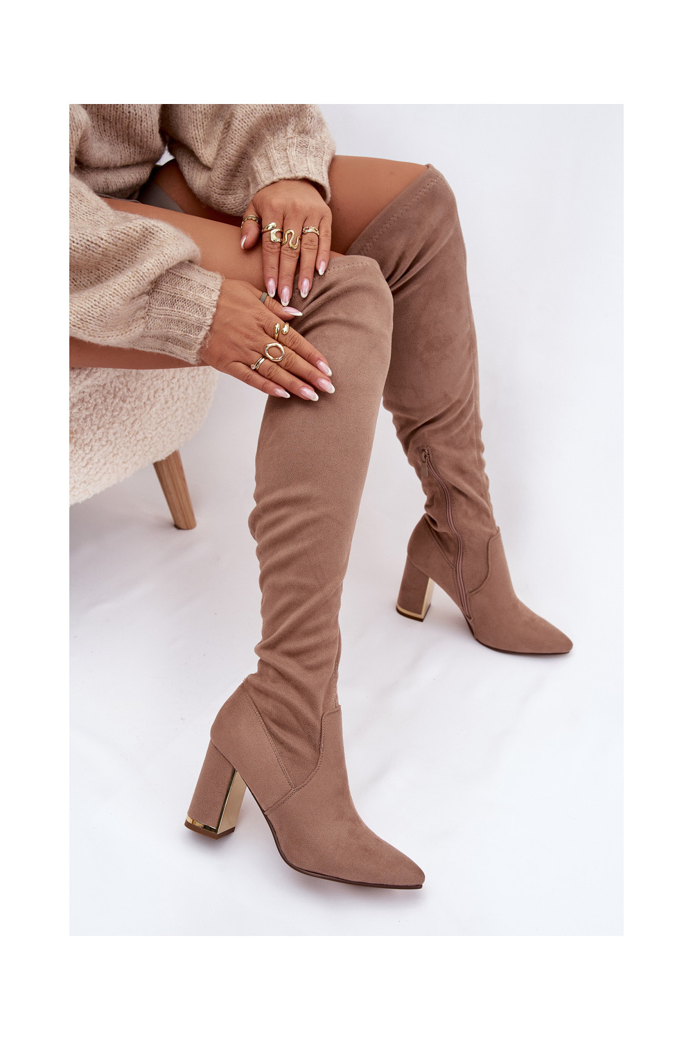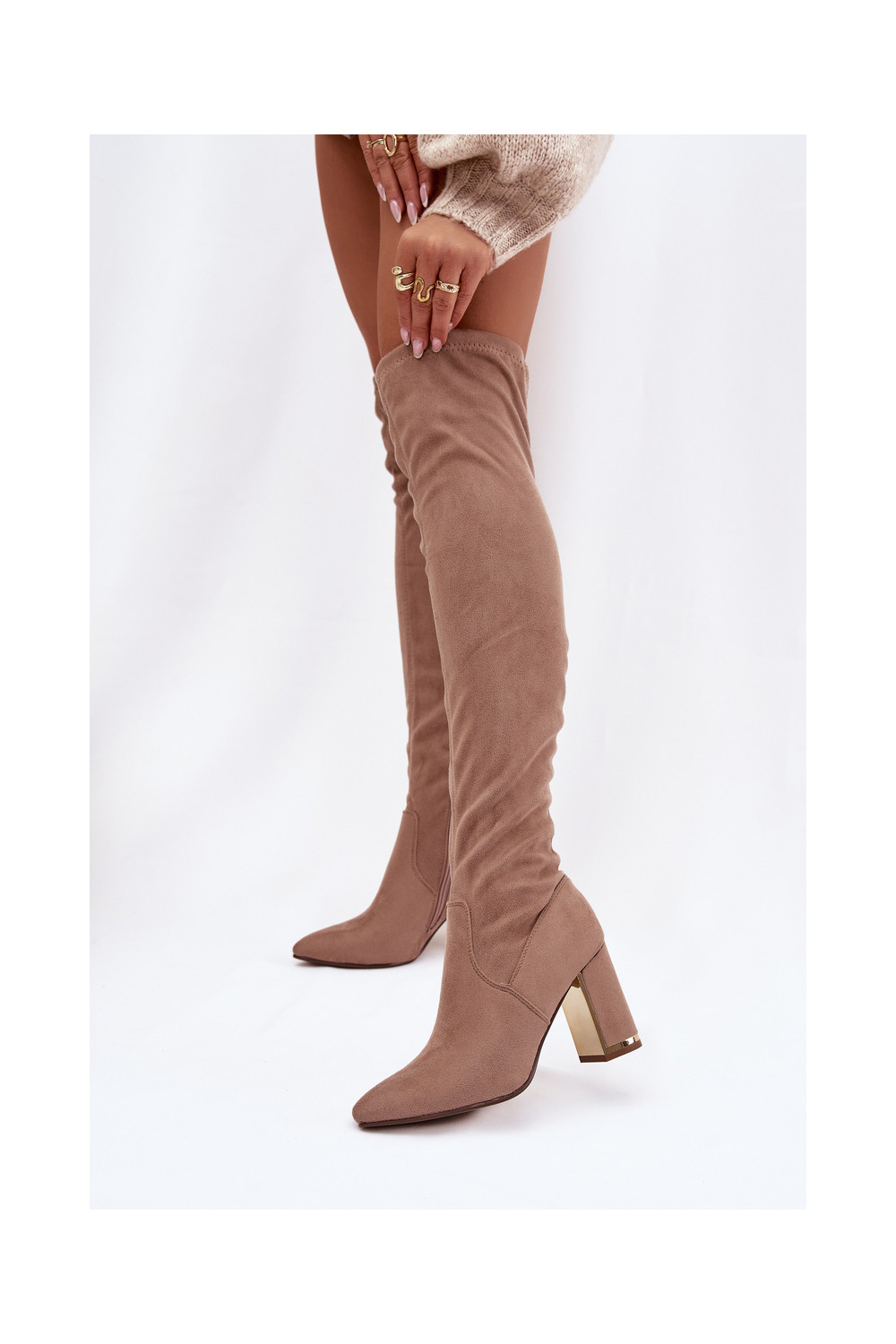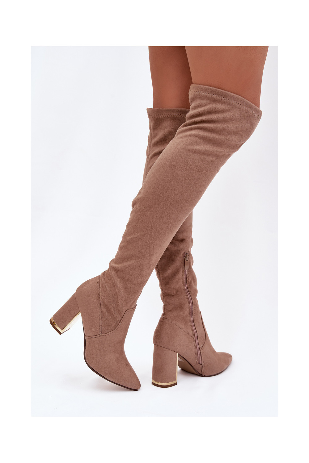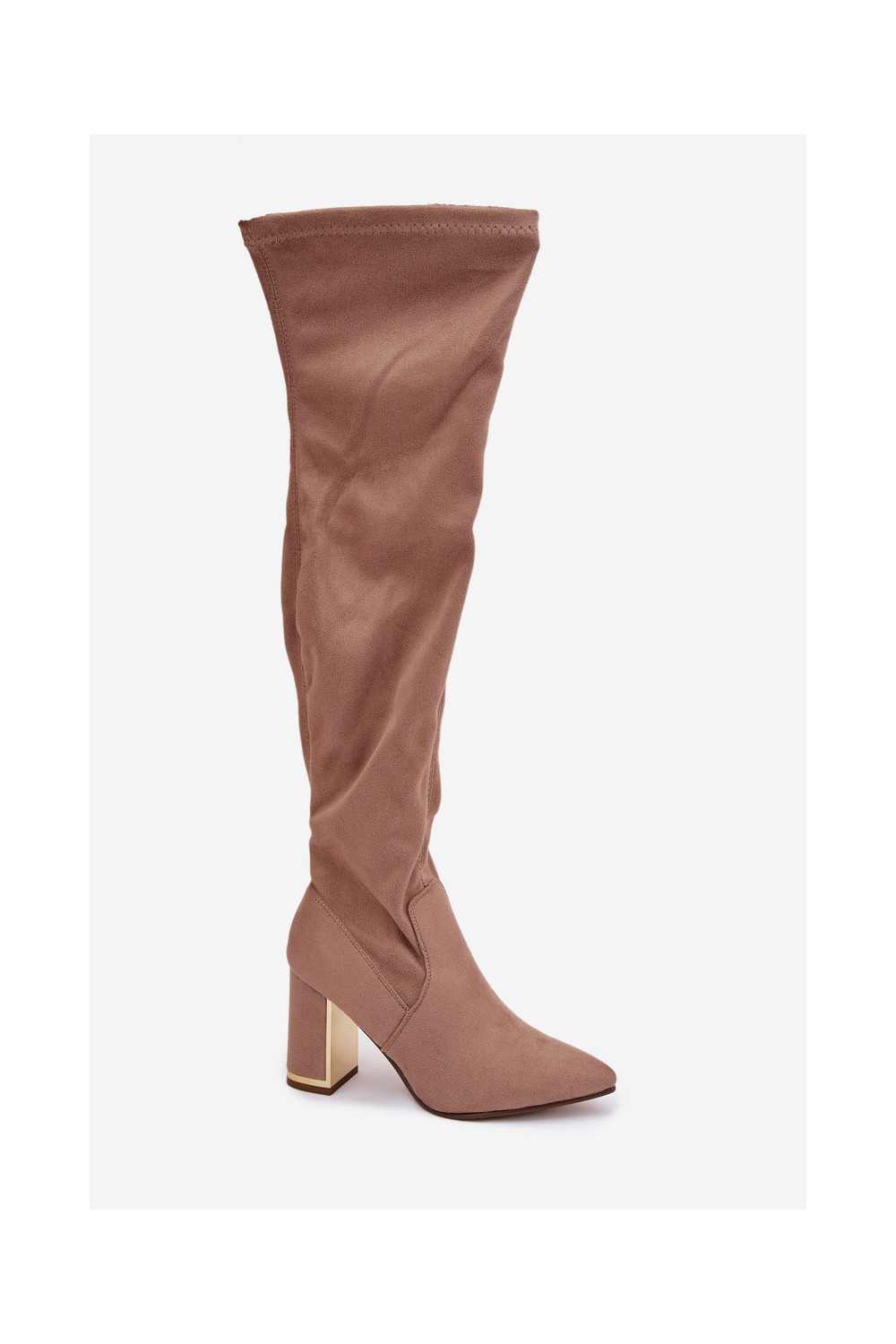 naiste pika säärega saapad Eco Suedeosissee Põlve jaoks kõrge jämeda kontsaga beeži värvi Thamine