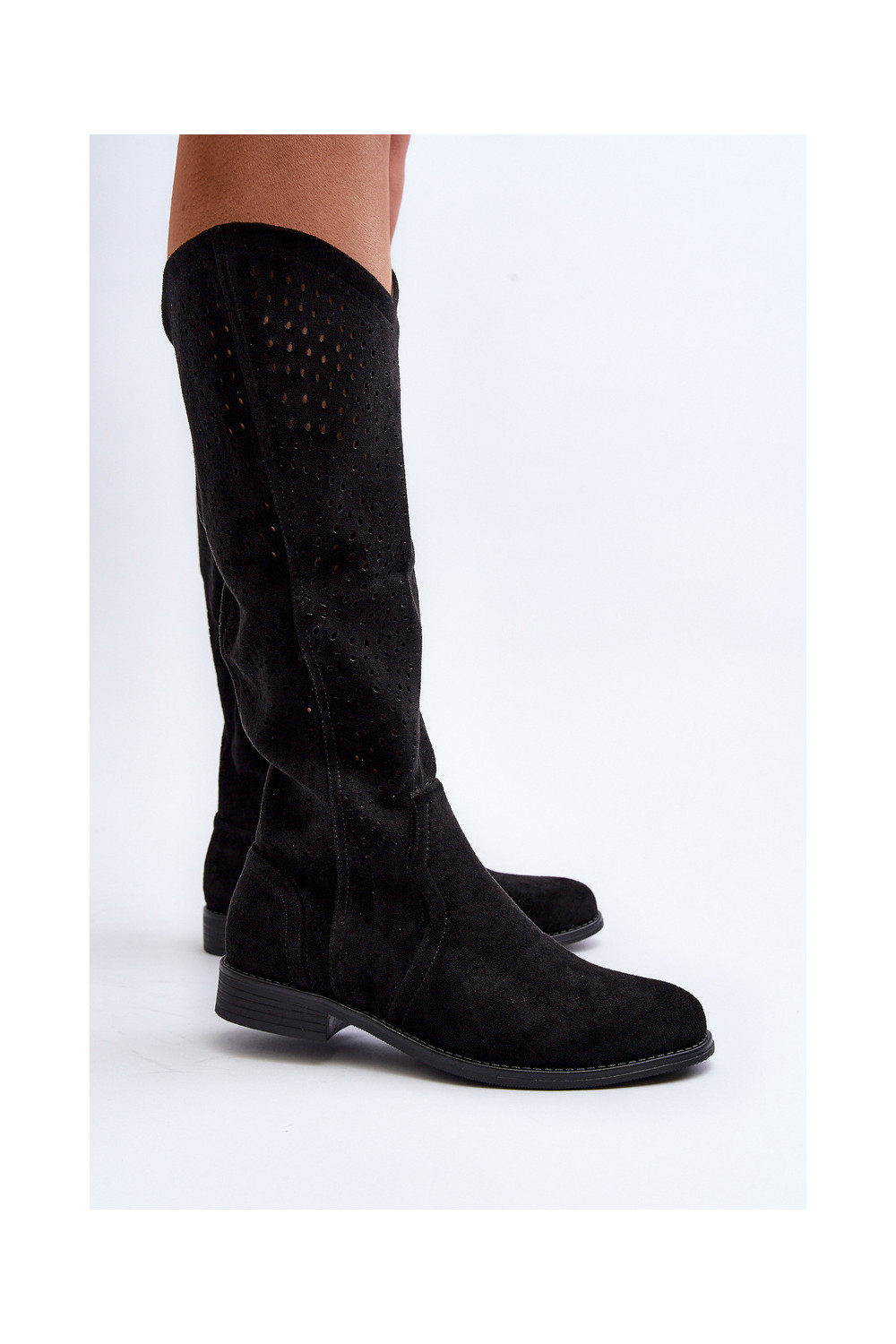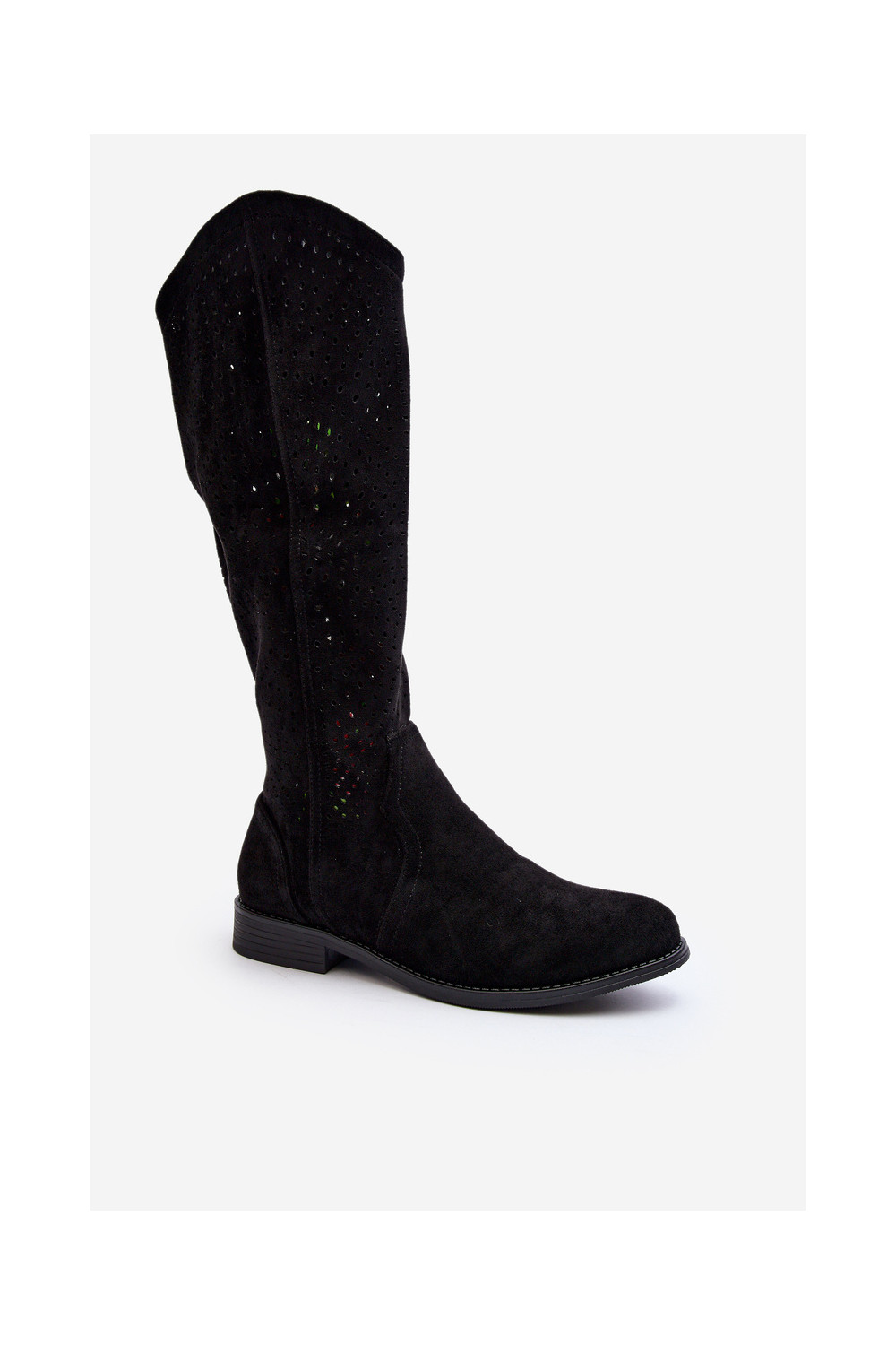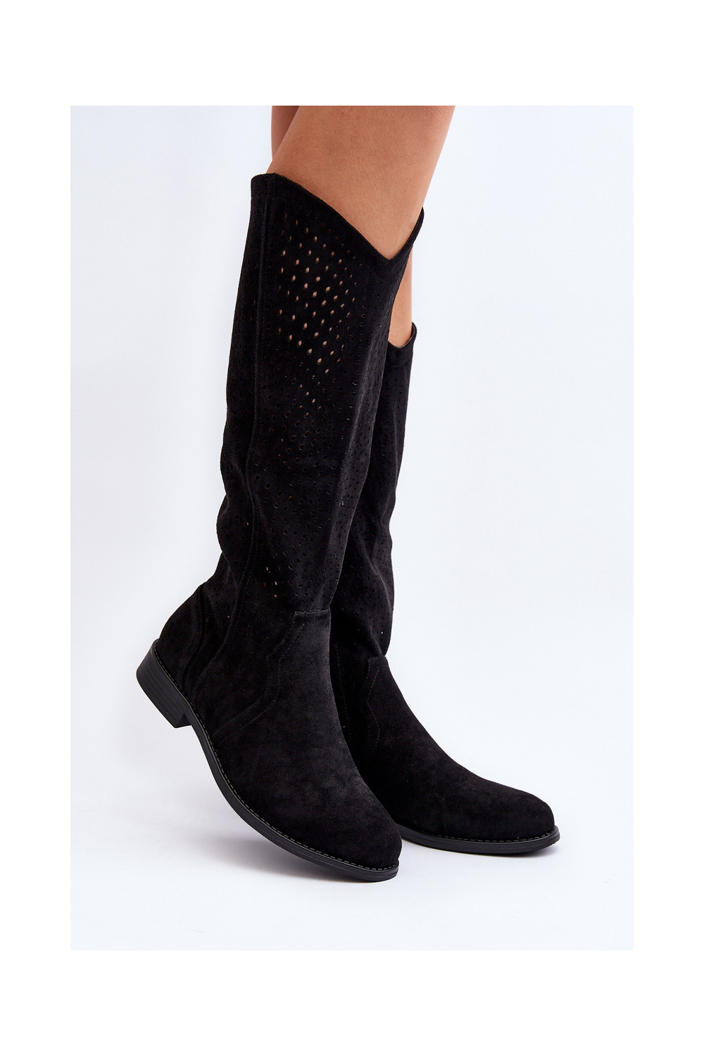 S.Barski HY66-150 Black Cut-Out Boots with Flat Heel
