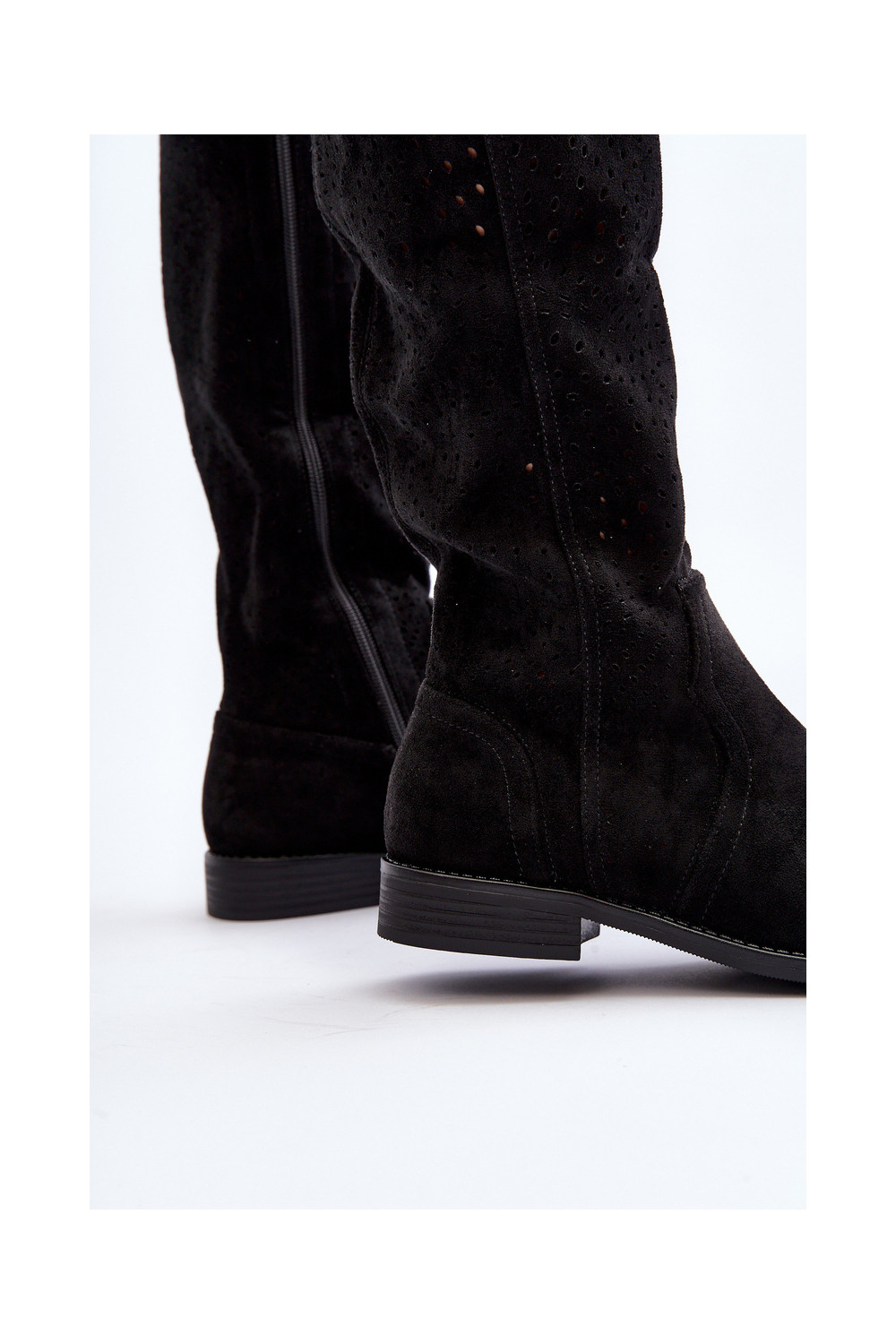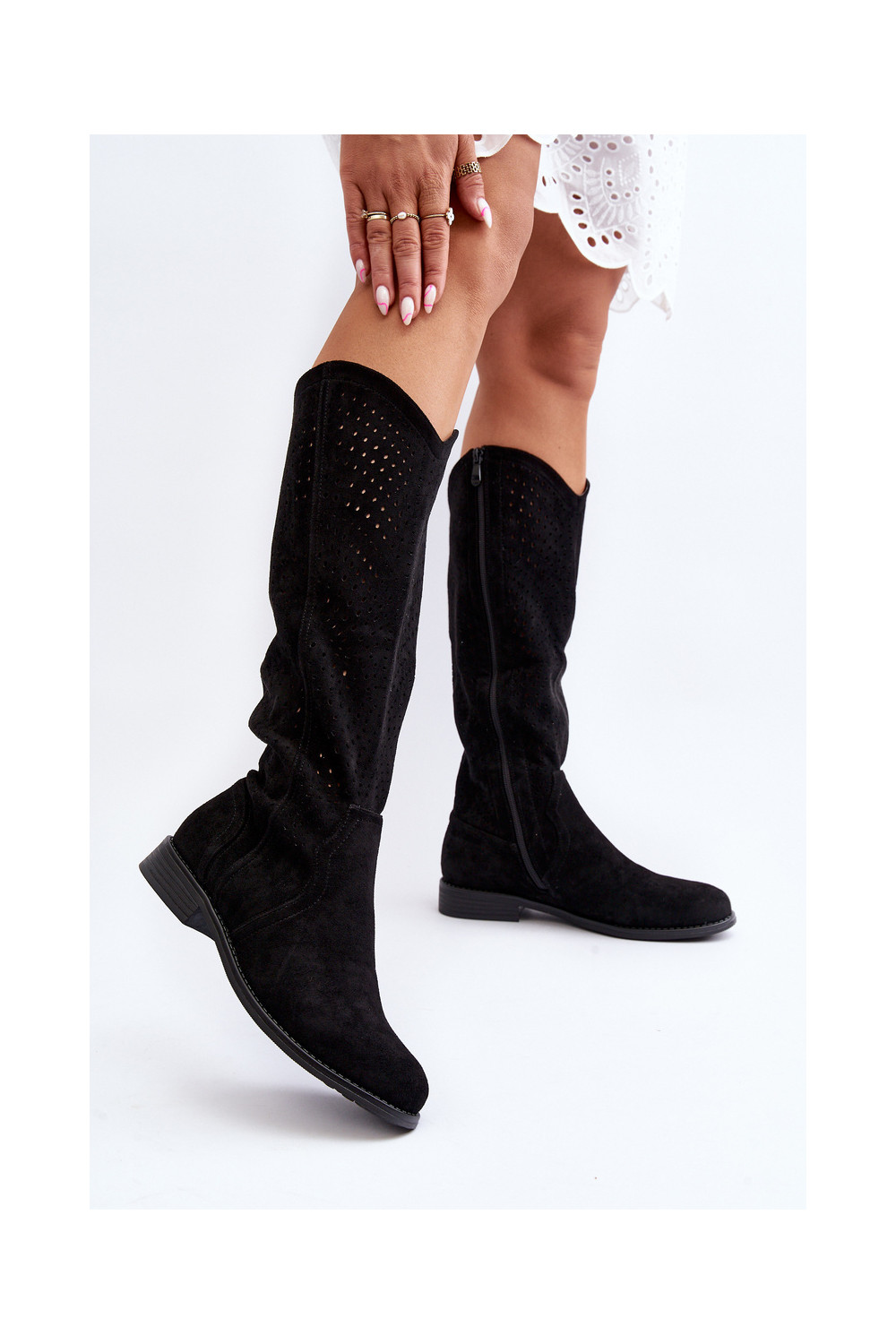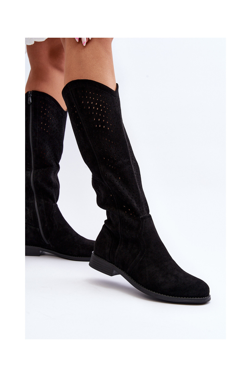 S.Barski HY66-150 Black Cut-Out Boots with Flat Heel