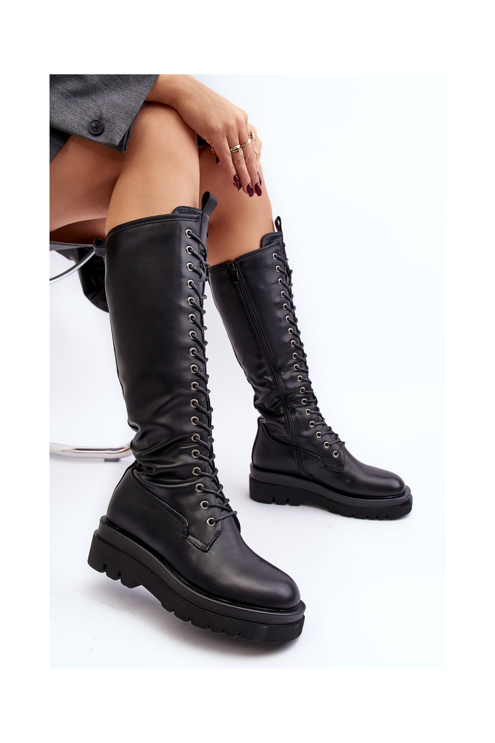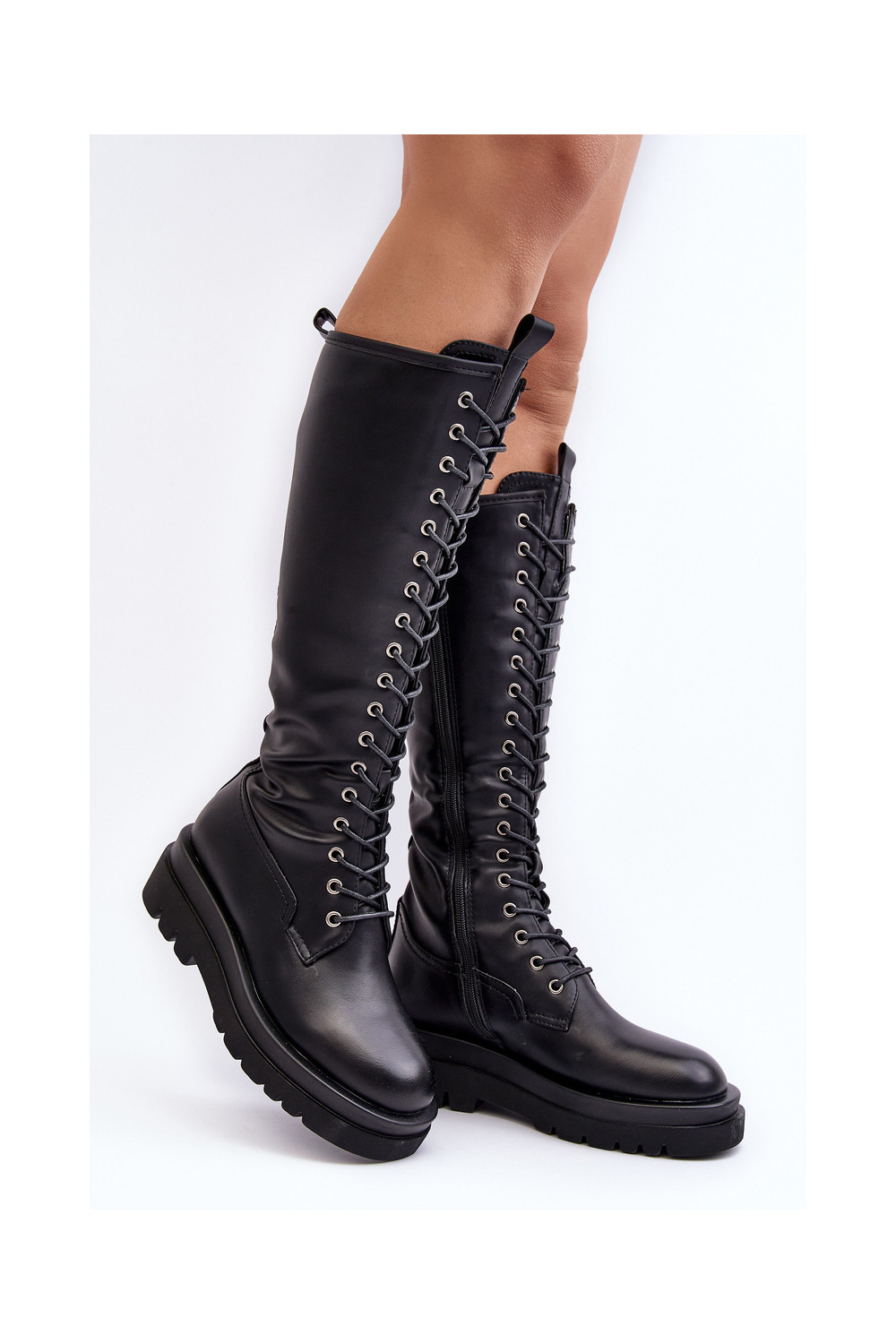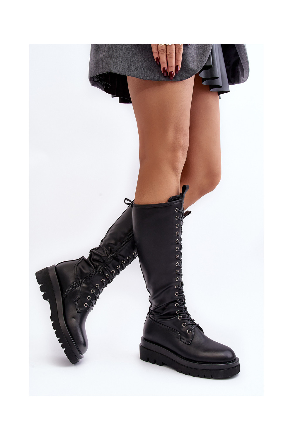 Musta värviga soojustatud naiste pikad saapad kuni põlveni "Lliclies"