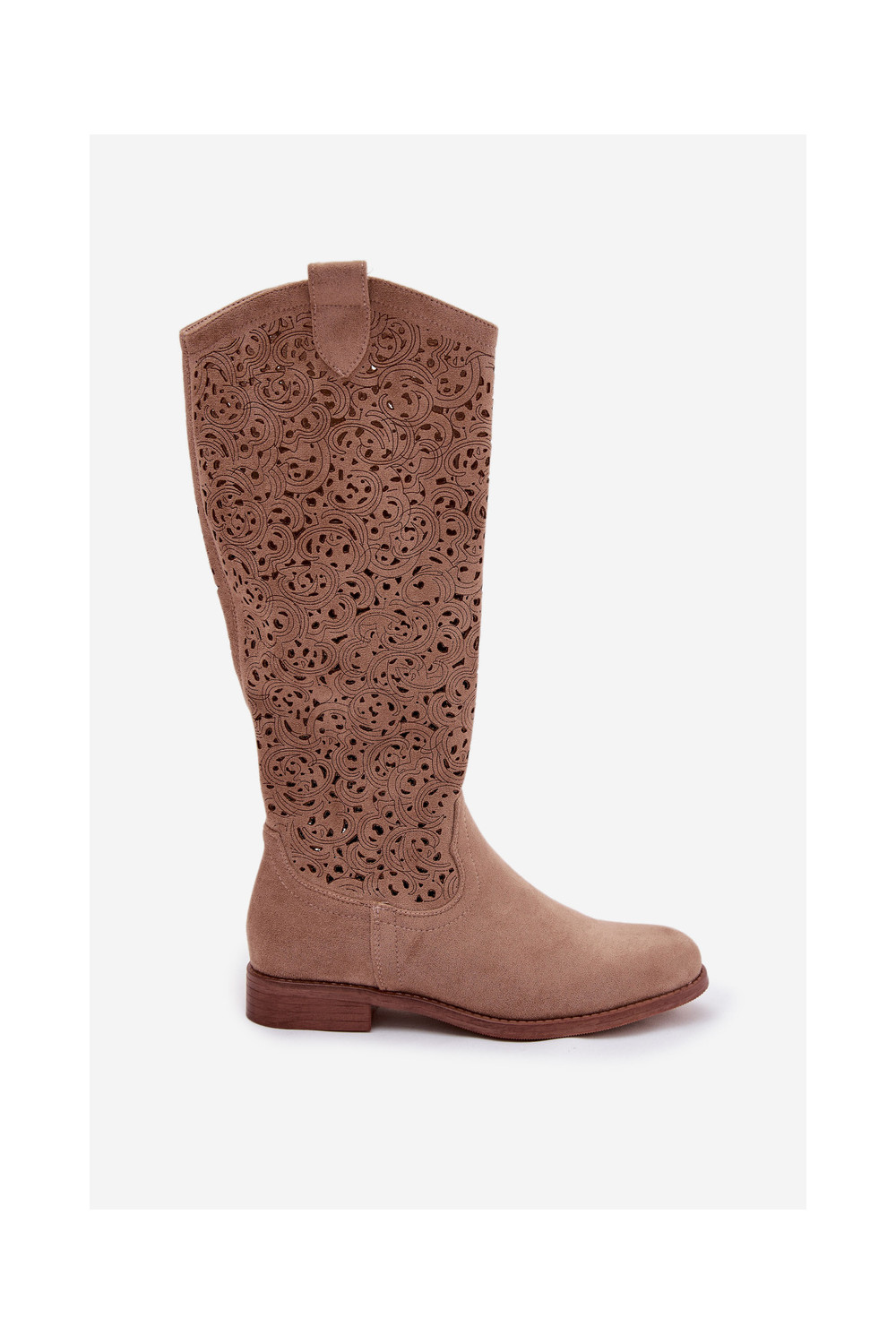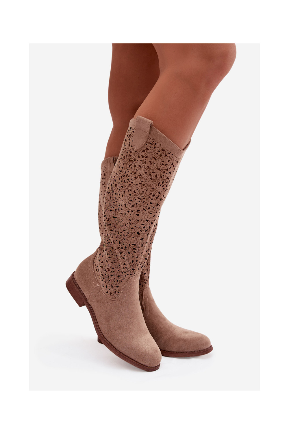 Ažuurne naiste pika säärega saapad laiade nööridega S.Barski HY61-8023 beeži värvi