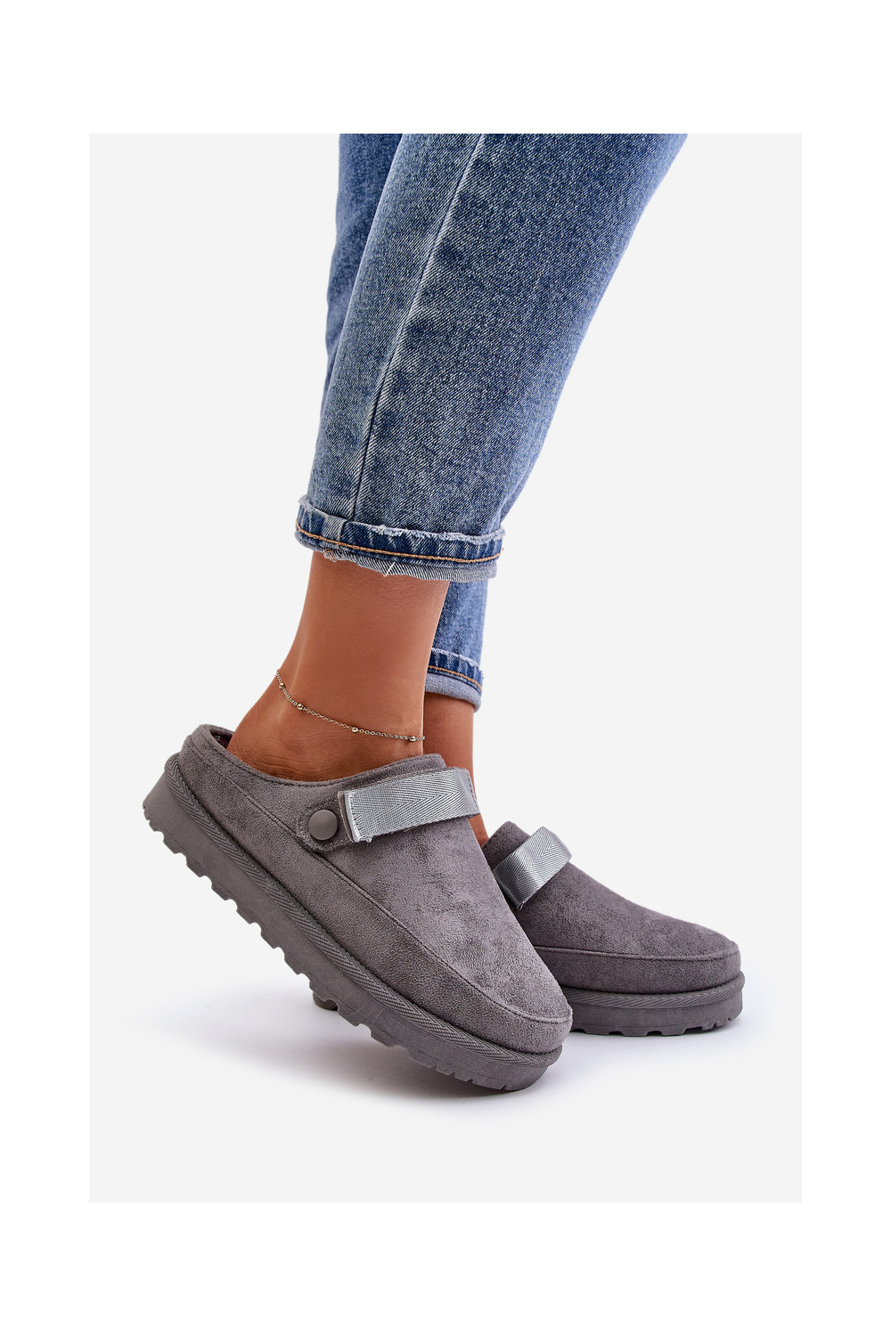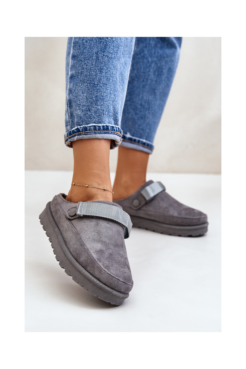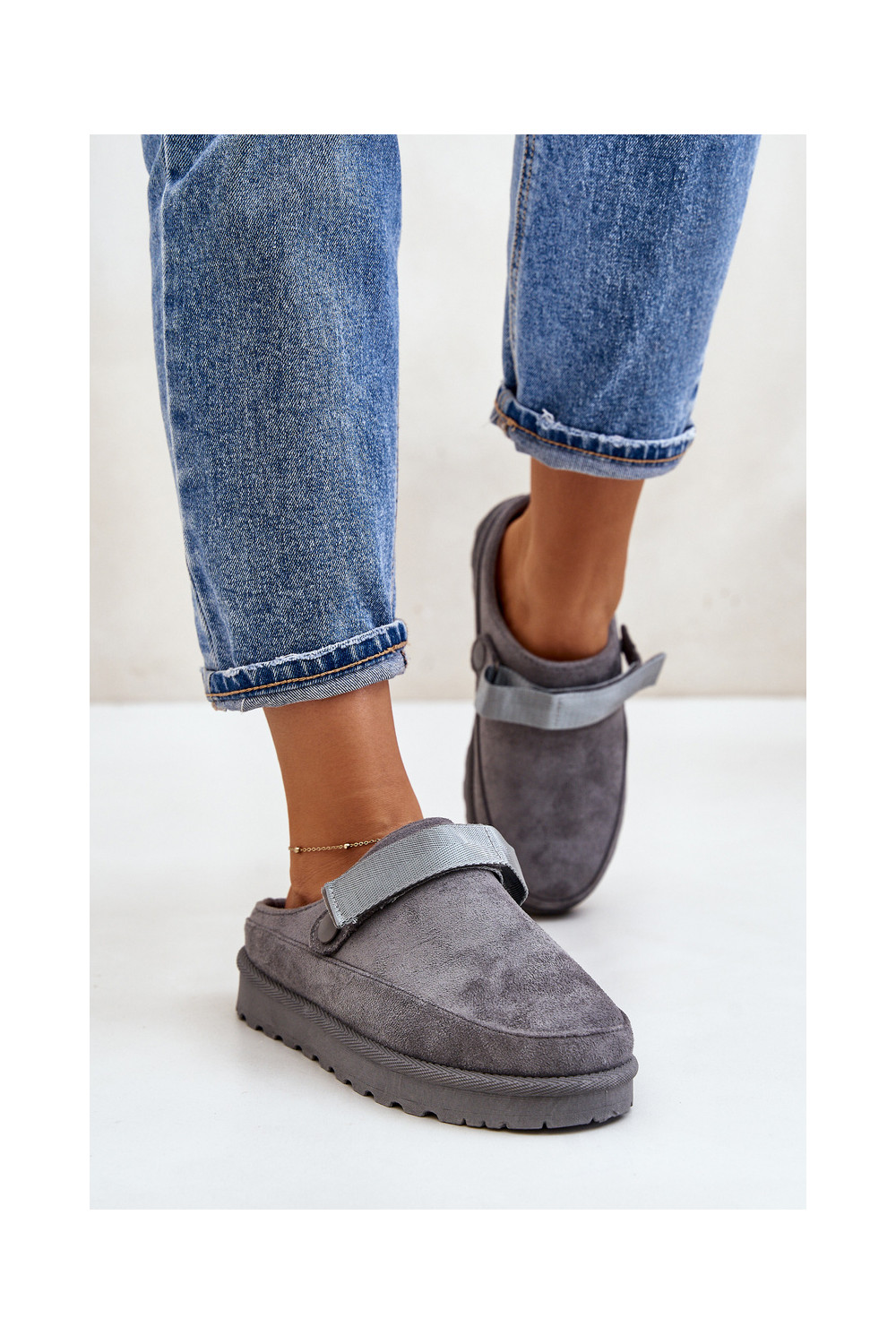 Naiste soojad sussid karusnaha sisemusega ja platvormiga, hall, Azida