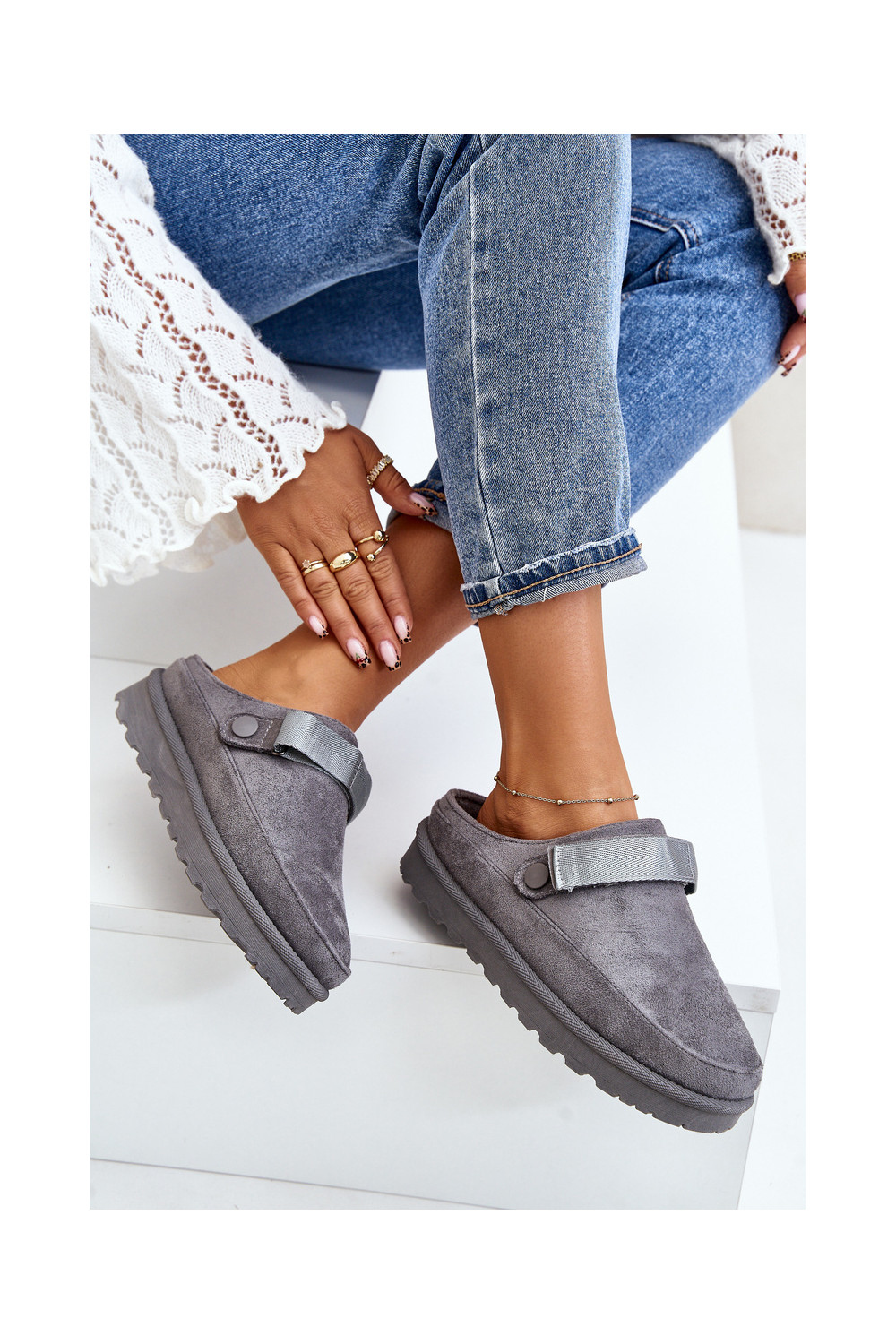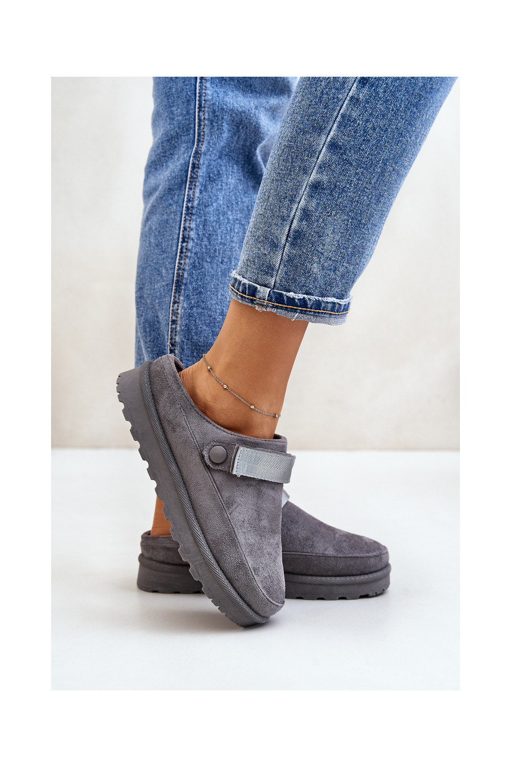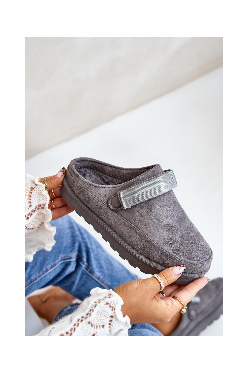Naiste soojad sussid karusnaha sisemusega ja platvormiga, hall, Azida