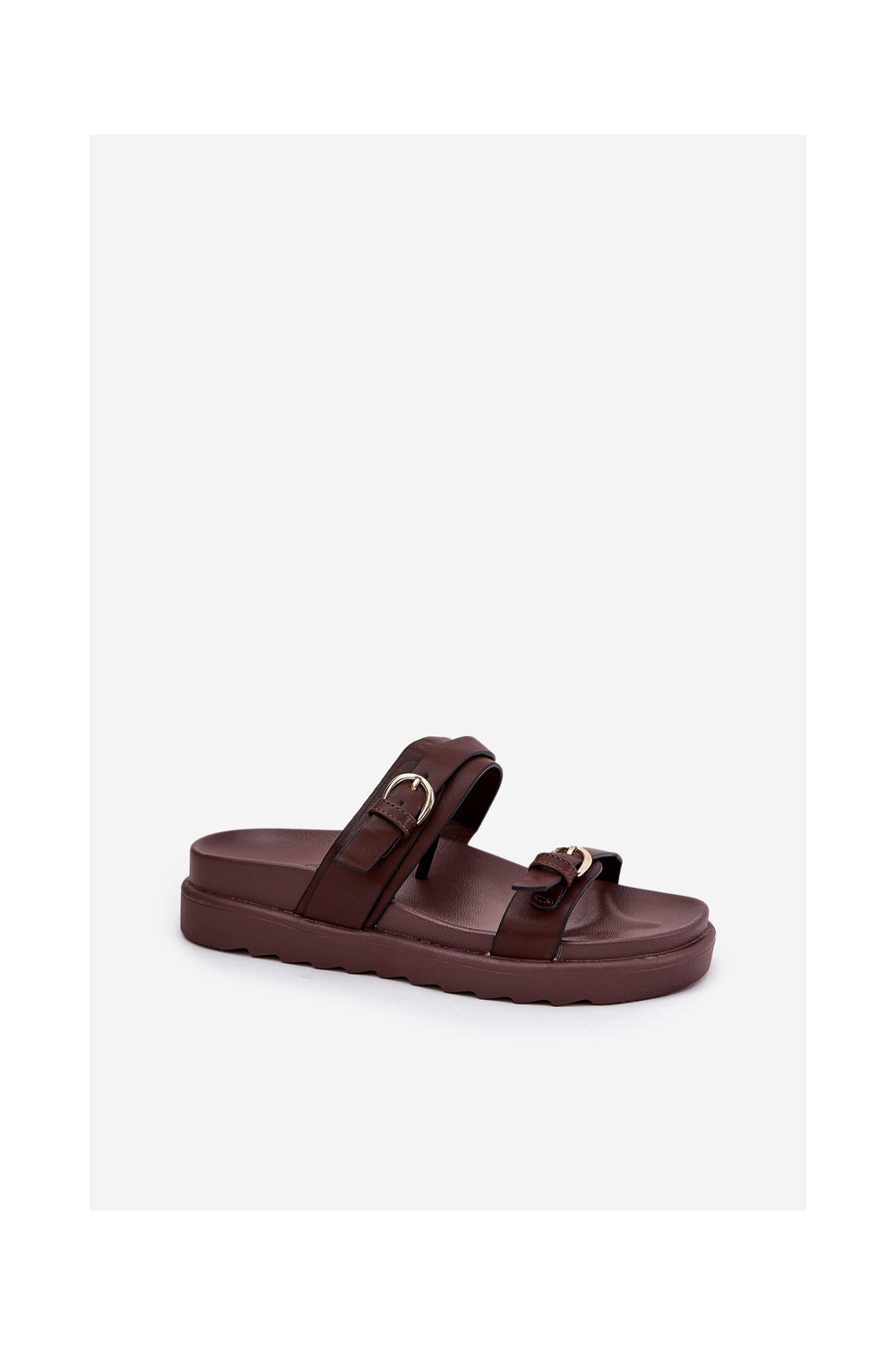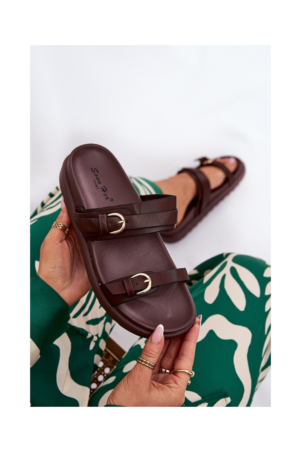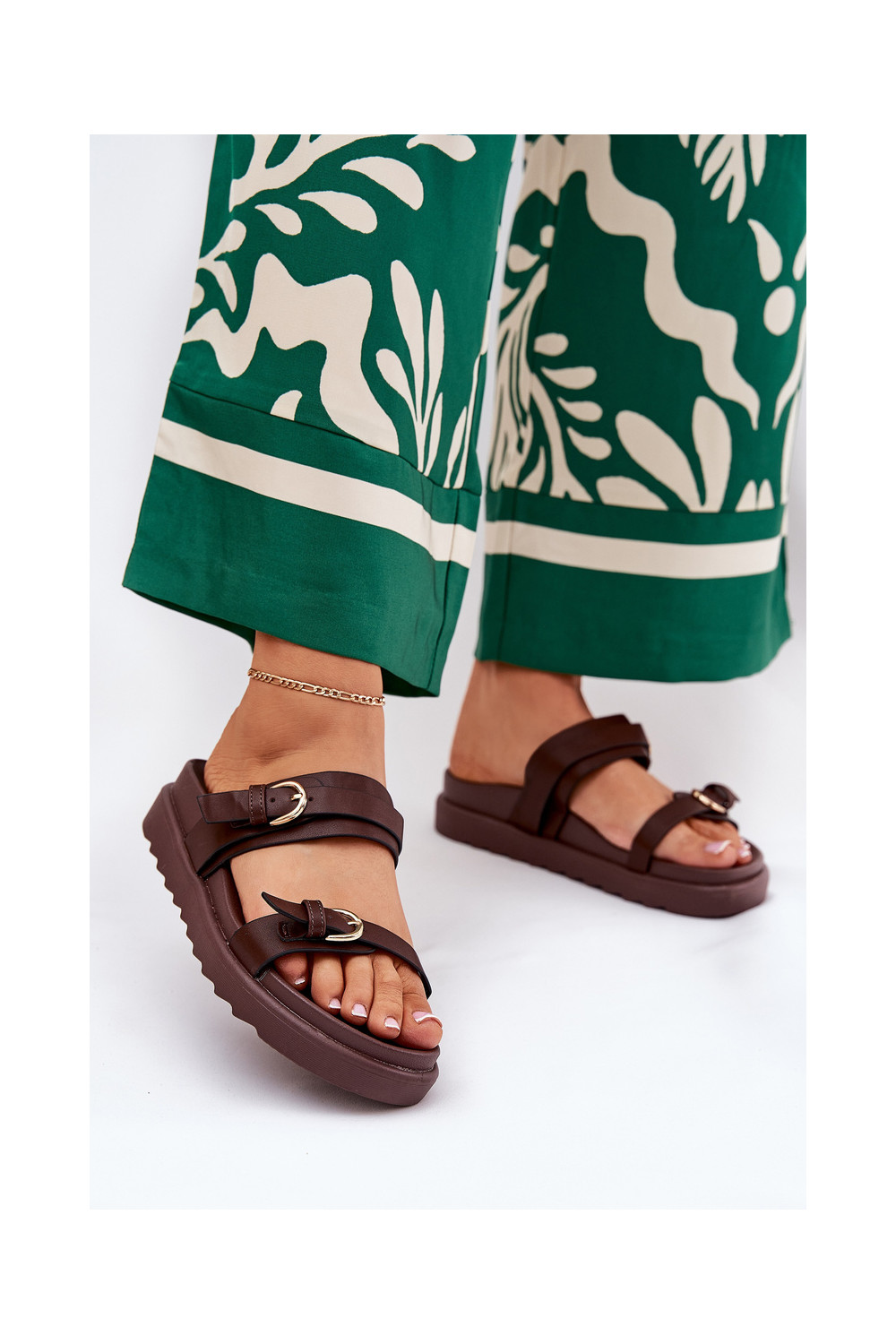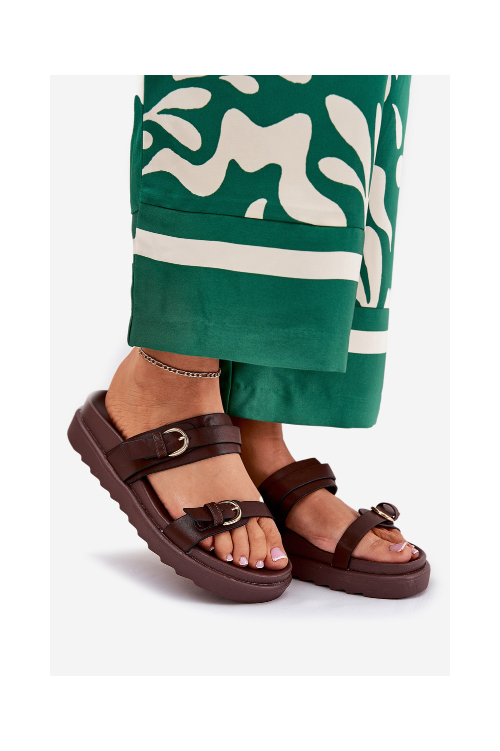 Women's Platform Sandals With Golden Buckles Brown Wernone