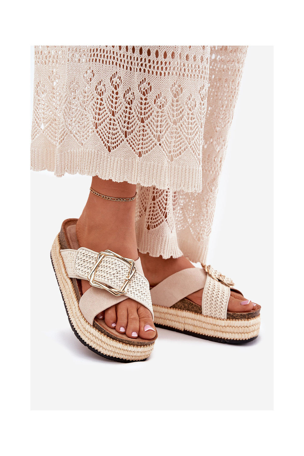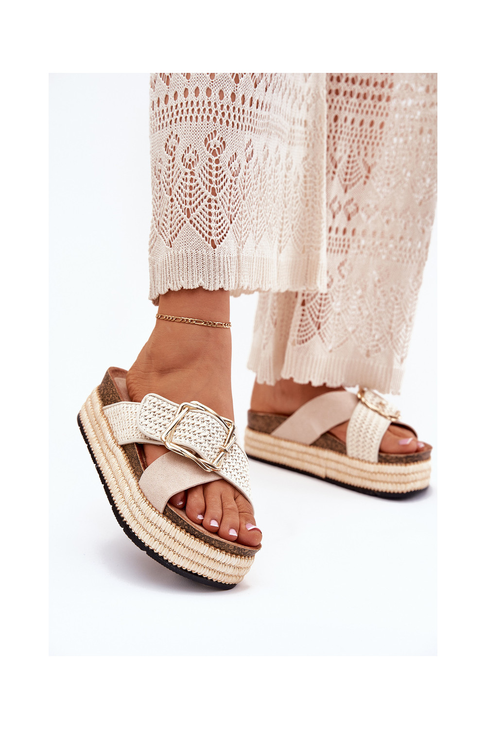 naiste plätud platvormiga Koos punutisega I Złotą neetide ja pandlaga beeži värvi Filazzia