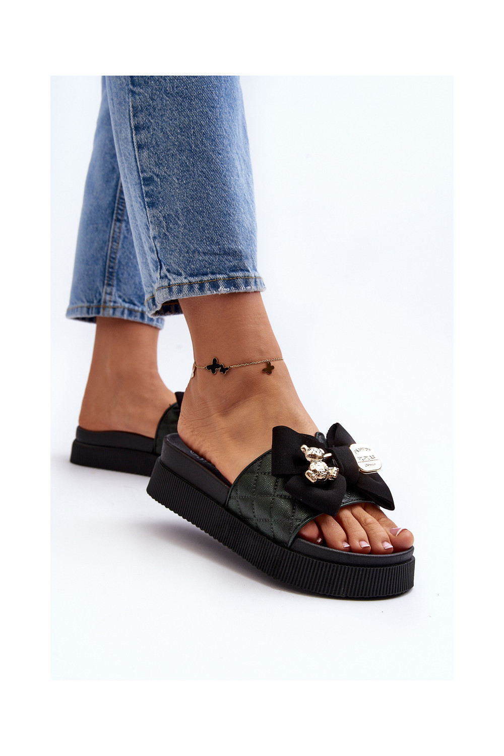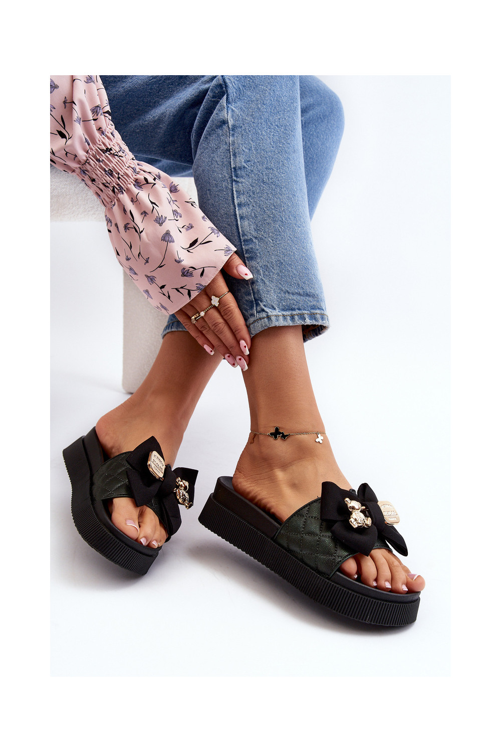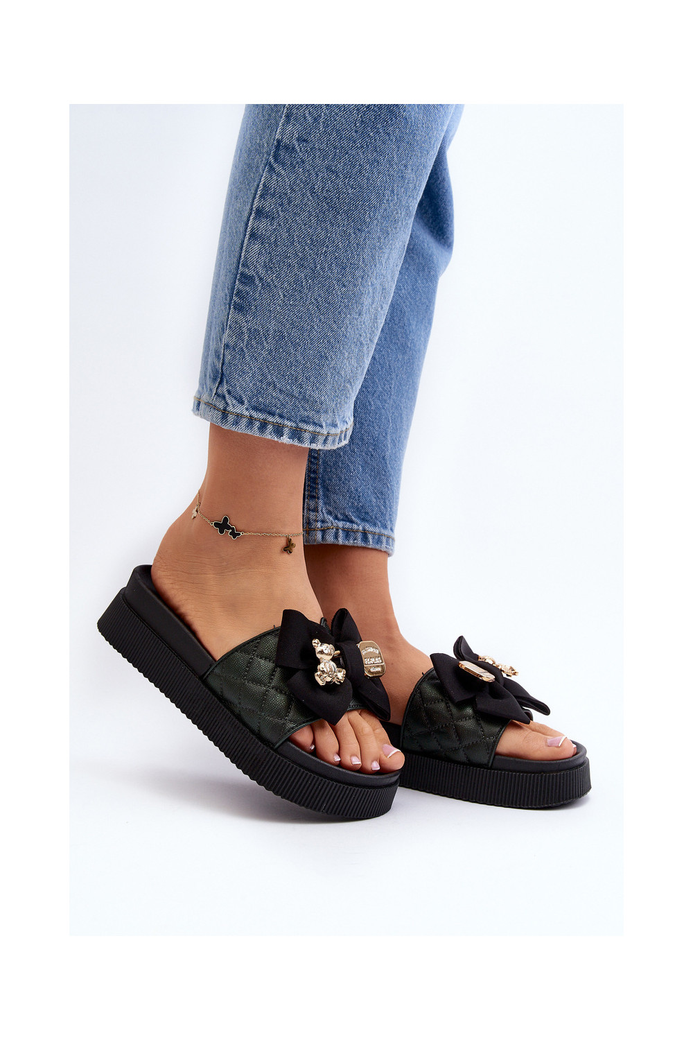 Musta värviga naiste sussid paelte ja karude motiiviga "Katterina"