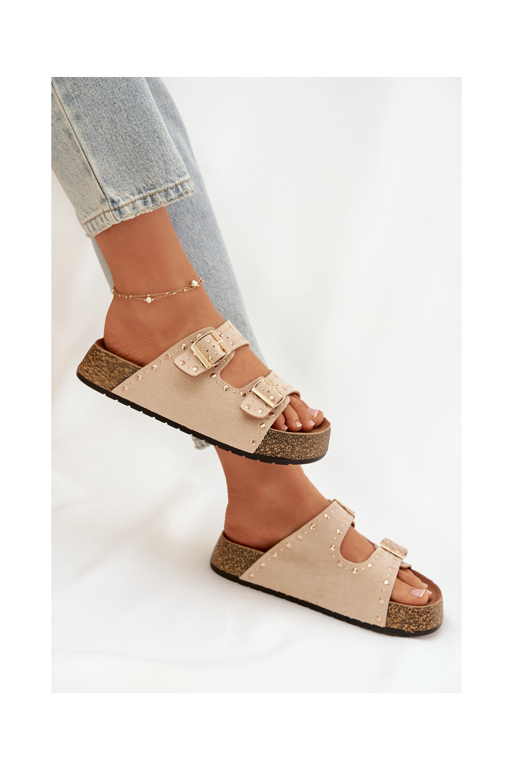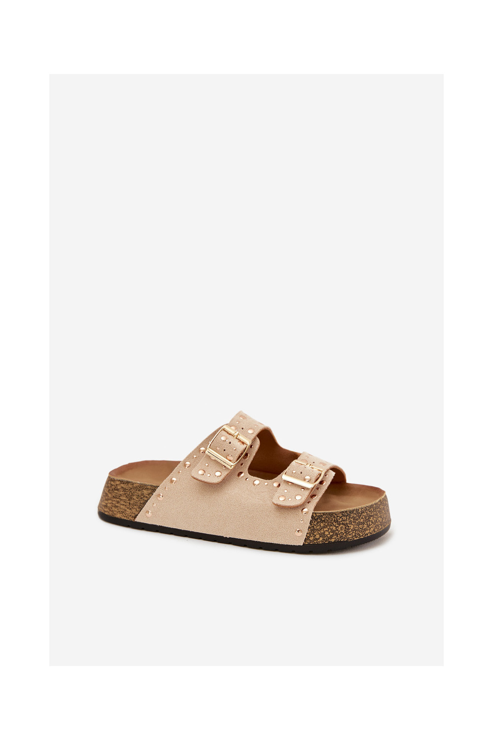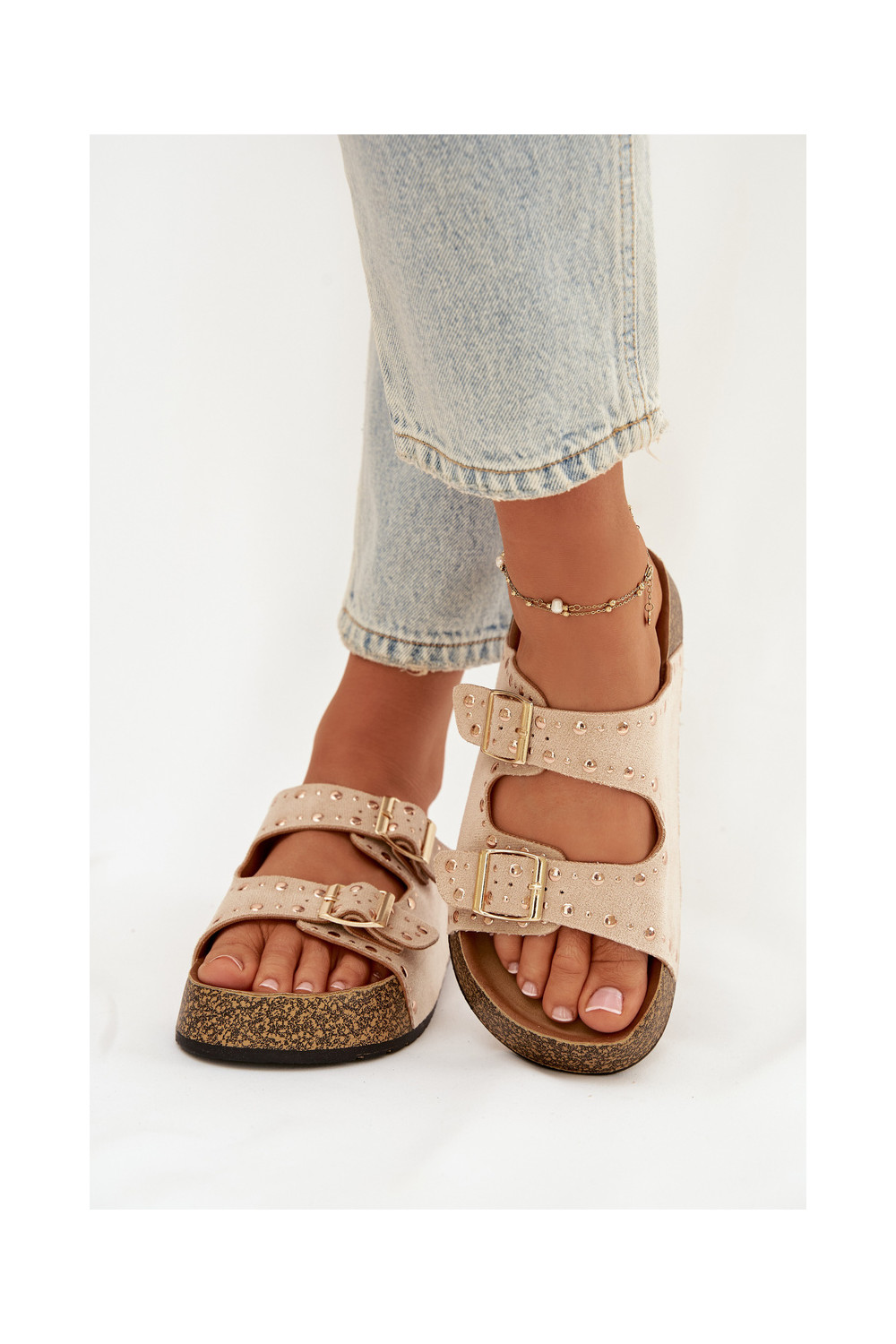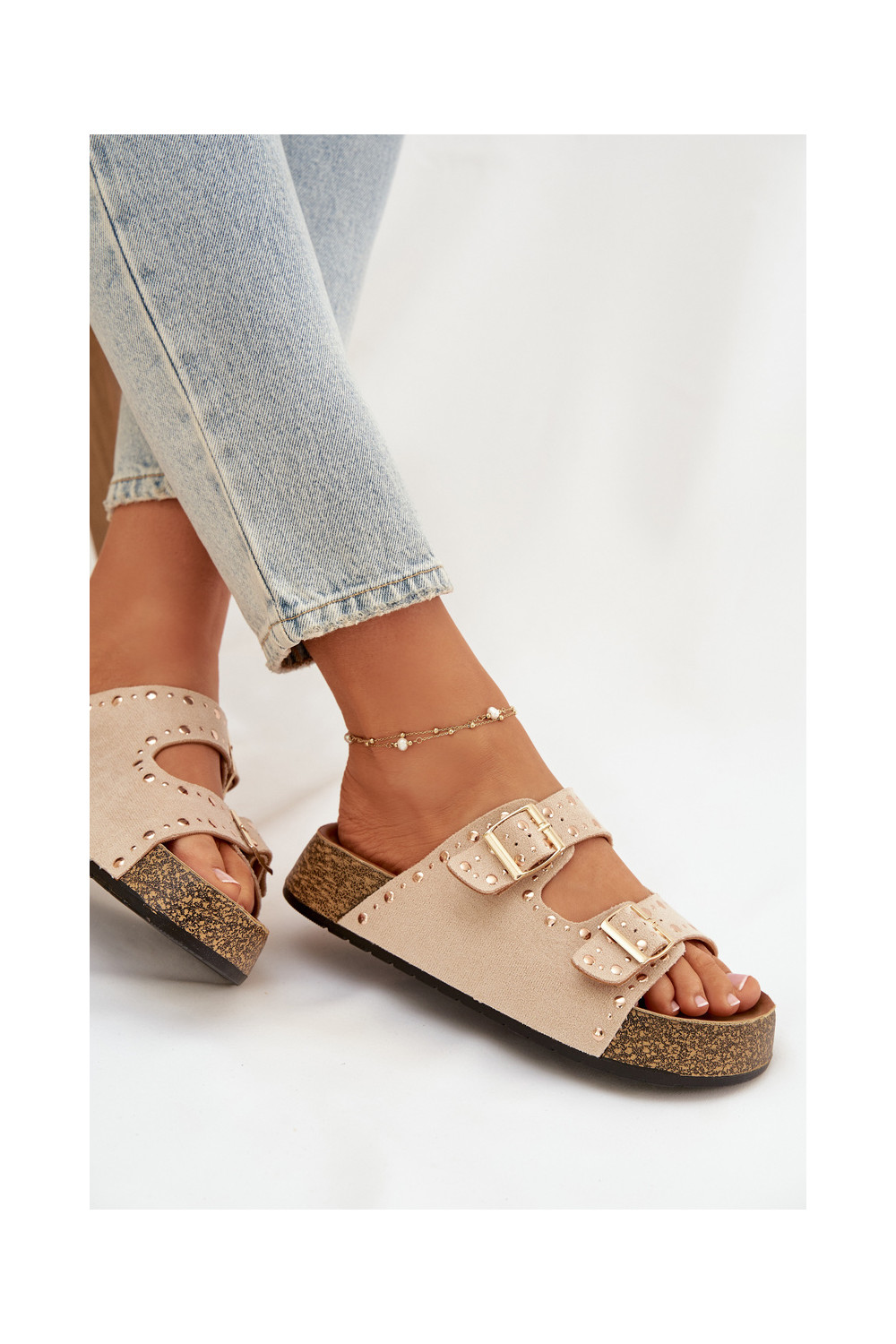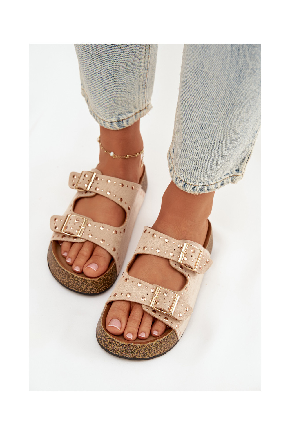 Women's Slippers With Gold Clamps And Buttons Jasnobeżowe Tervina