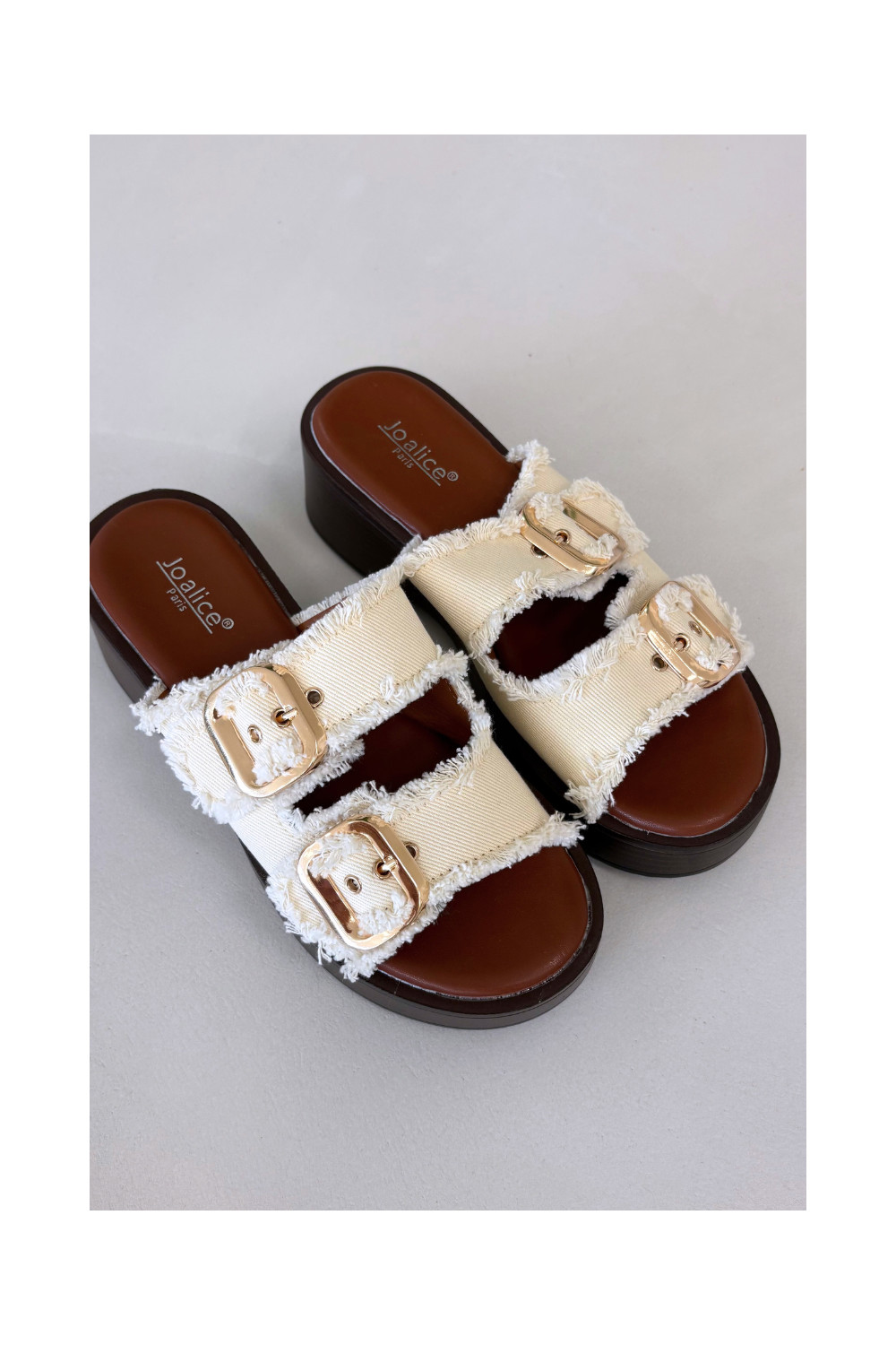 Naistel platvormiga sussid kuldse värvi elevandiluuvärvi pandlatega Renelisse