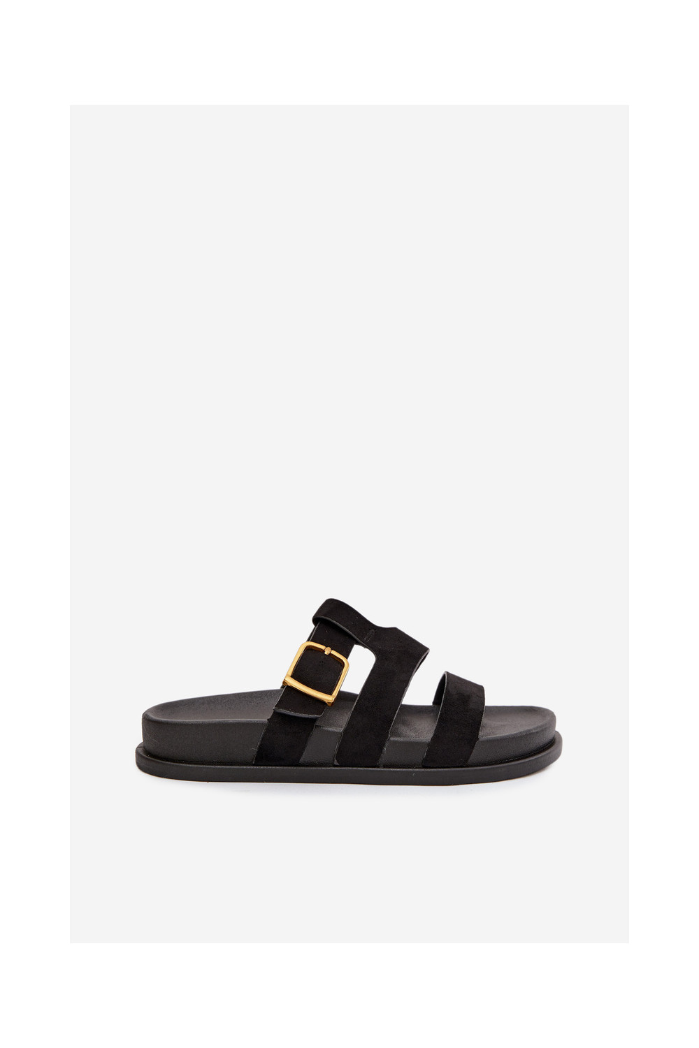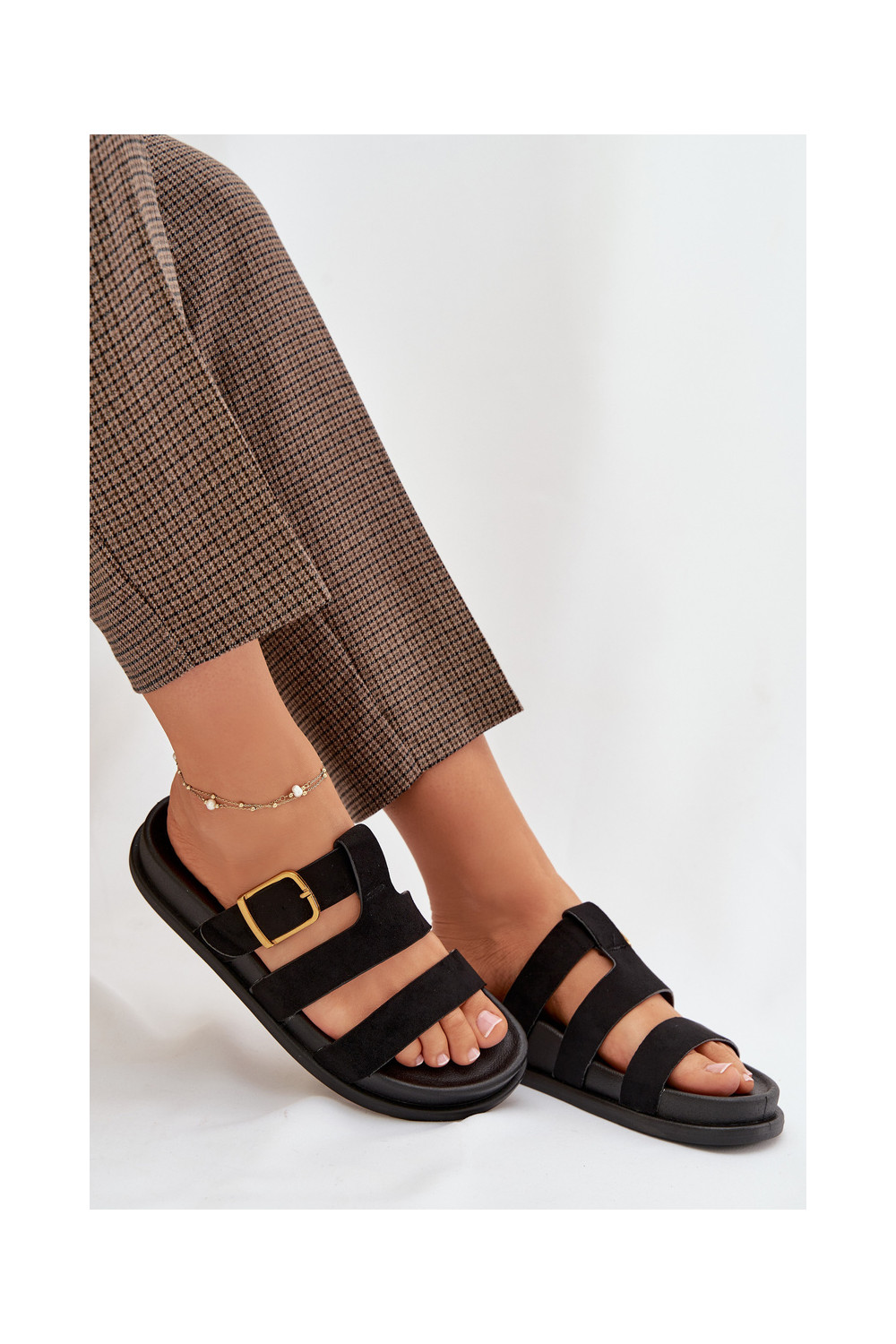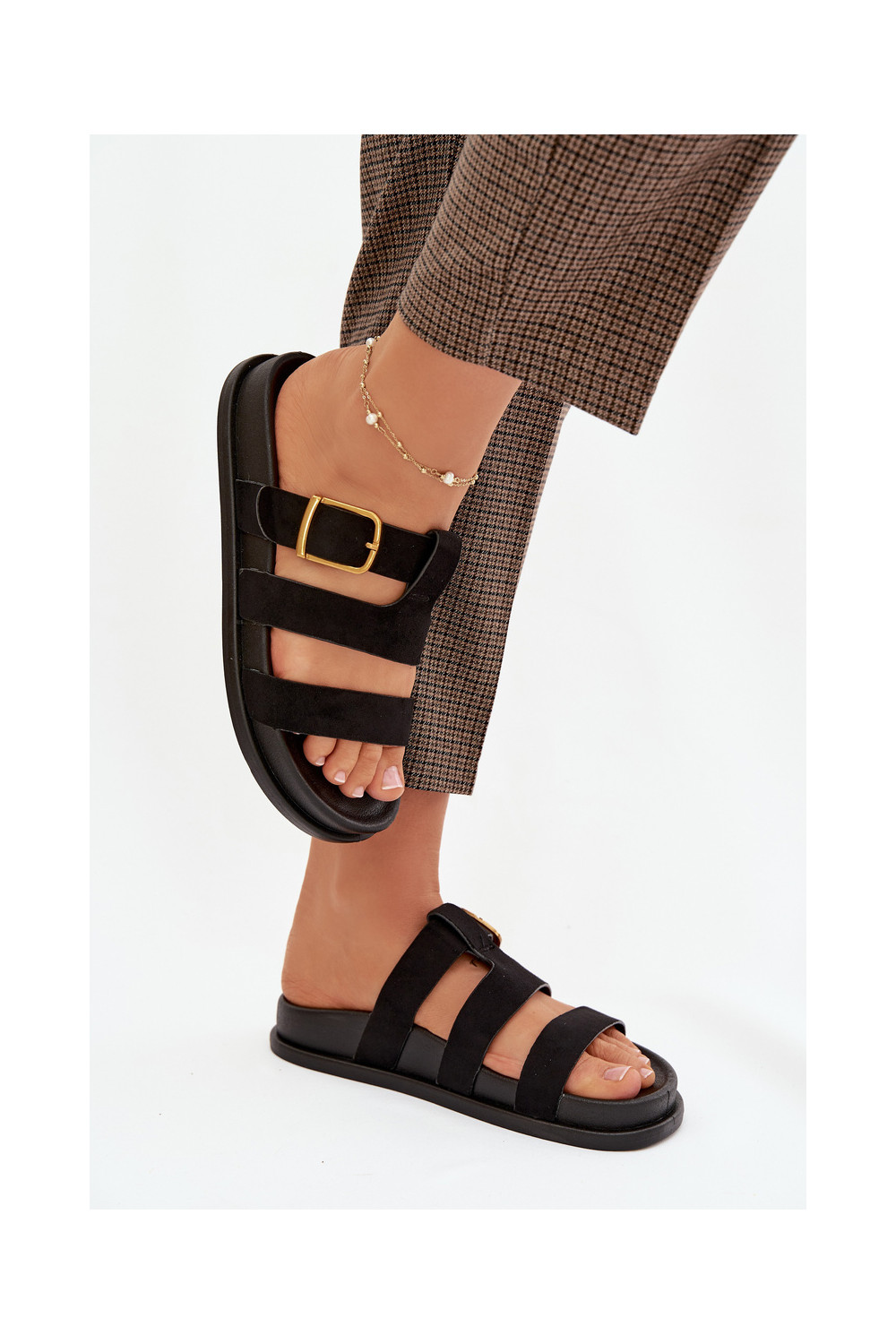 Naistel rihmadega sussid kuldse värvi musta värvi pandlatega Ulirissa
