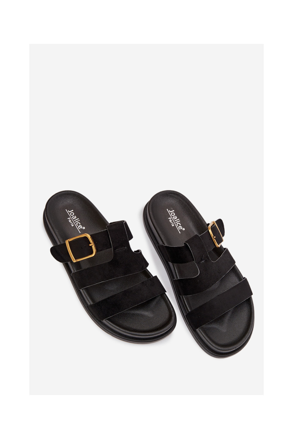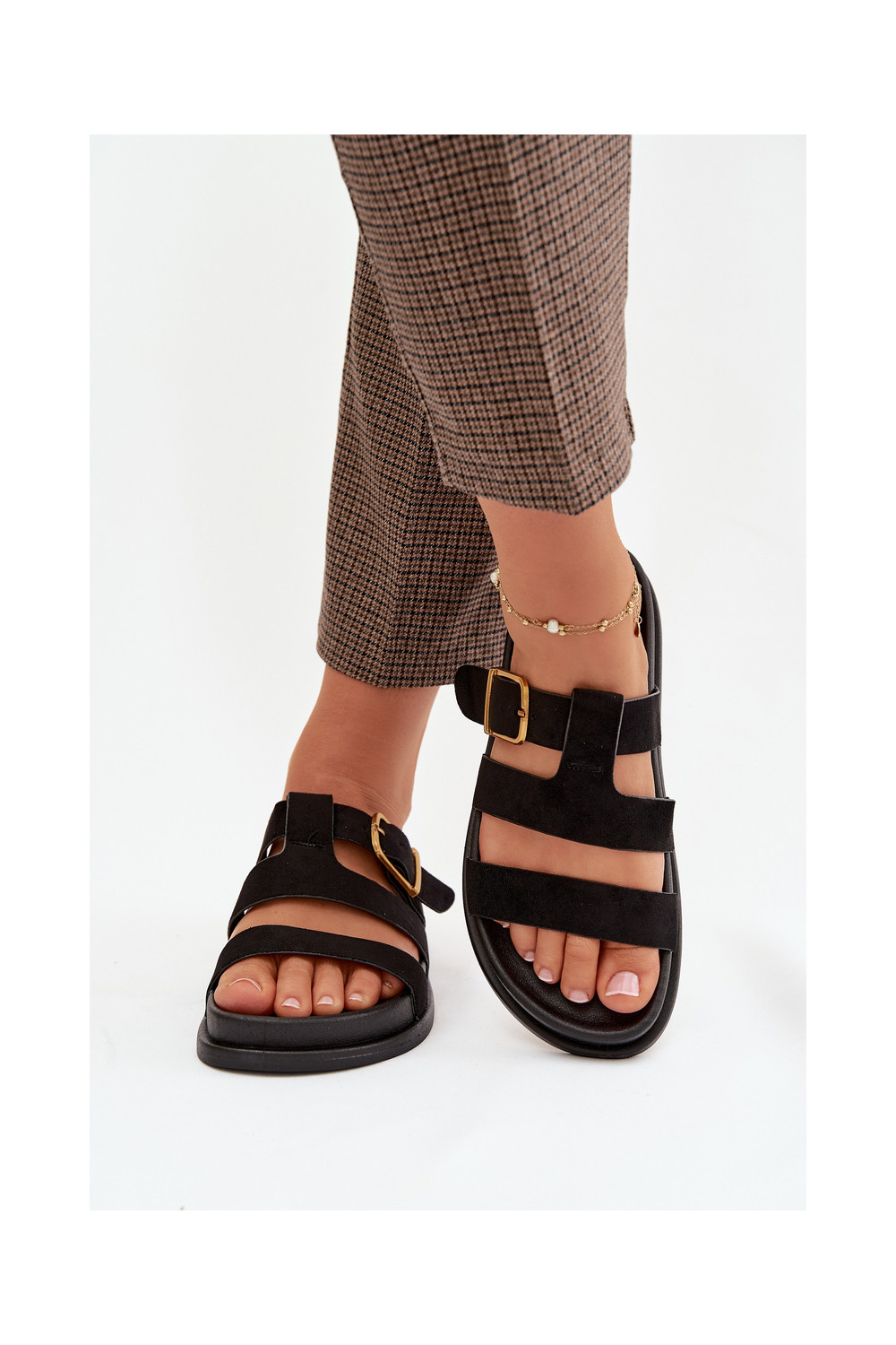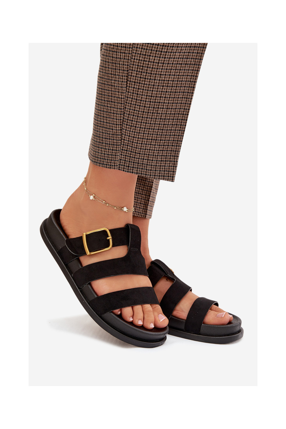 Naistel rihmadega sussid kuldse värvi musta värvi pandlatega Ulirissa