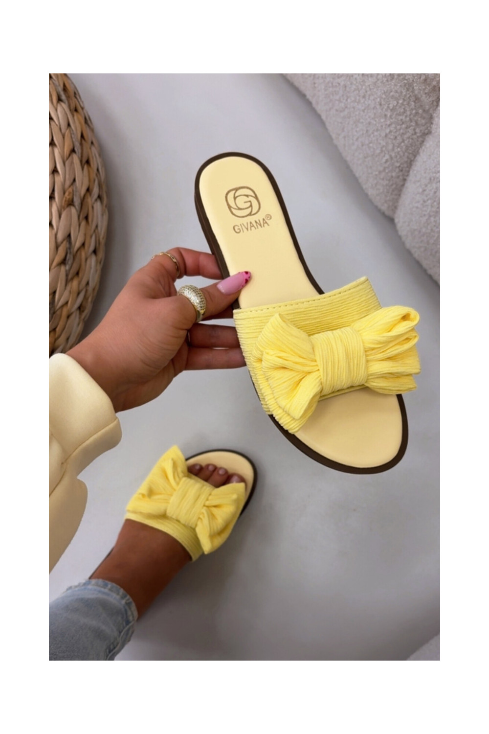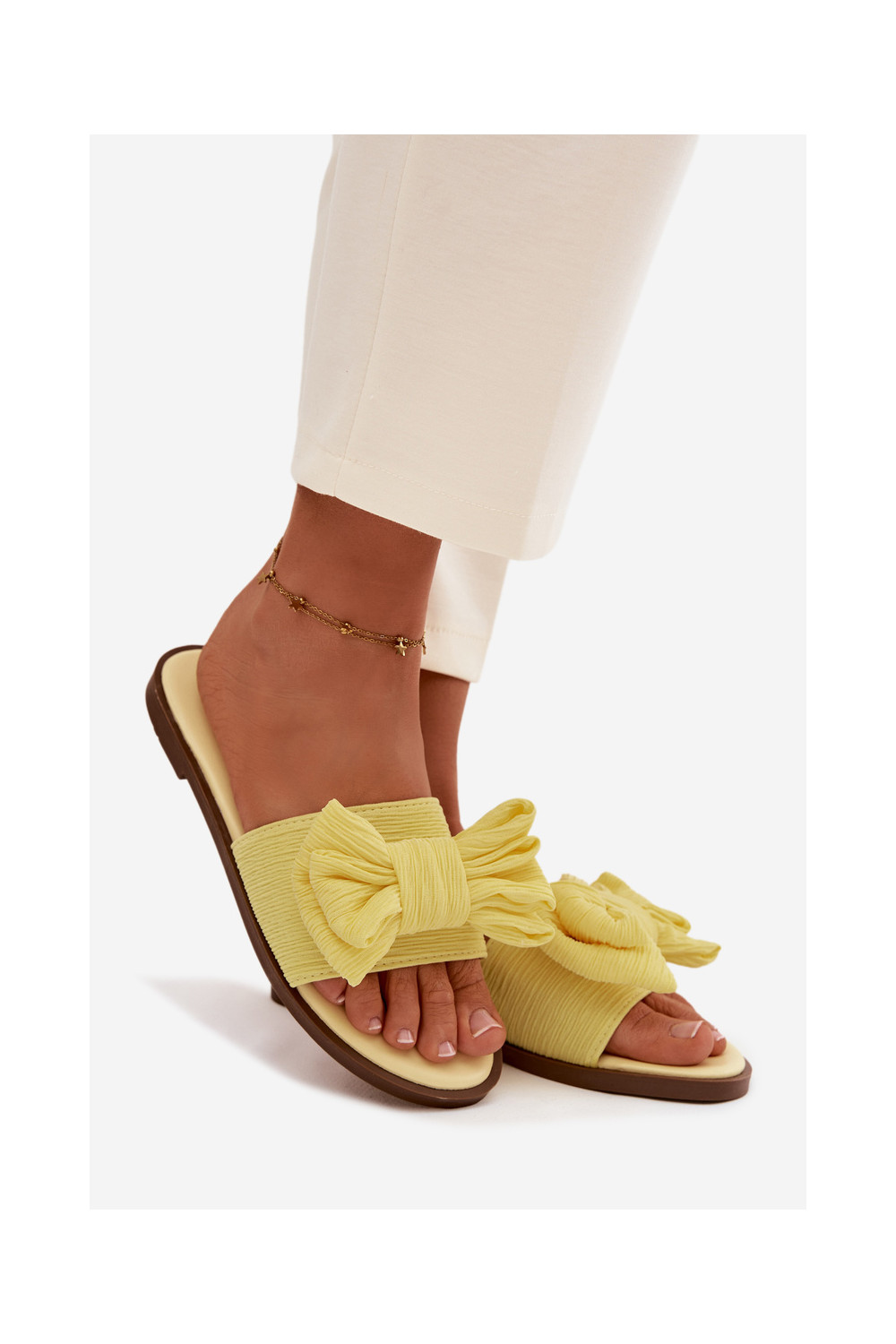 Naiste sussid laia kontsaga ja lipsudega kollase värvi Amivelle