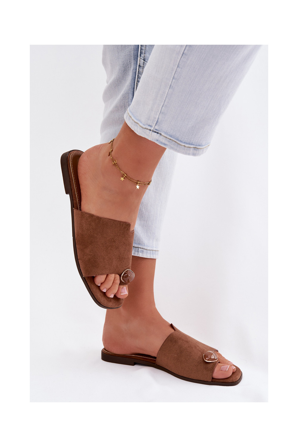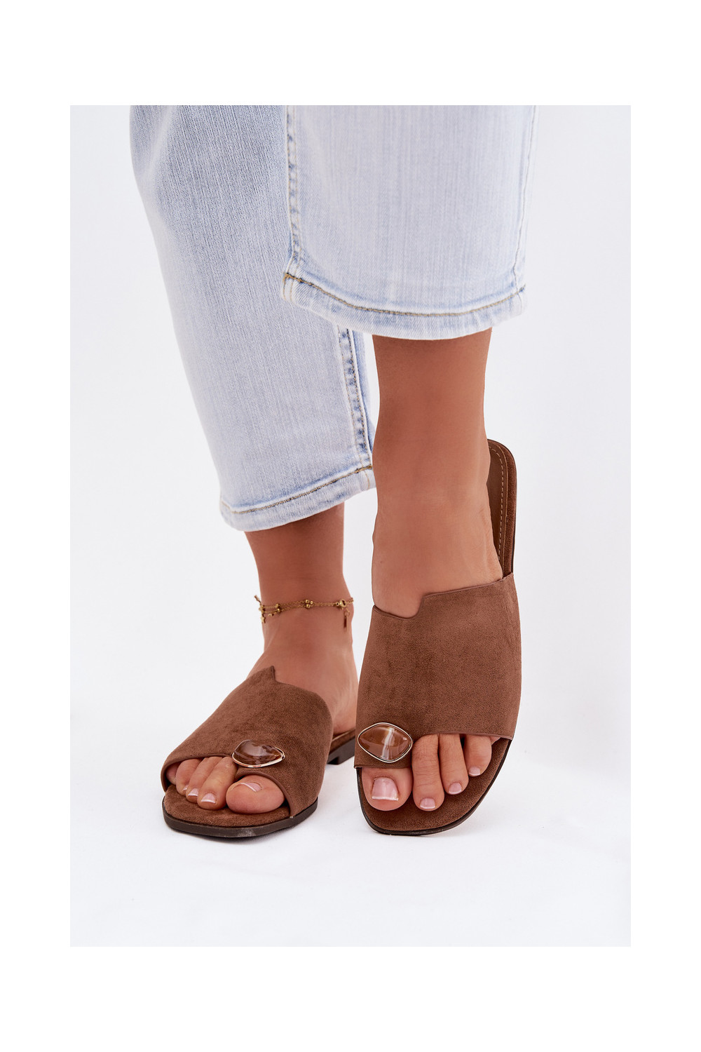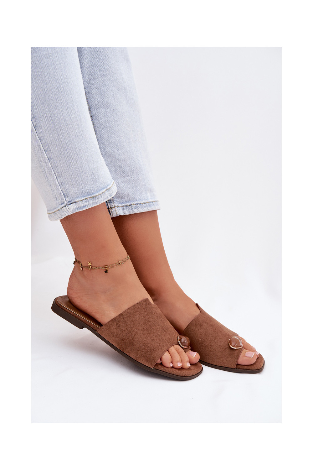 Naistel madalad sussid kunstsuede kaunistustega, pruuni värvi, Selavine