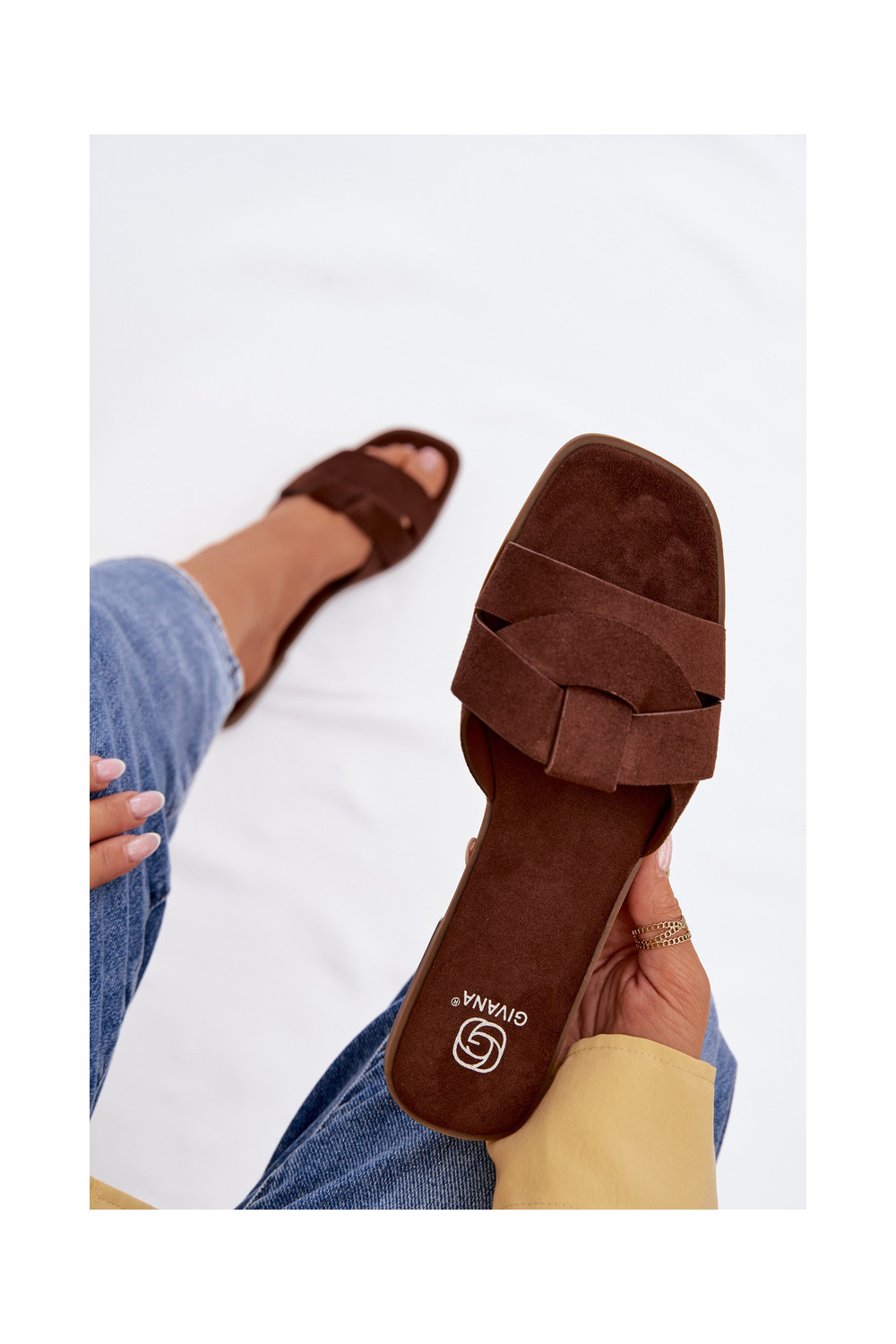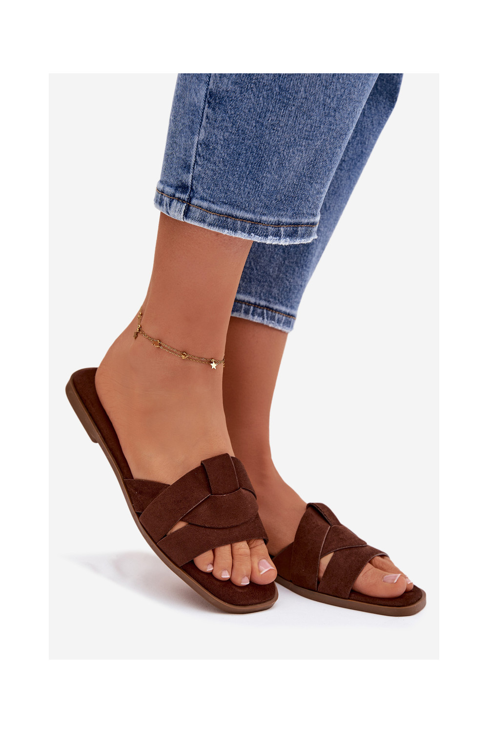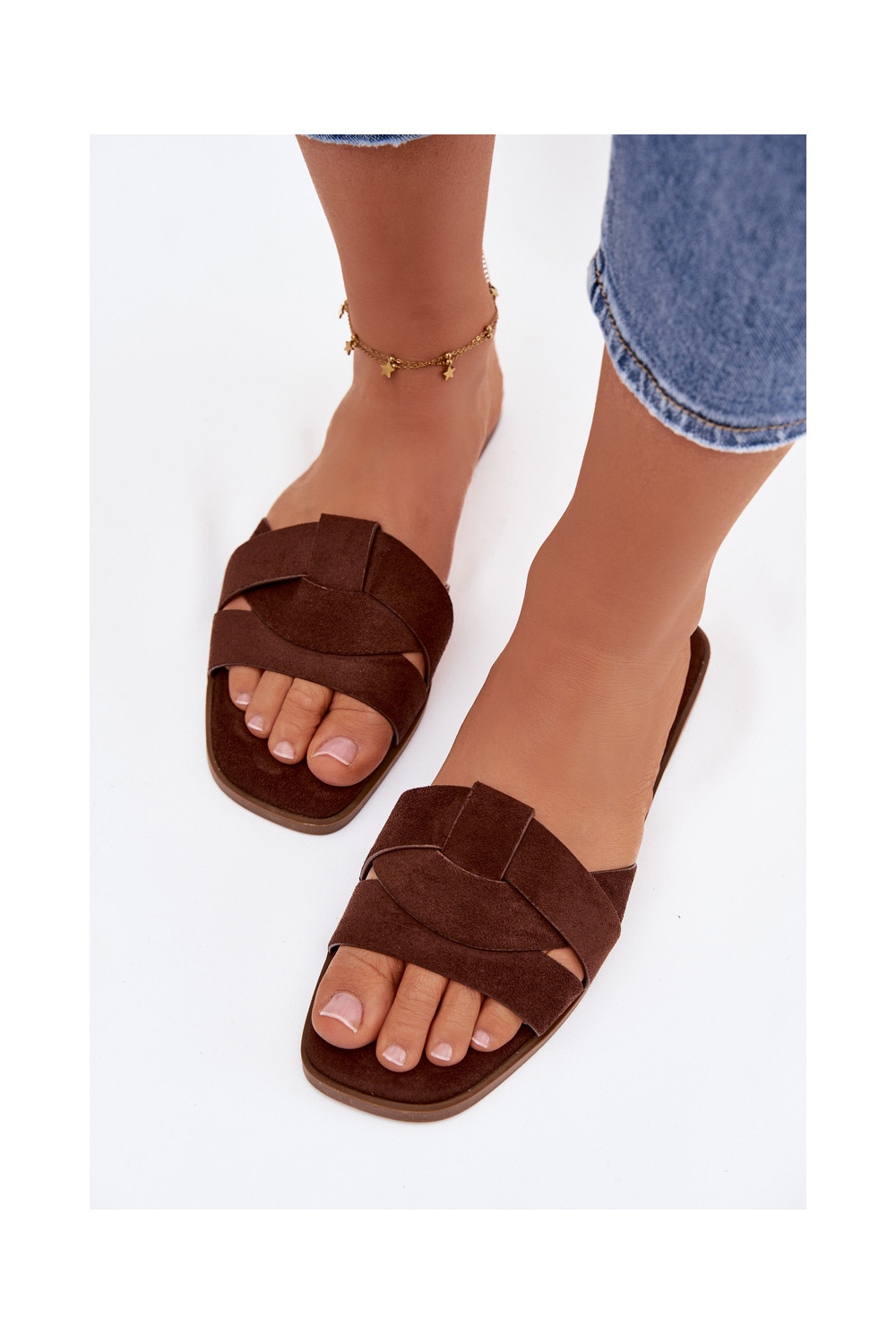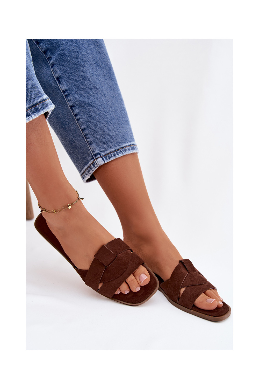 Naistel madala kontsaga šokolaadi värvi sussid rihmadega kunstsuede Florane