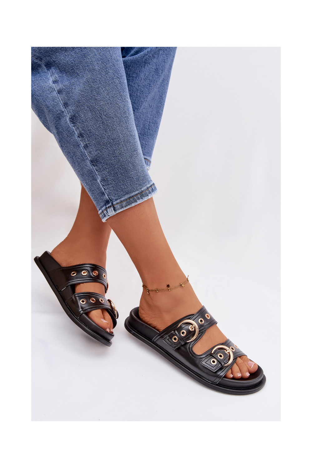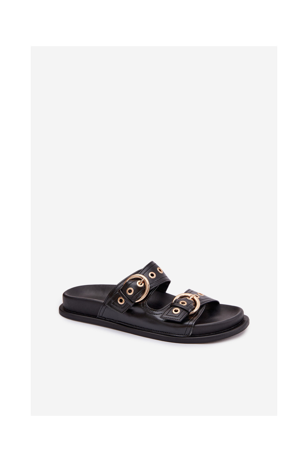 Naistel mustad sussid kuldsete klambritega kunstnahast Bellarya