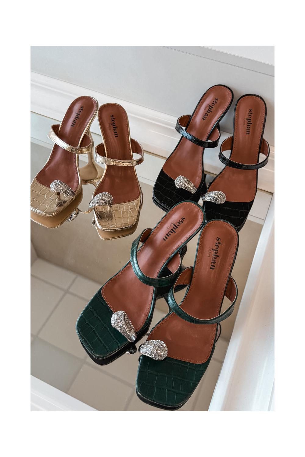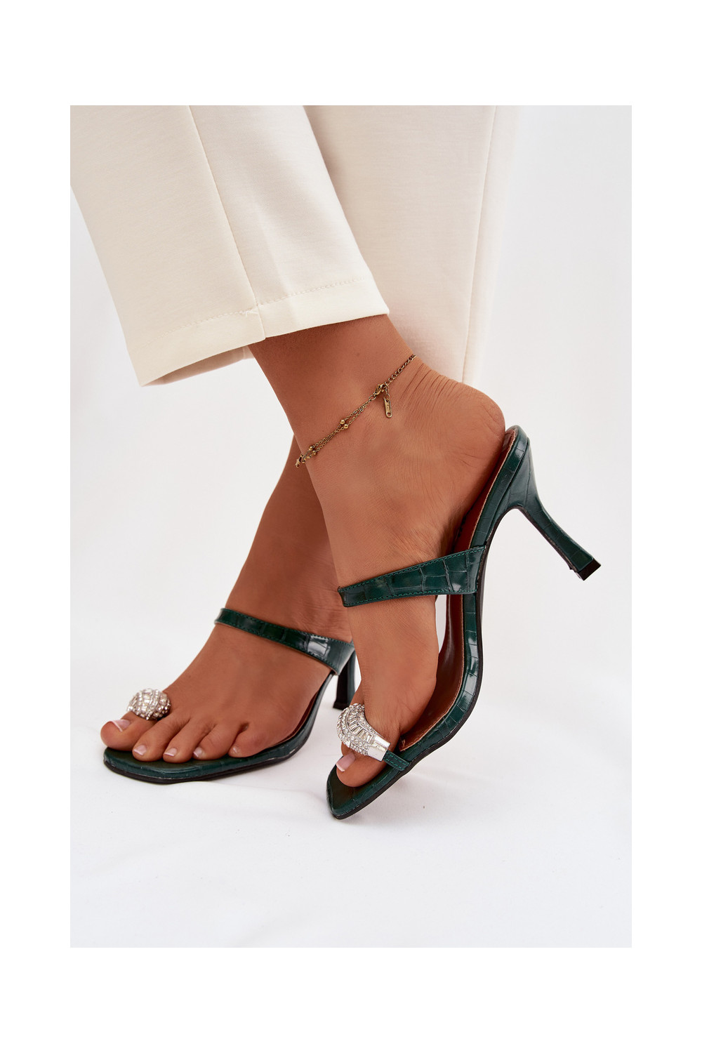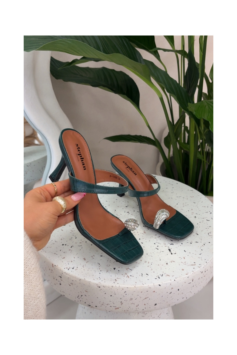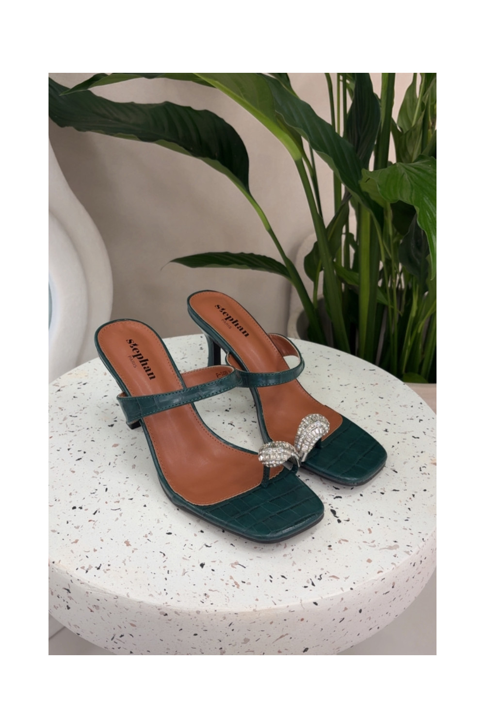 Women's High Heel Sandals With Decorative Detail Bottle Green Lorissa