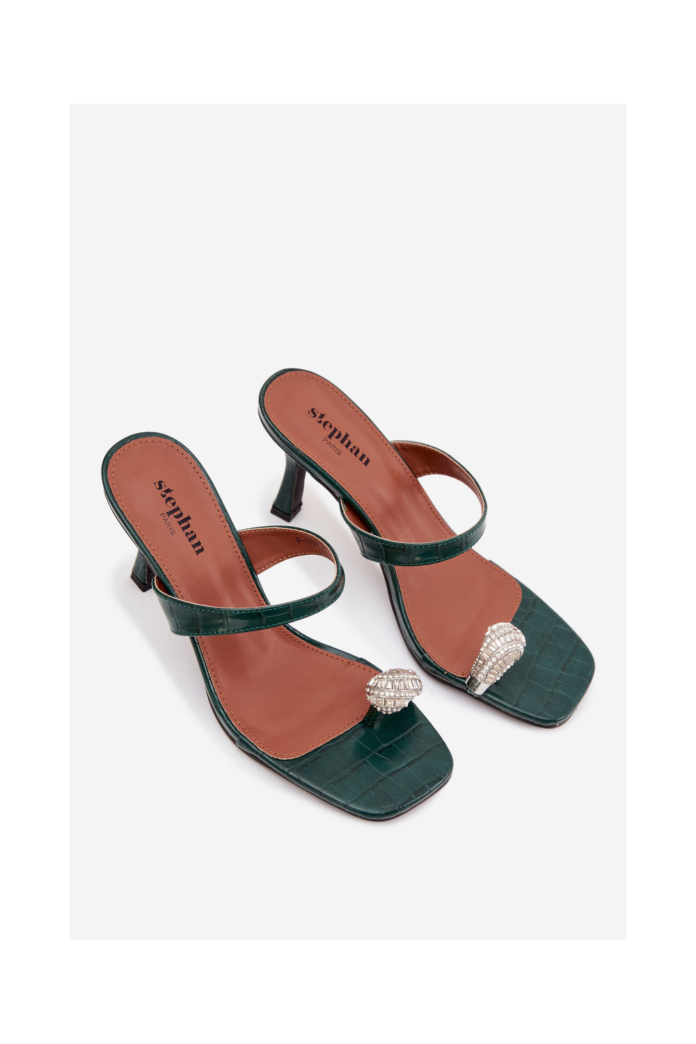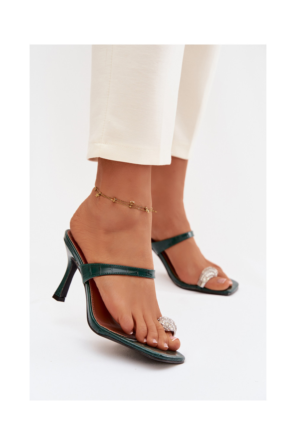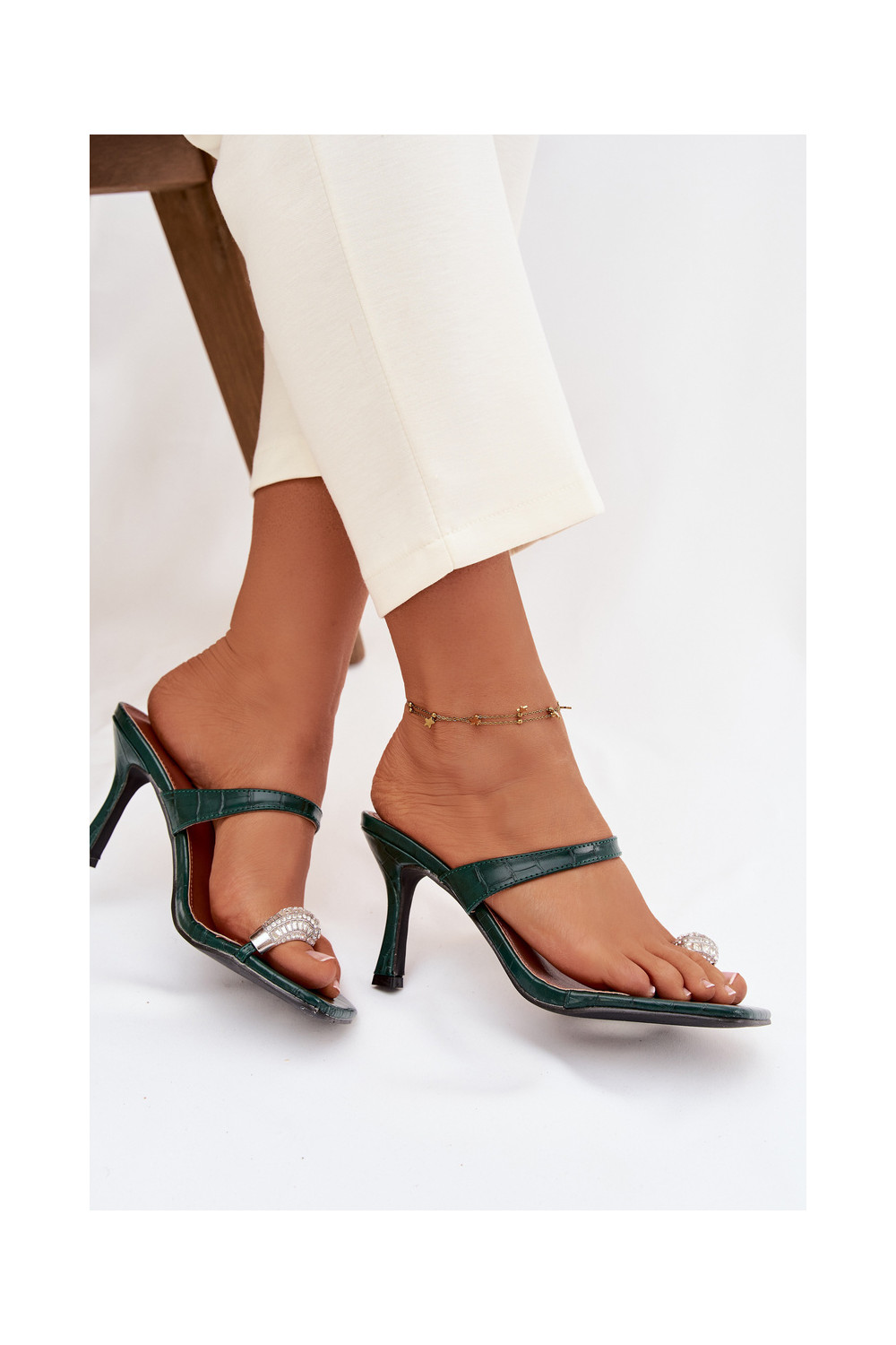 Naistel pudeliroheline sussid õhukeste kontsade ja kaunistustega Lorissa