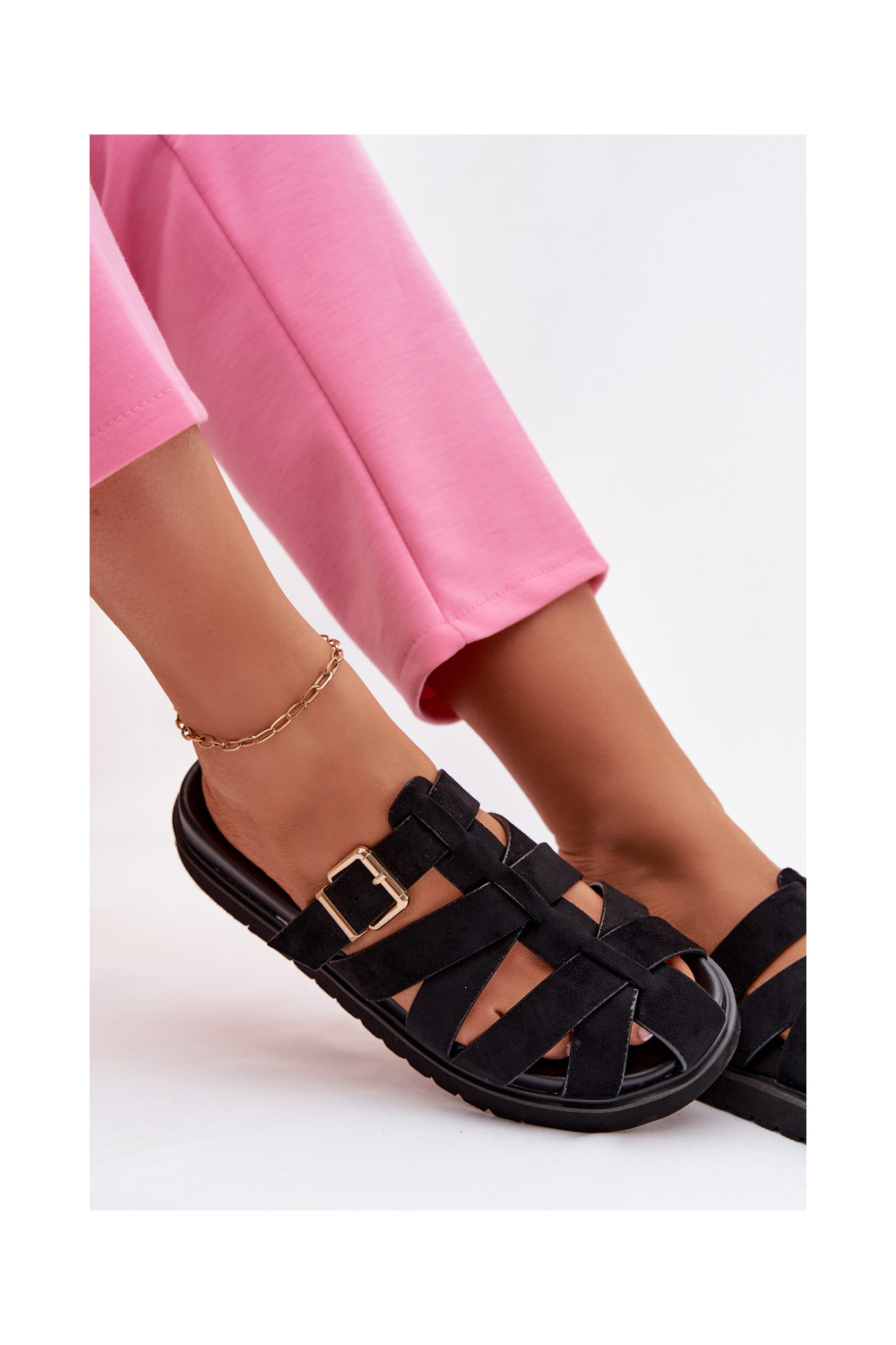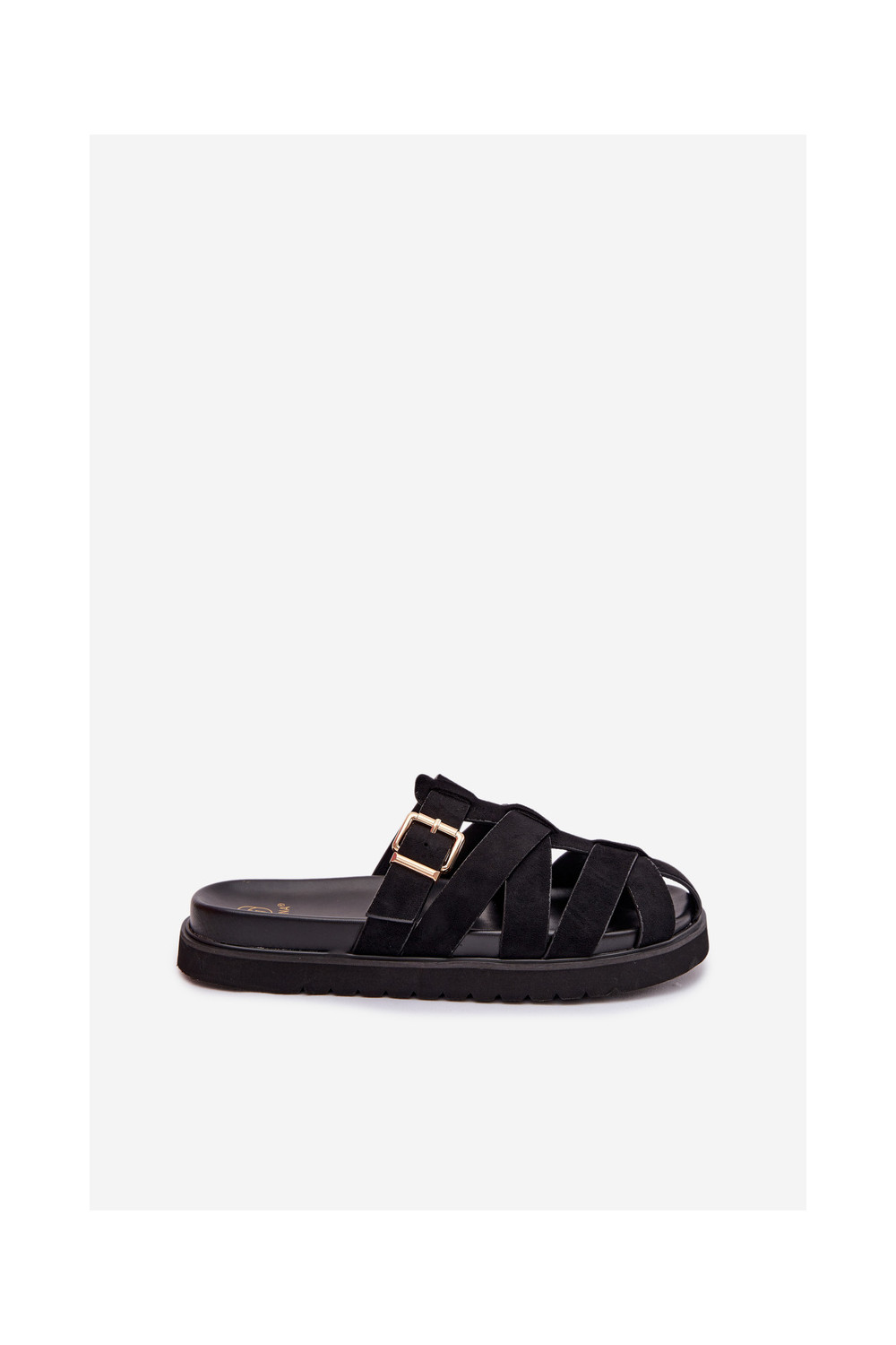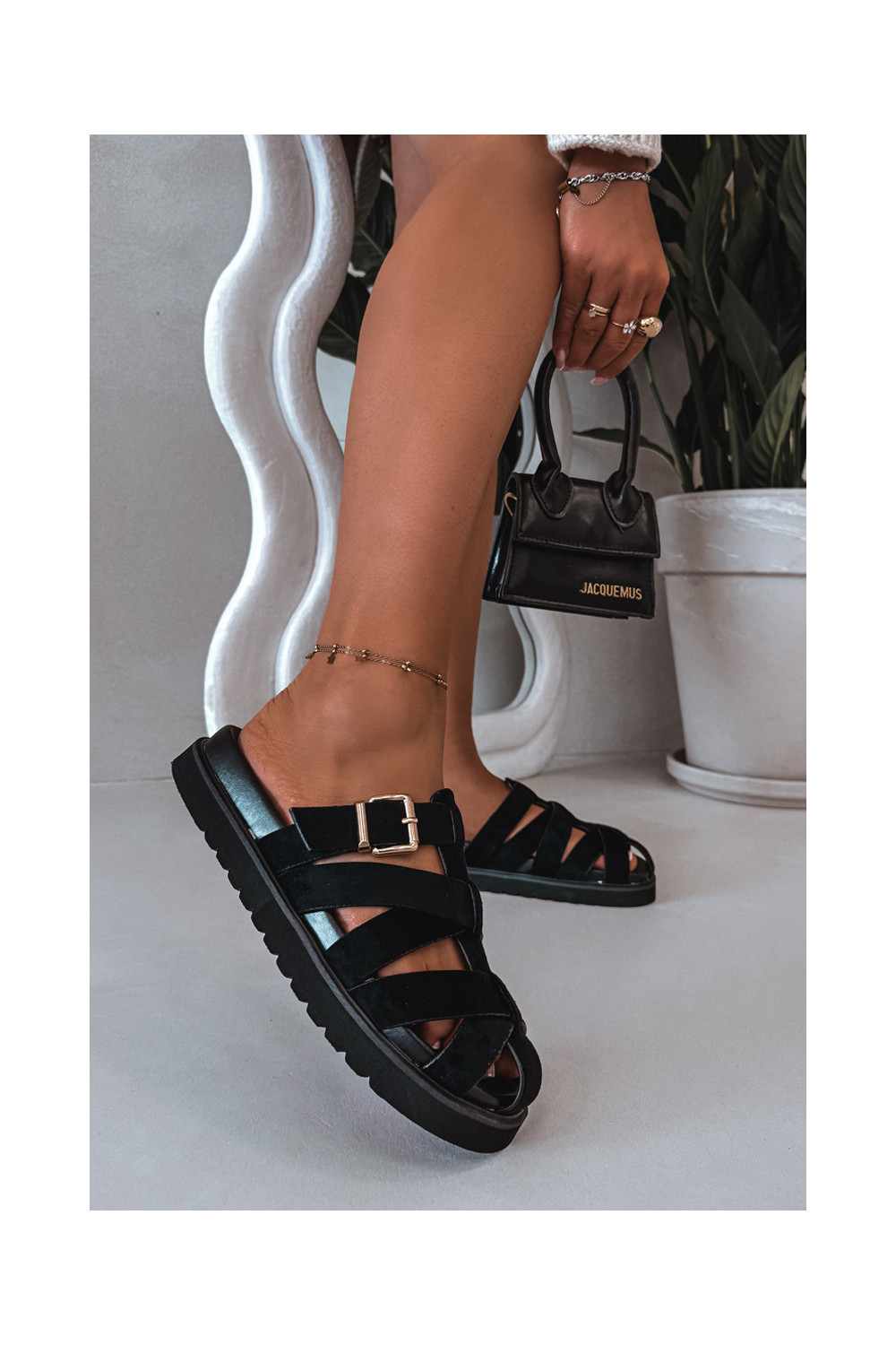 Naistelikkud sussid rihmade ja kuldsete kinnitustega must värv Roselisse