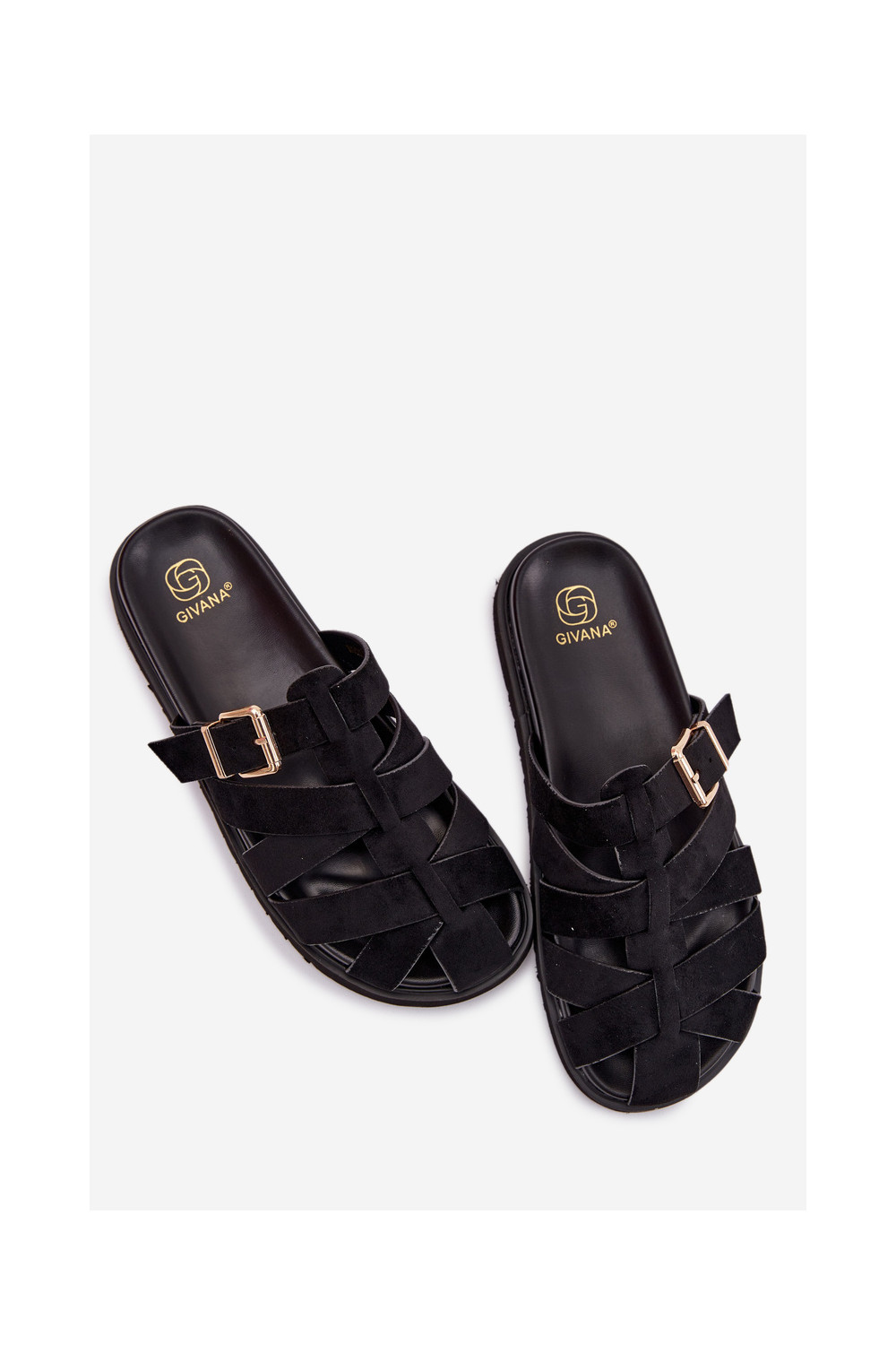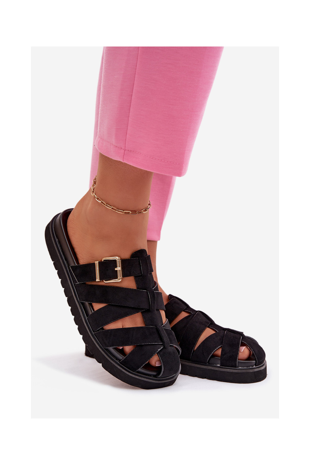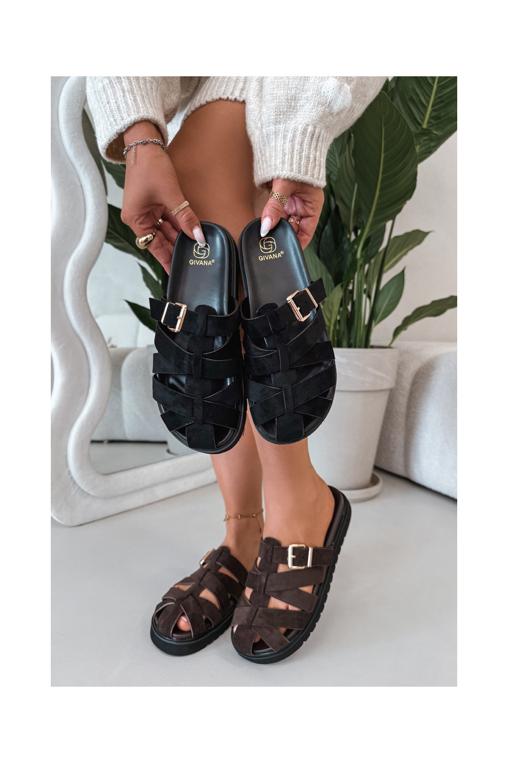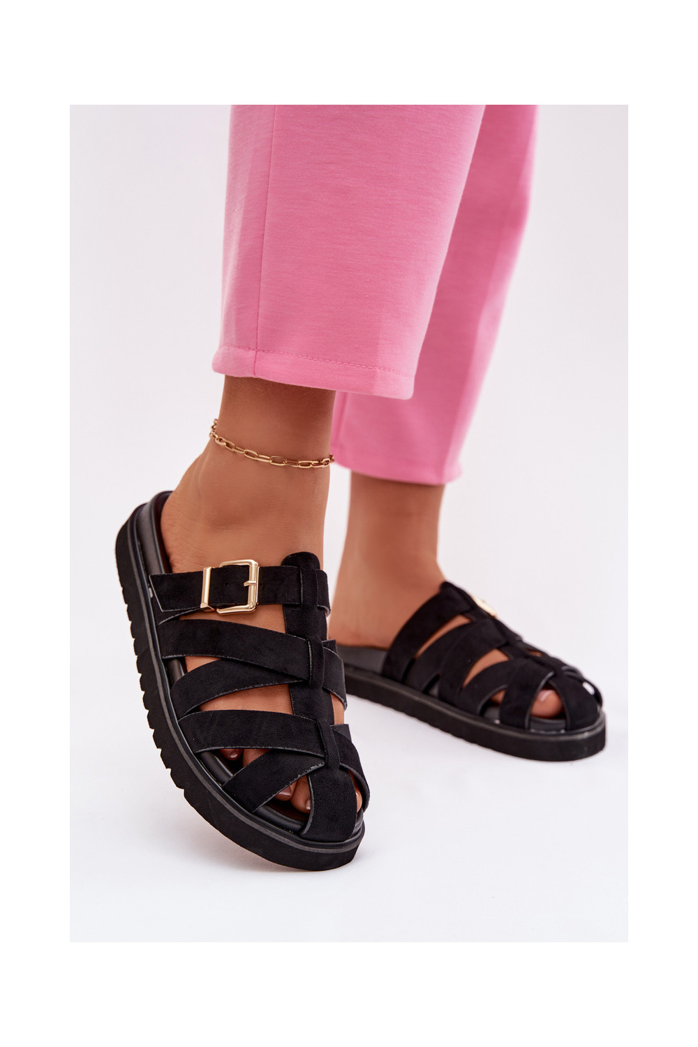 Naistelikkud sussid rihmade ja kuldsete kinnitustega must värv Roselisse