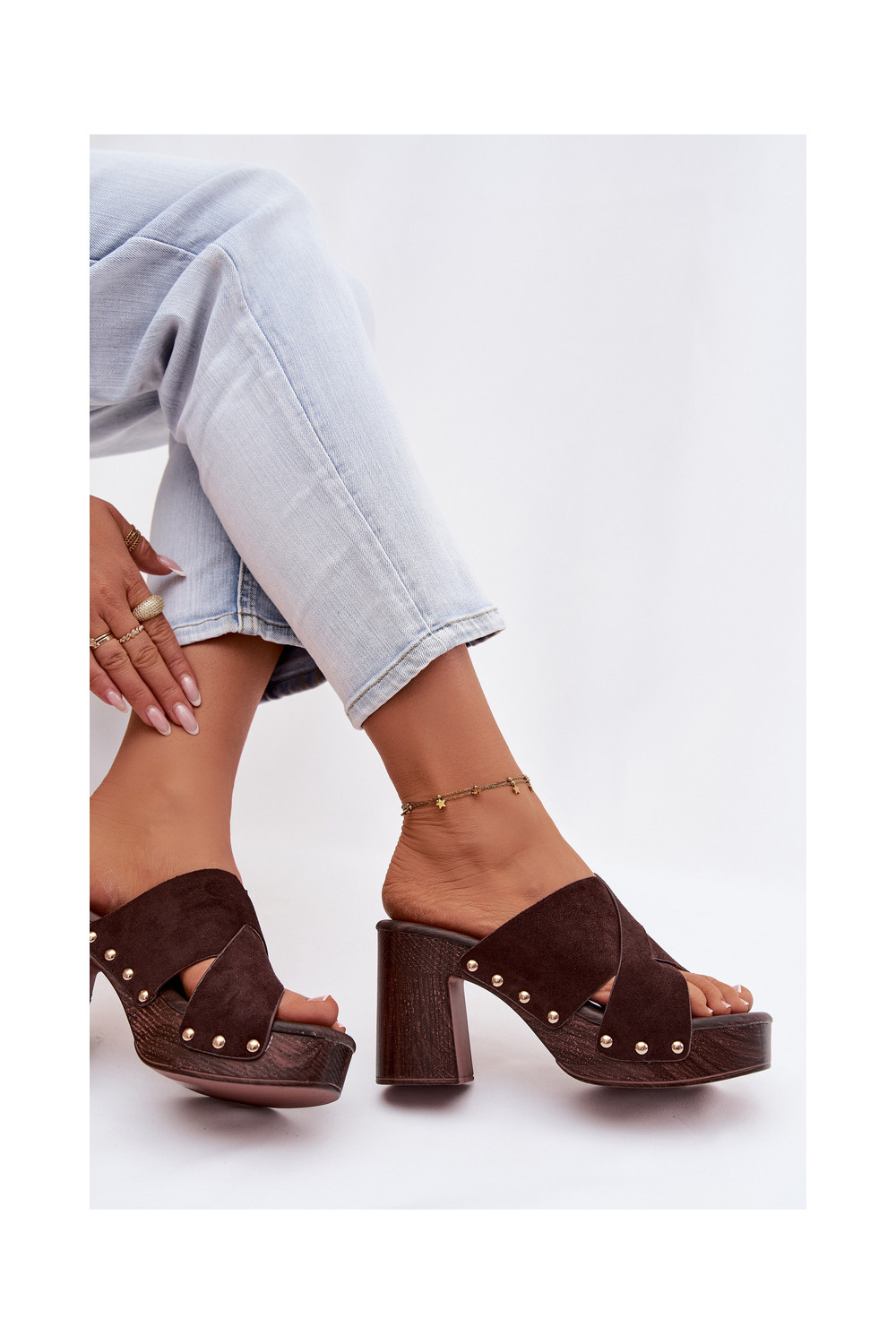 naiste plätud kõrge jämeda kontsaga Ze Kuldset värvimi Pealastud Czekoladosissee Nerelle