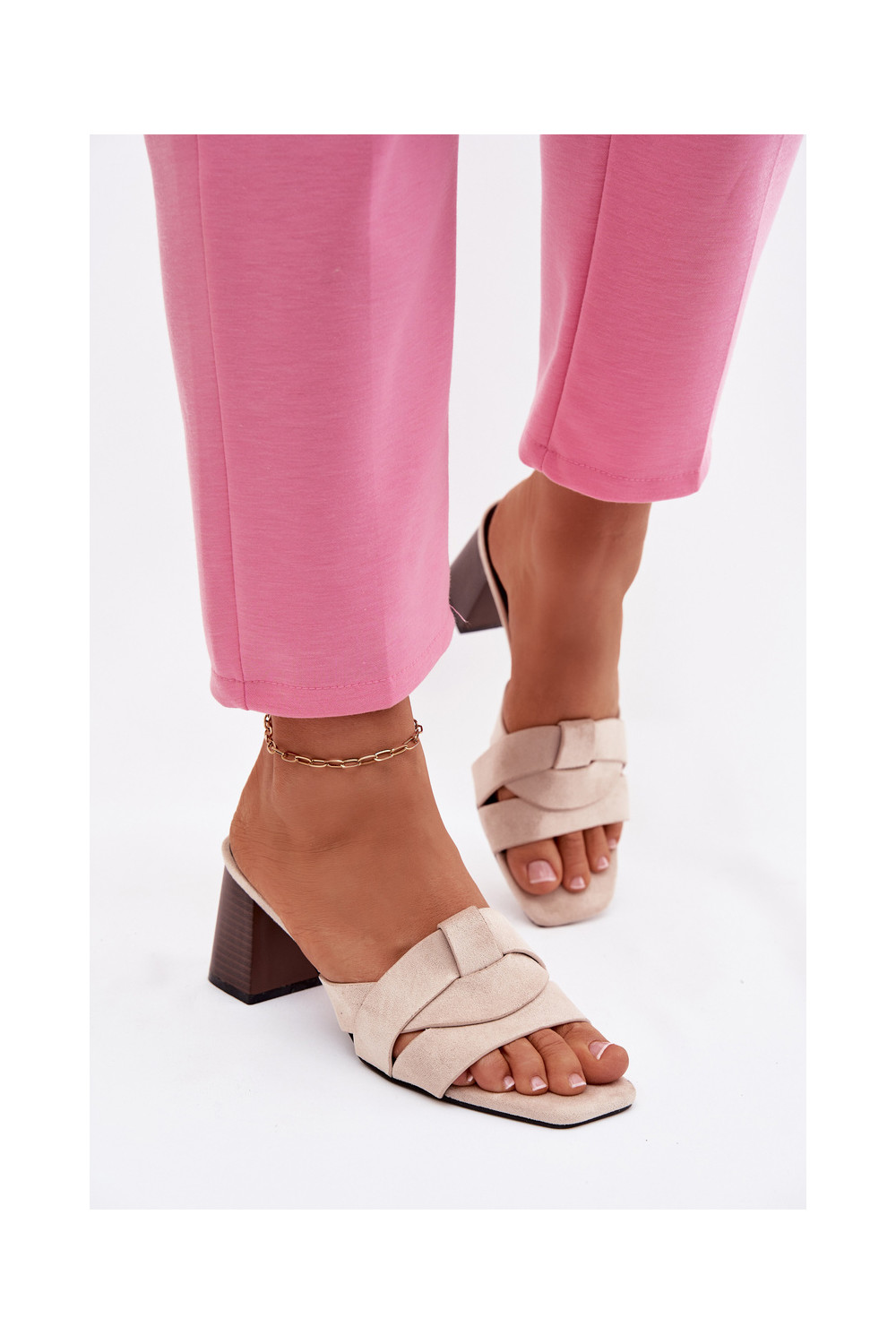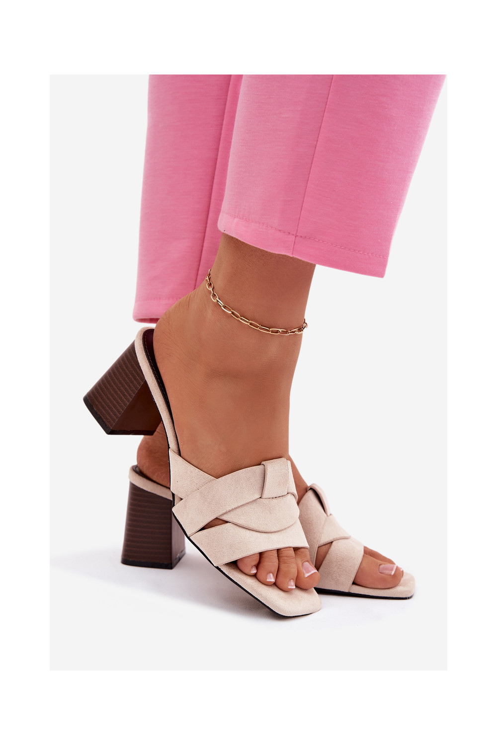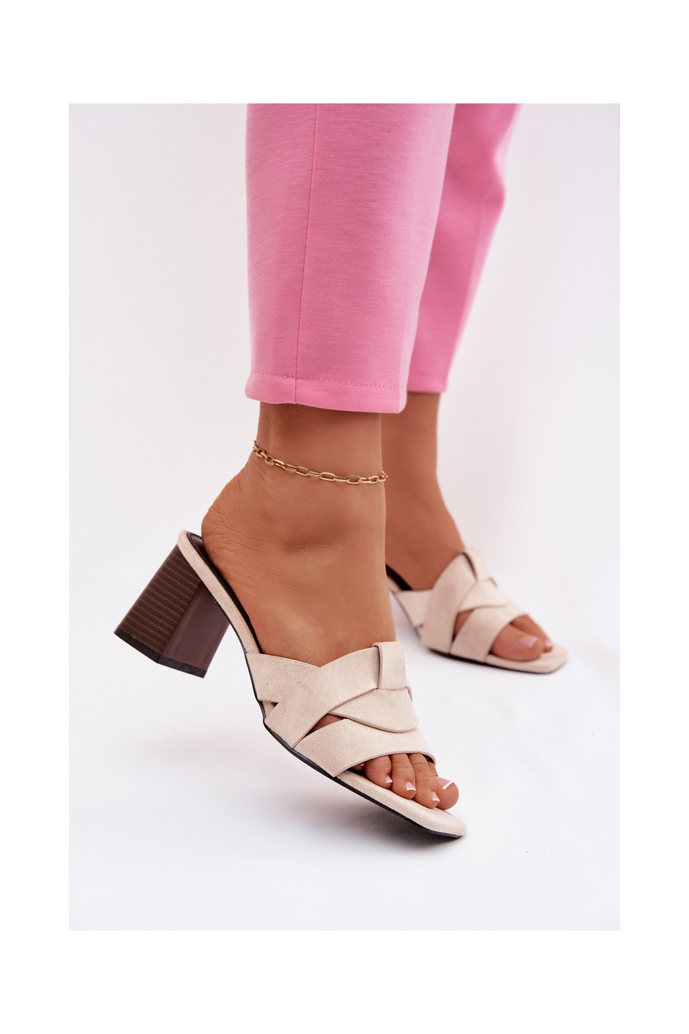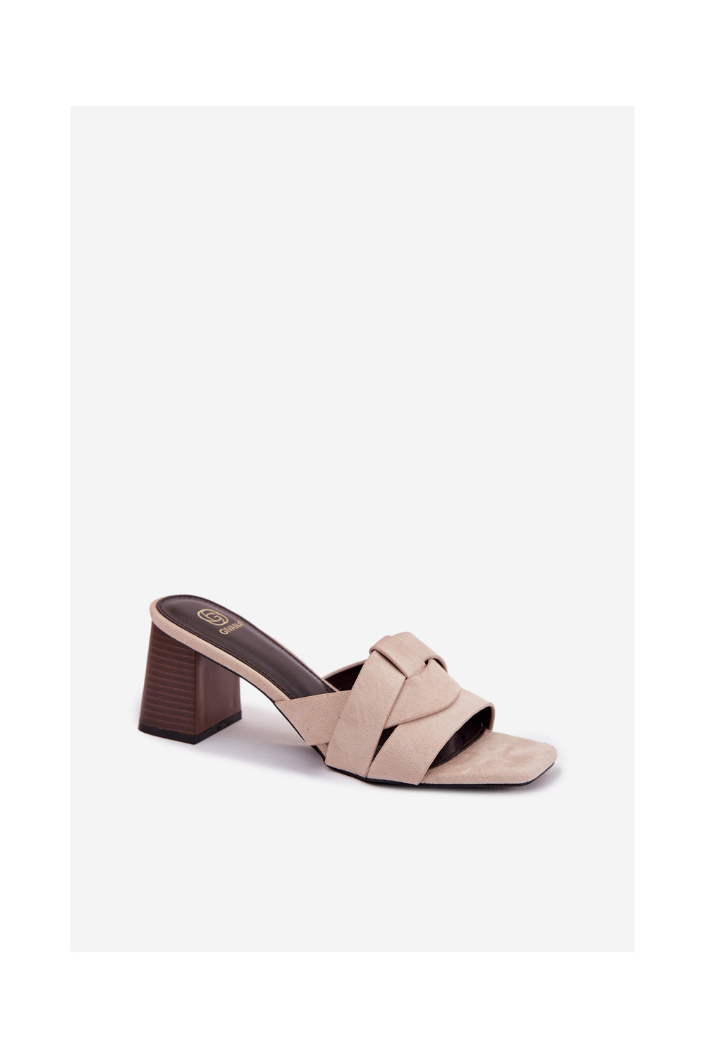 naiste plätud kõrge jämeda kontsaga Triipudega Eco Suedeosissee beeži värvi Corivelle