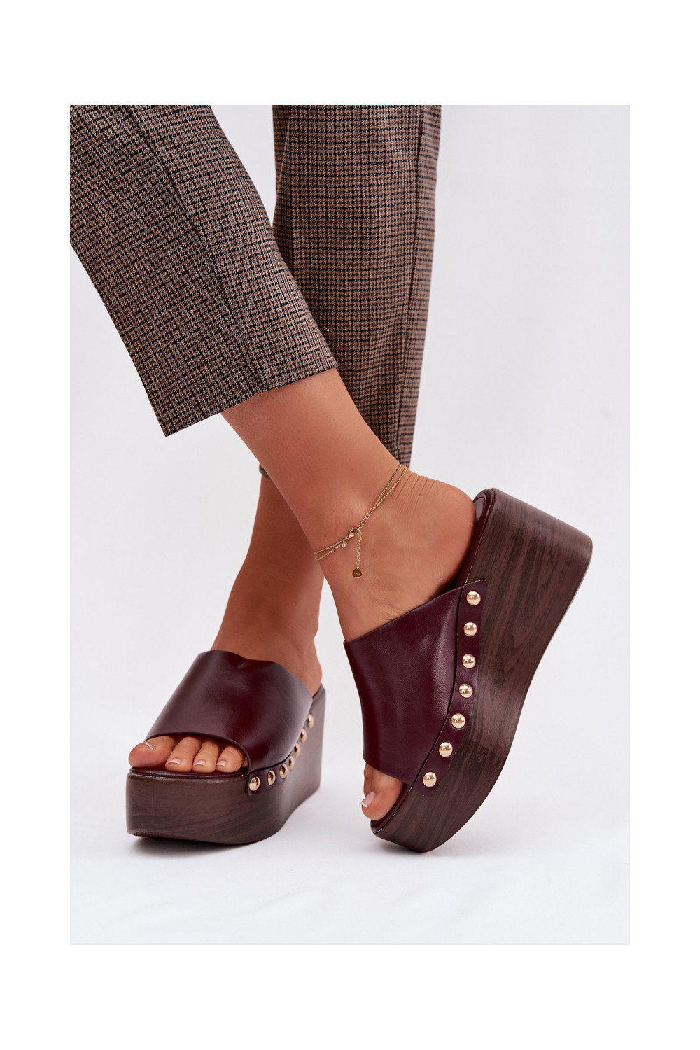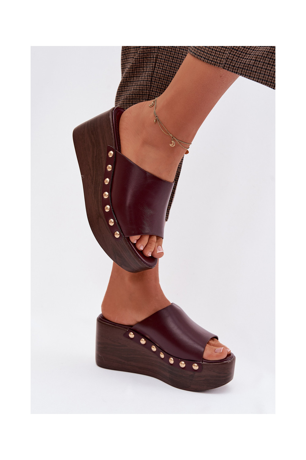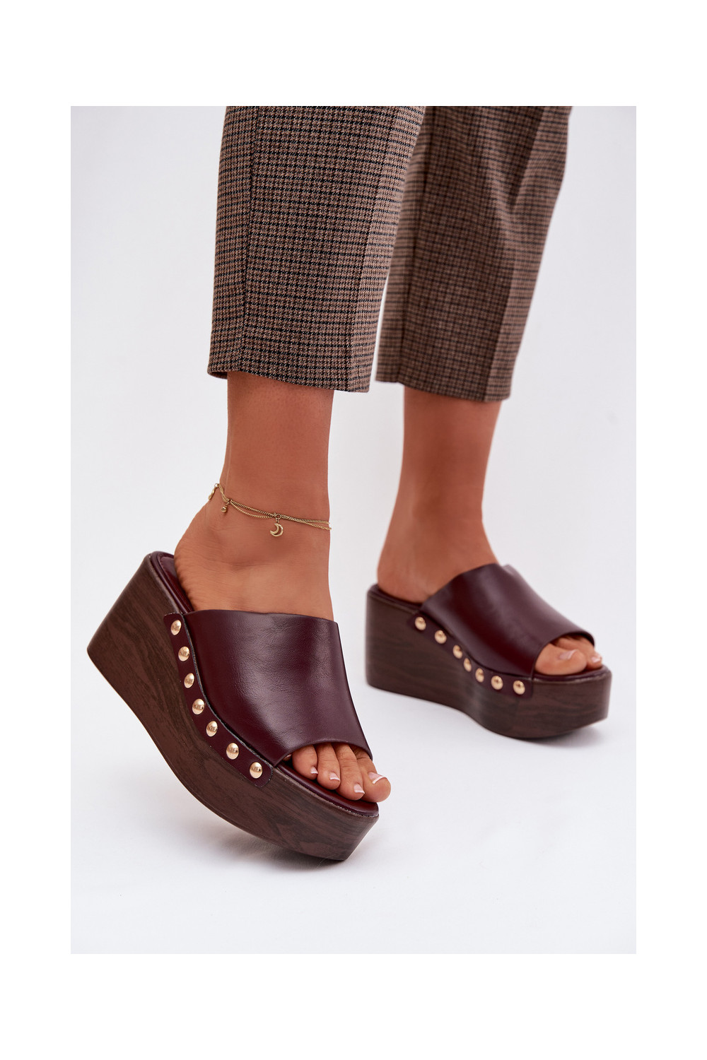 Women's Platform and Wedge Sandals with Gold Buckles Burgundy Farinelle