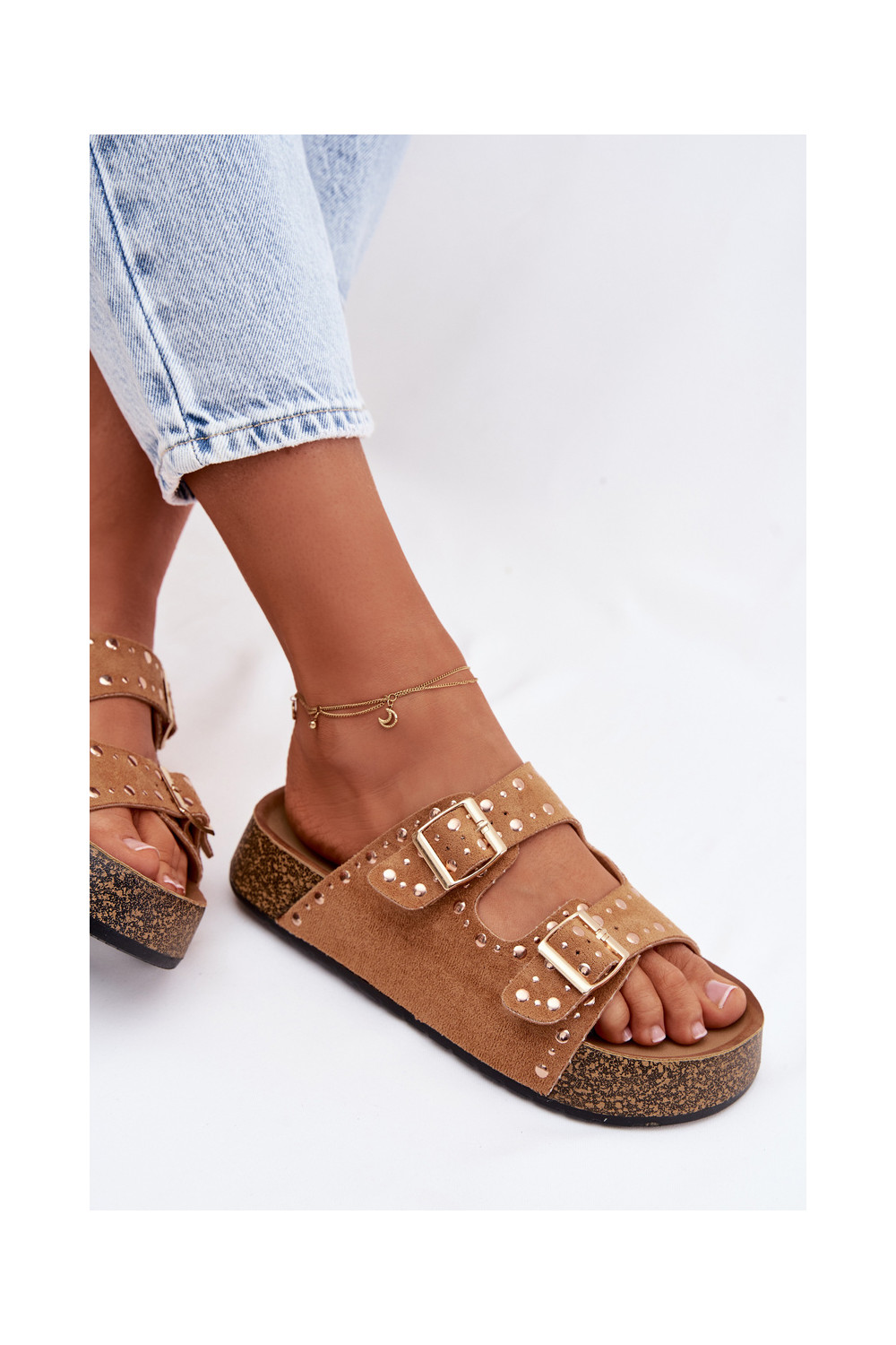 naiste plätud Ze Kuldset värvimi neetide ja pandlagami  pruunid värvi Tervina