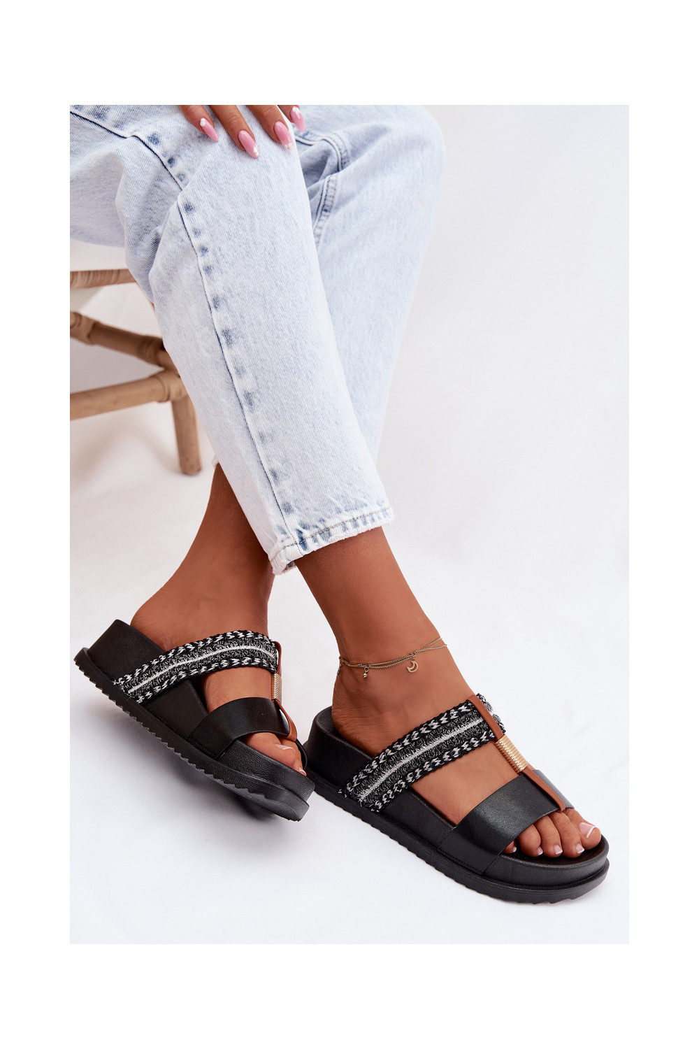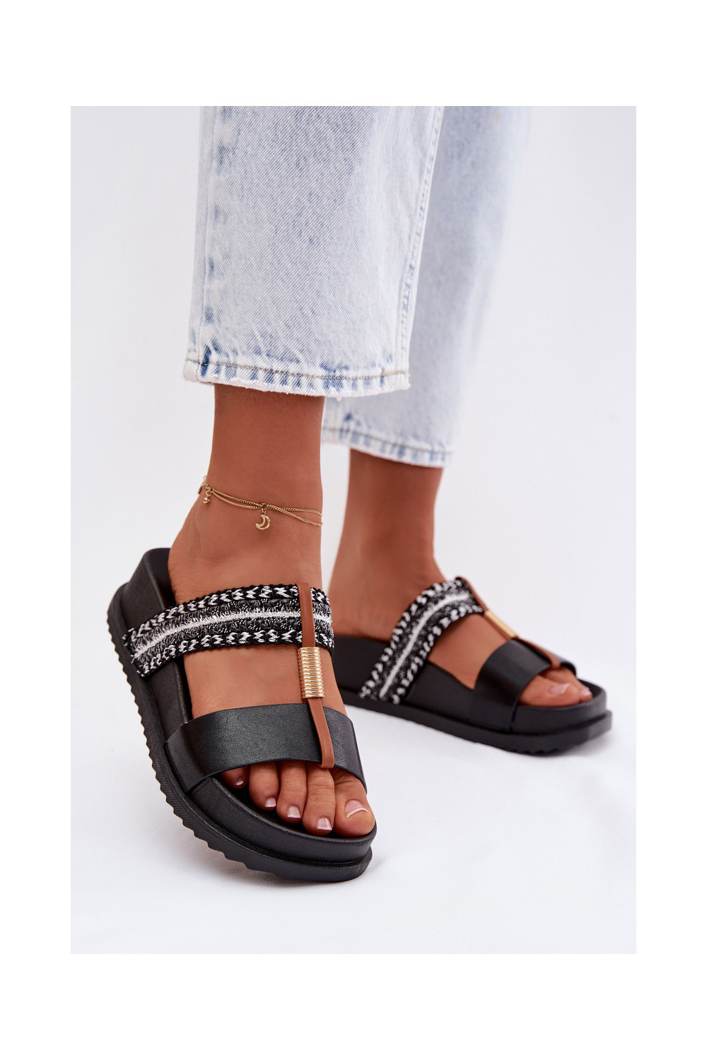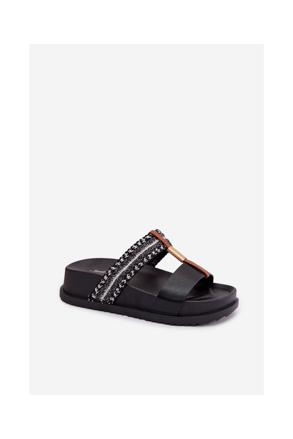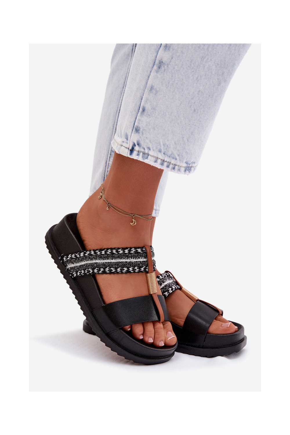 Women's Platform Sandals With Straps and Gold Details Black Tahlia