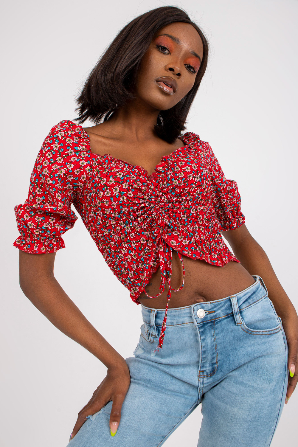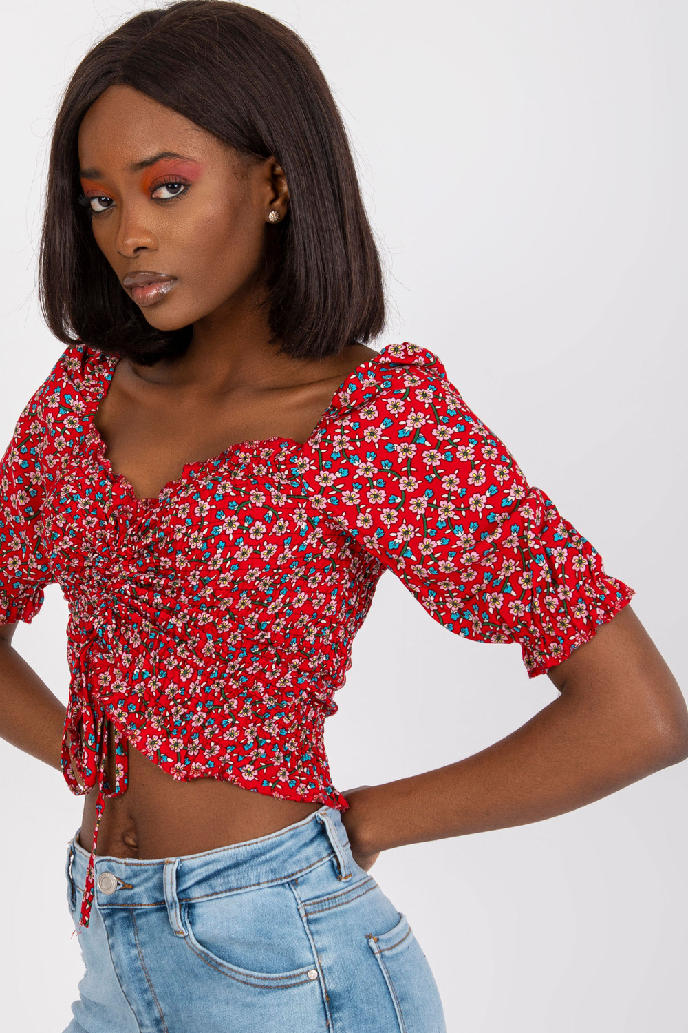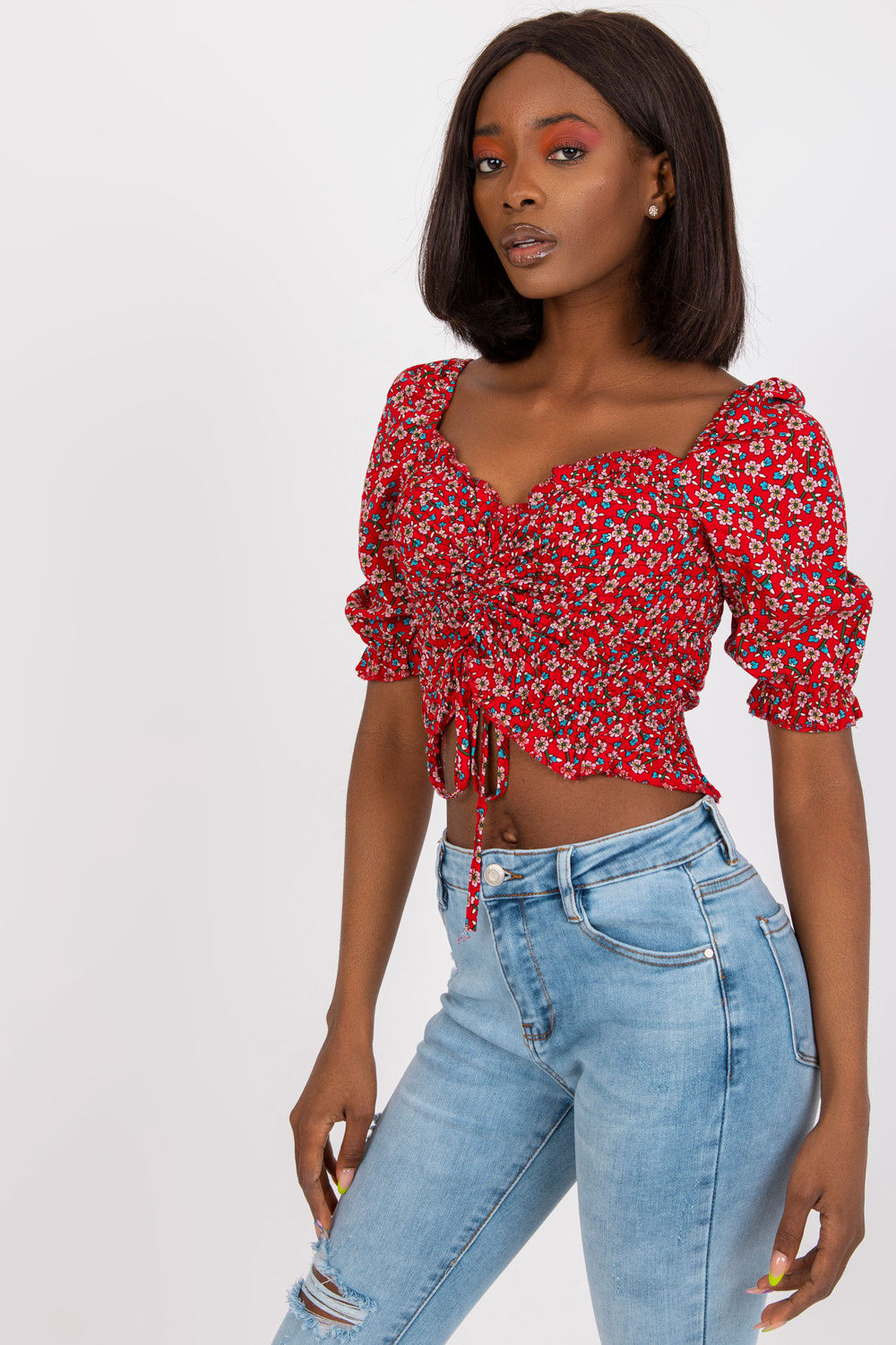 Punane lühike volangidega lilledega pluus RUE PARIS.
