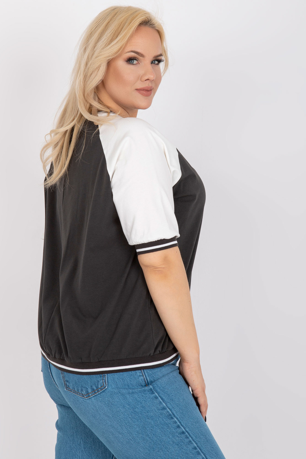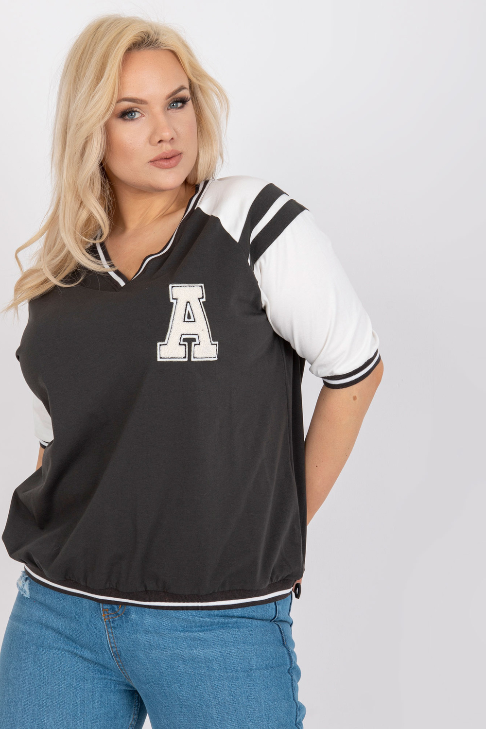 Khaki-whiteplus-suuruses V-kaelusega pluus .